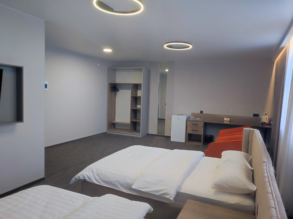 В номере гостей ждут телевизор и халат. Оснащение зависит от выбранной категории номера.