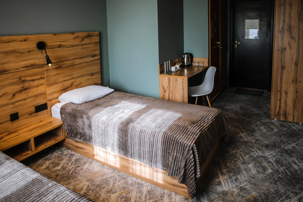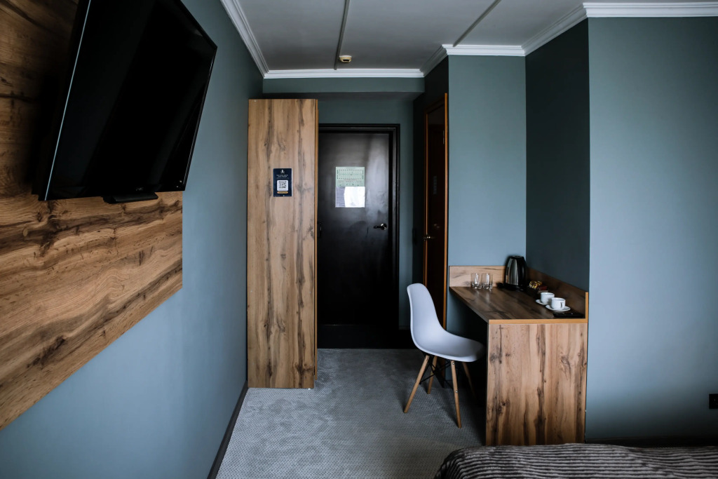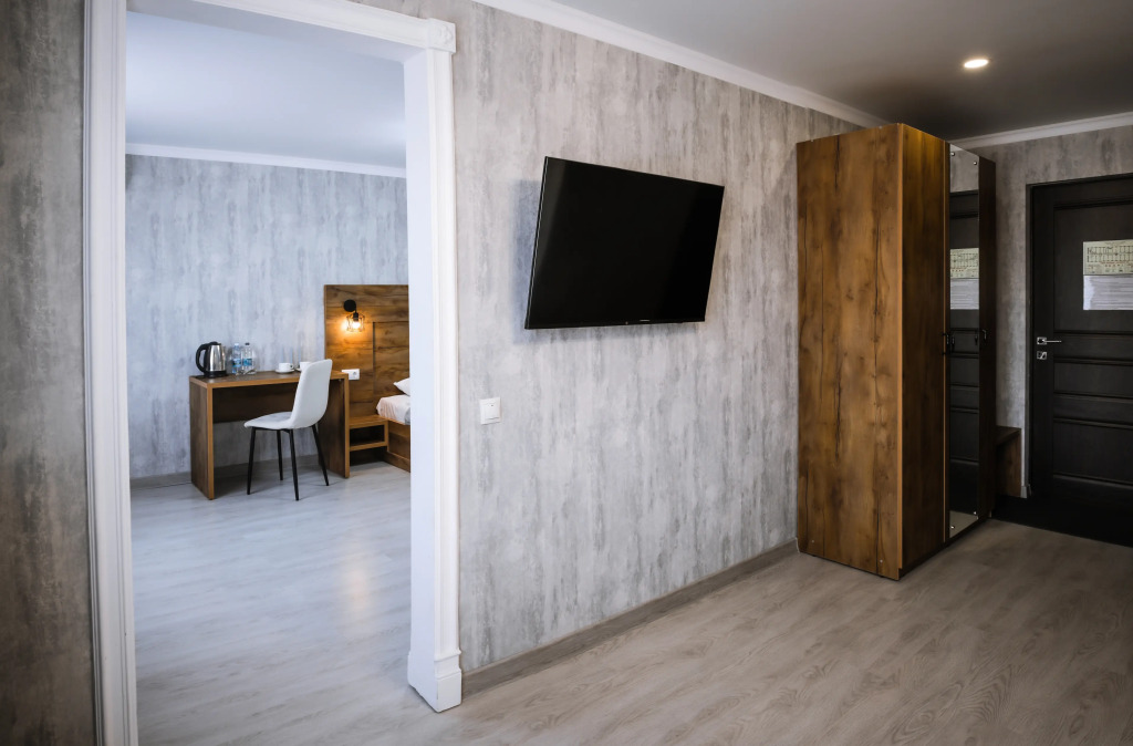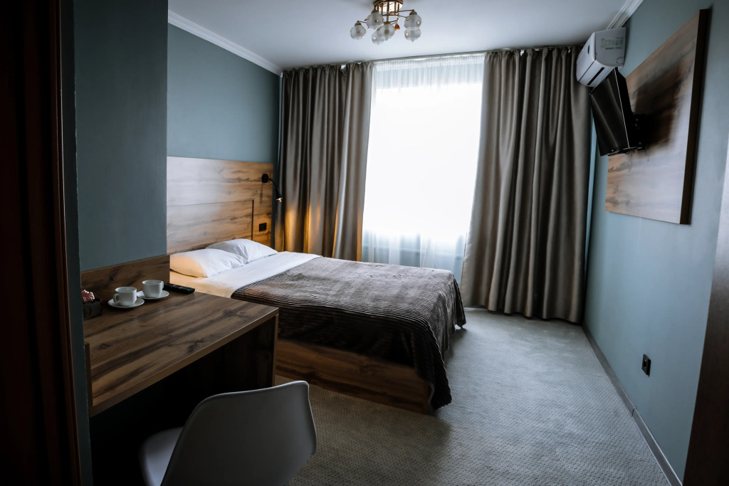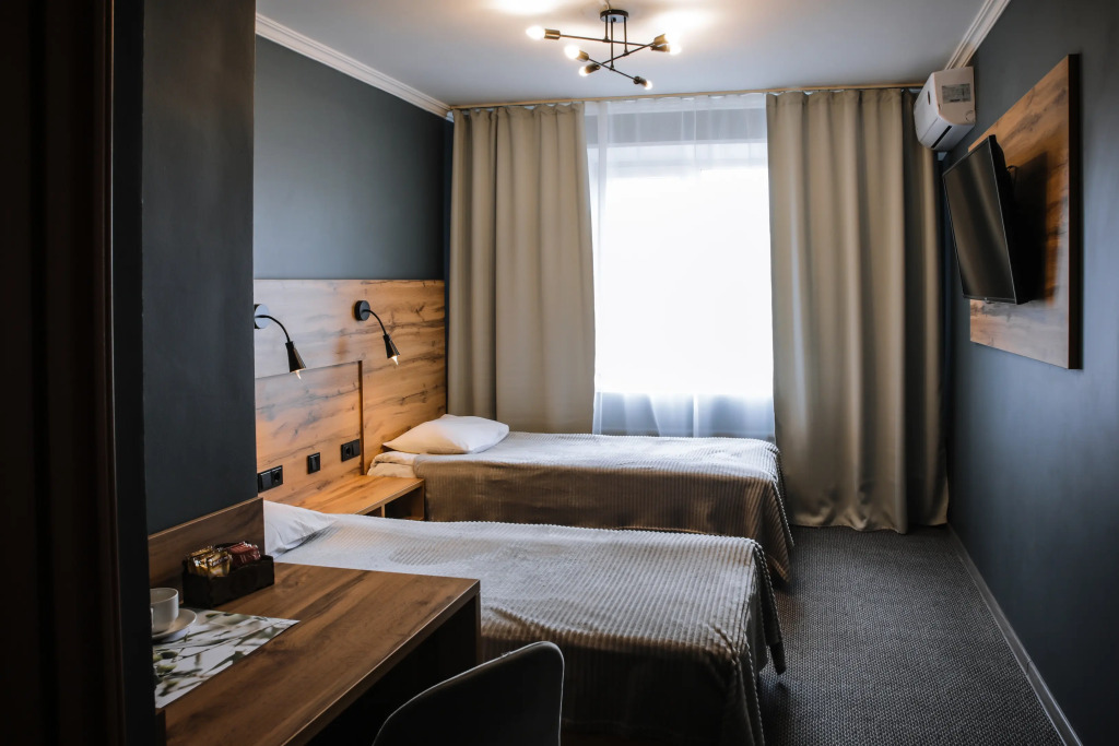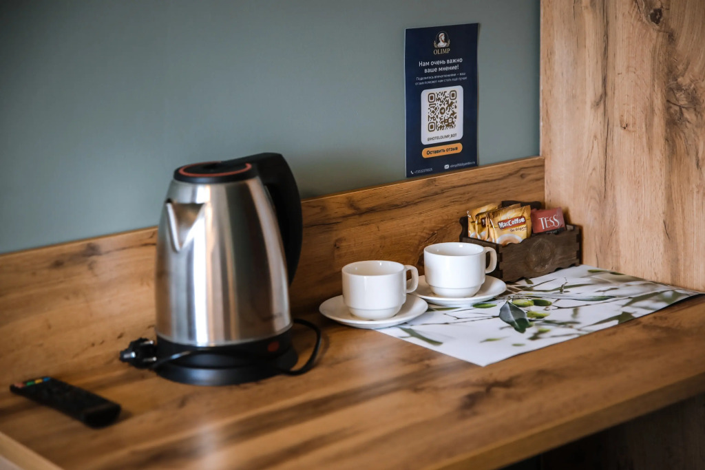 Дали чайник, в номере был холодильник, достаточно тепло, мощная батарея. Телевизор большой, смотрели сериалы по своей флешке, в ванной был шампунь и туалетная бумага. В целом все понравилось, если не считать мелких недочётов. хлипкие окна, на утро запотели, но в номере не было холодно.