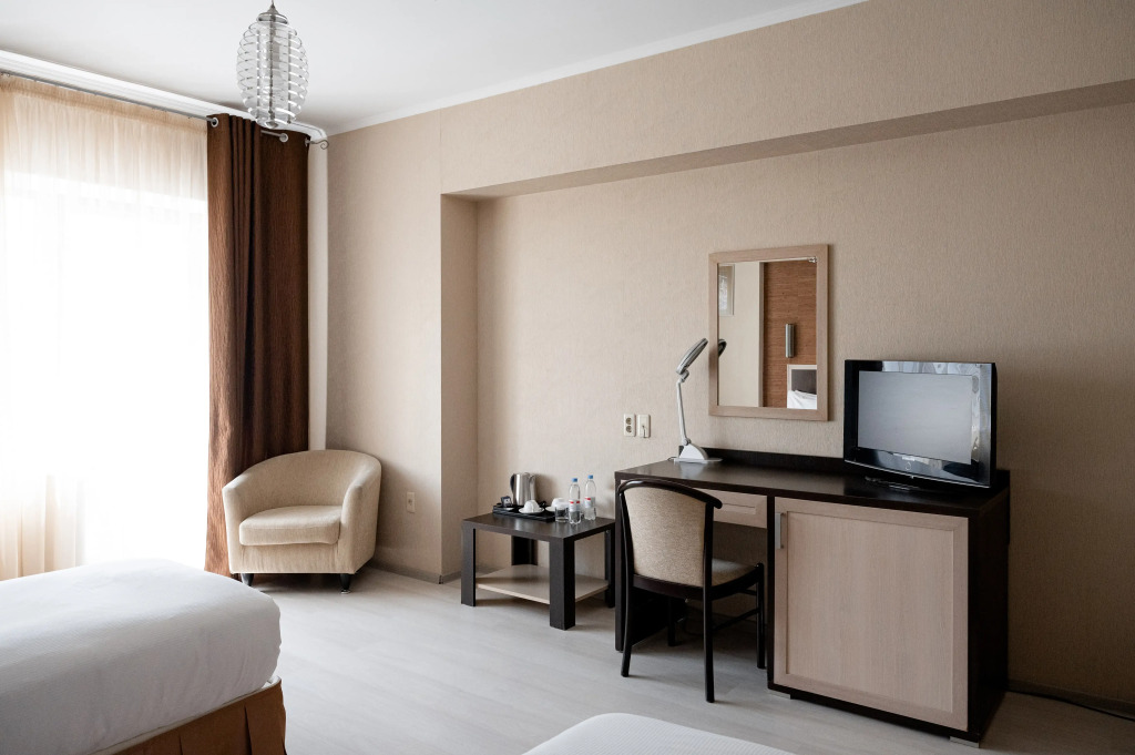 В номере гостей ждут телевизор, холодильник, кондиционер, рабочая зона, сейф, душ, фен, халат и тапочки. Дополнительное оснащение зависит от выбранной категории номера. В стоимость проживания включён завтрак «шведский стол».