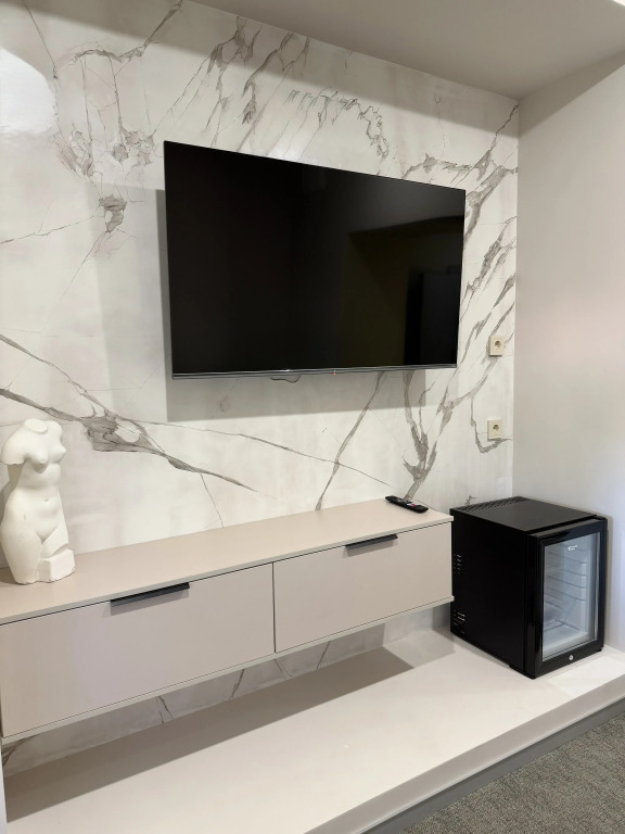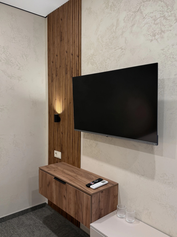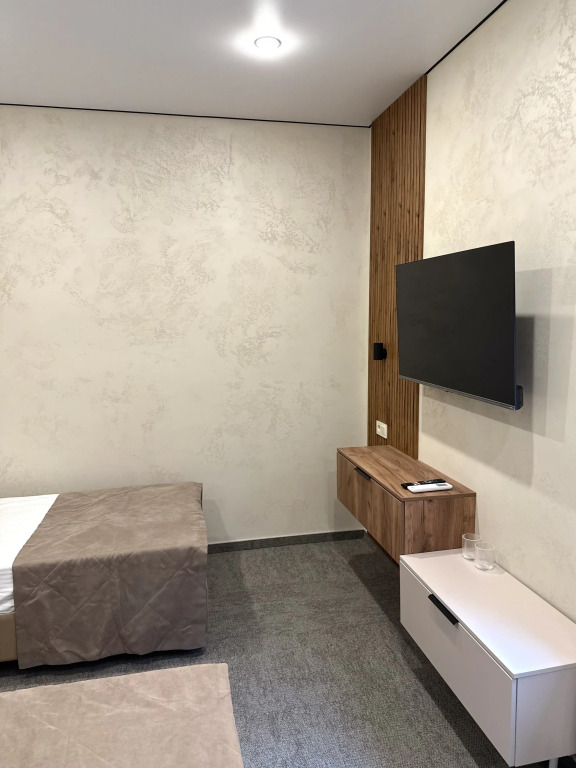 Номер обставлен и оснащён необходимым, чтобы отдохнуть после долгого и насыщенного дня. Имеются телевизор, мини-бар и халат. Оснащение зависит от выбранной категории номера.