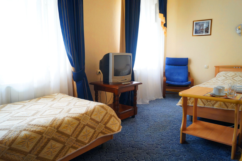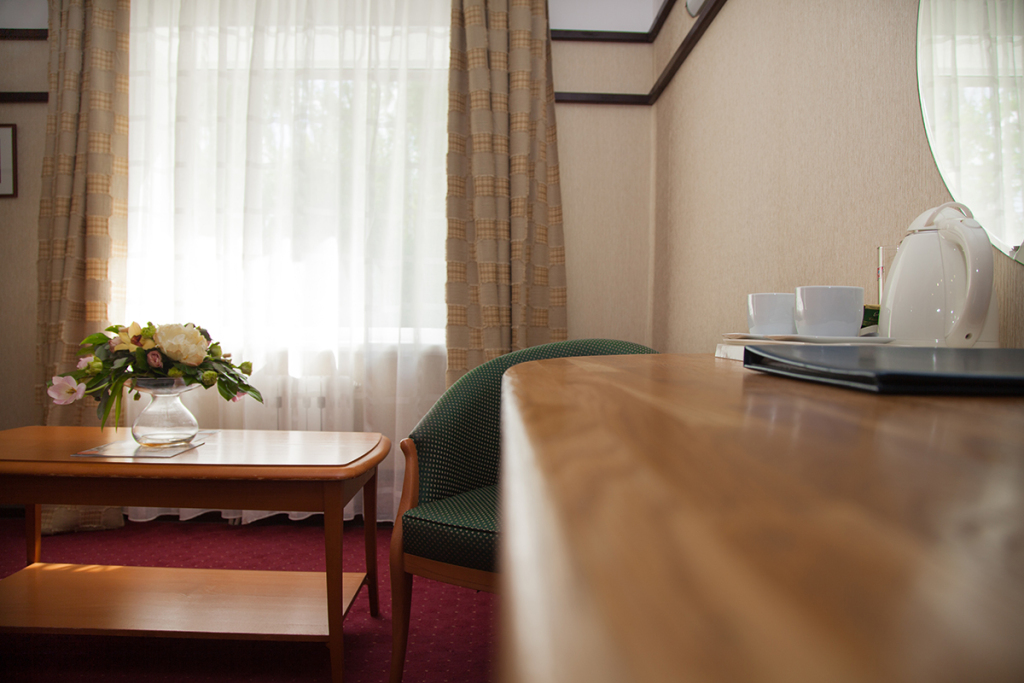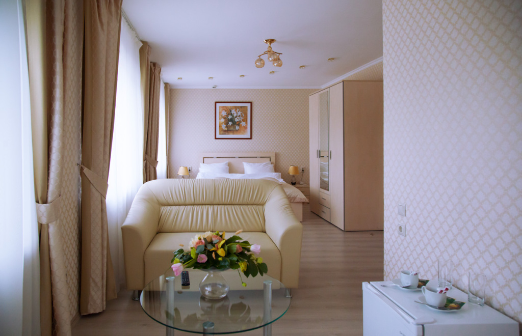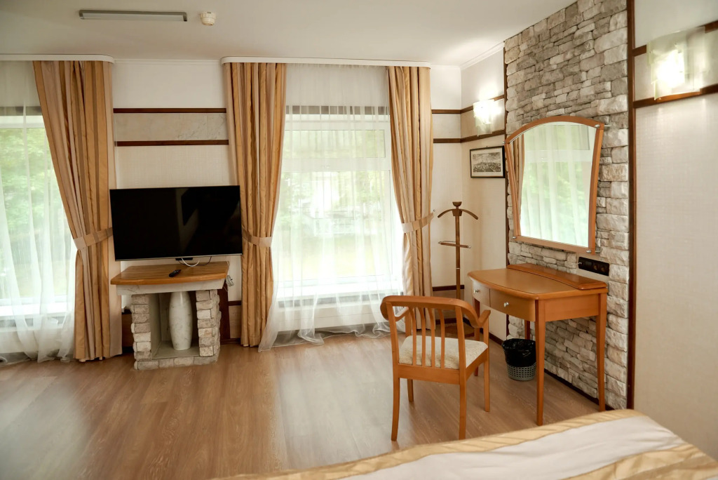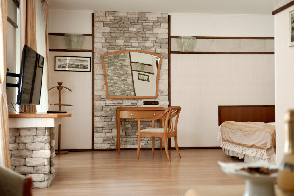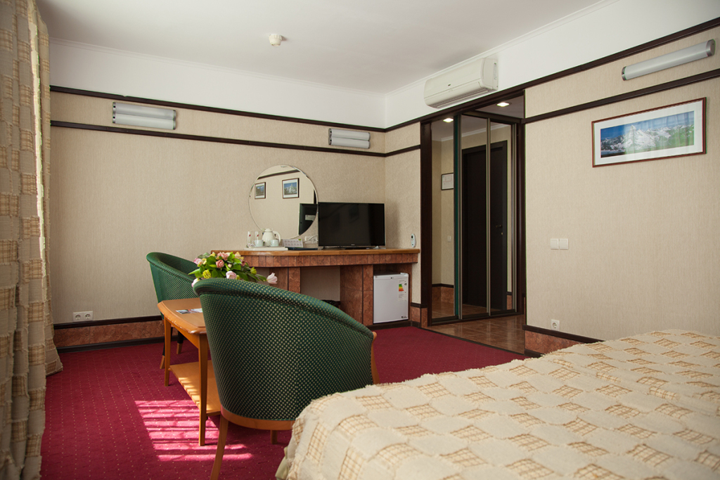 Номер уютно обставлен и оснащён необходимым, чтобы отдохнуть после долгого и насыщенного дня. Имеются телевизор и мини-бар. Оснащение зависит от выбранной категории номера.