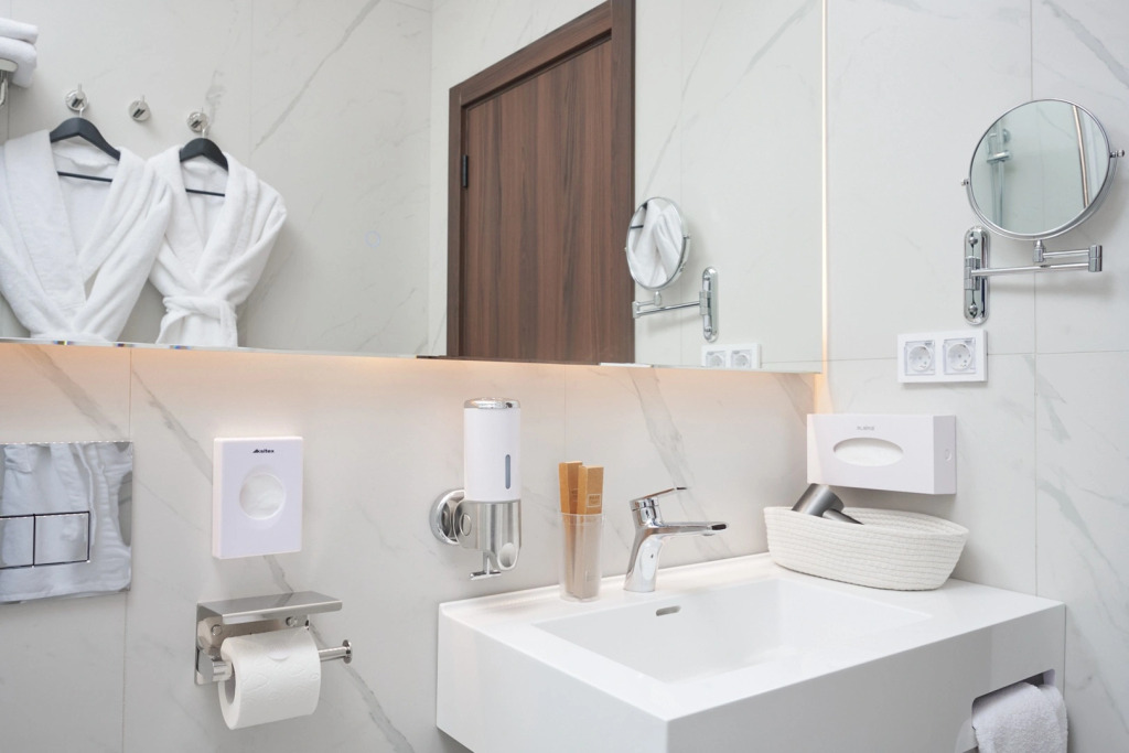 В номере вы найдёте душ, телевизор, халат и тапочки. Перечисленные услуги есть не во всех номерах.