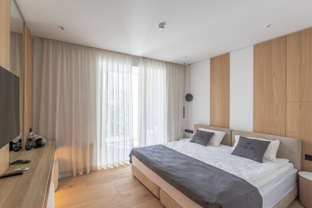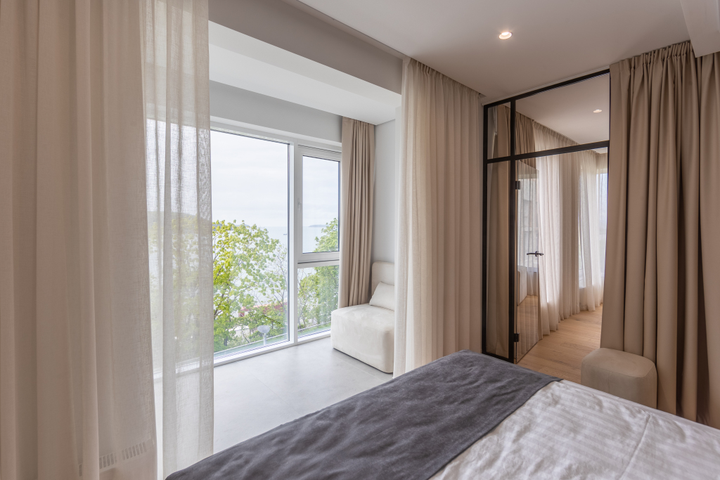 В номере гостей будут ждать телевизор, мини-бар и халат. В номер есть вид на море или во двор. Оснащение зависит от выбранной категории номера.