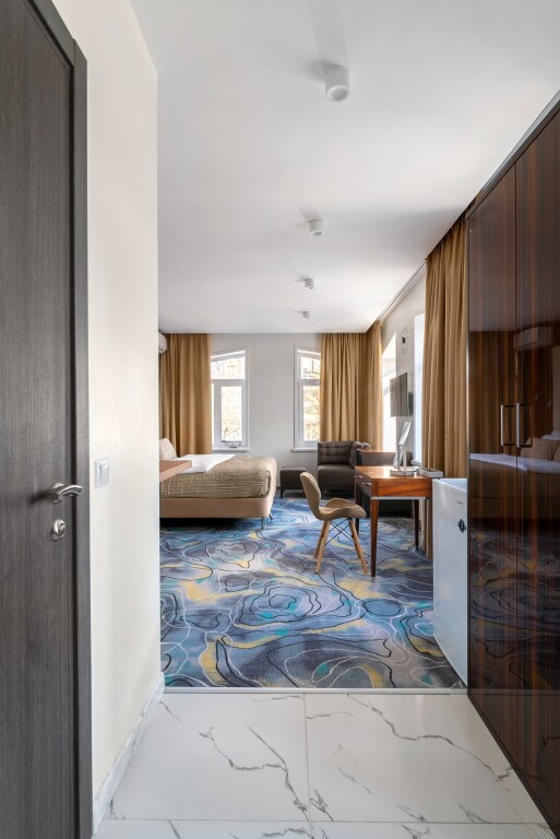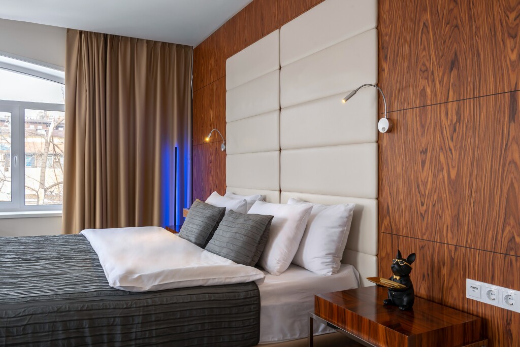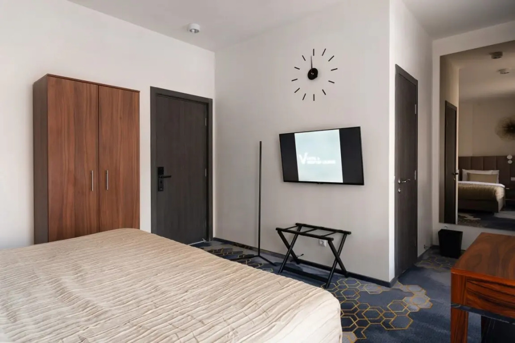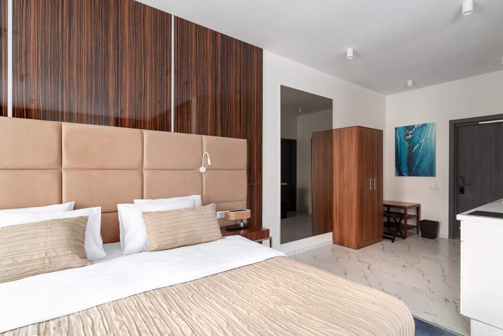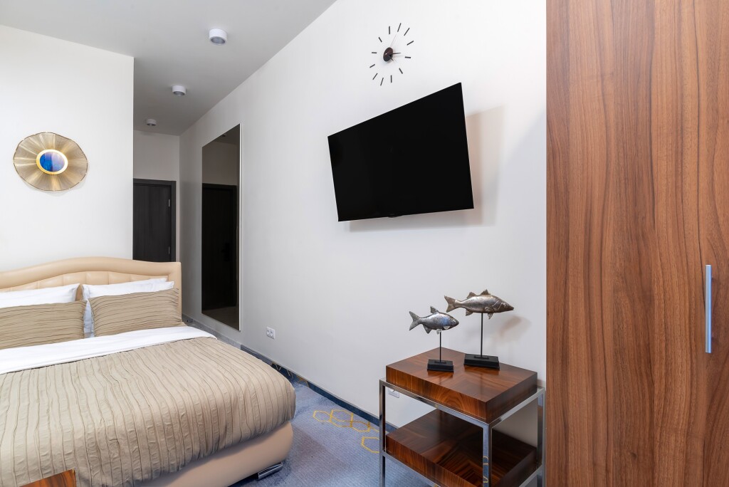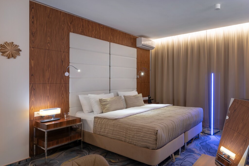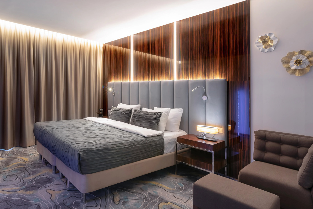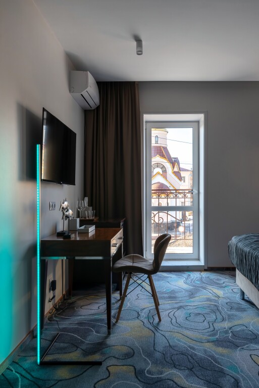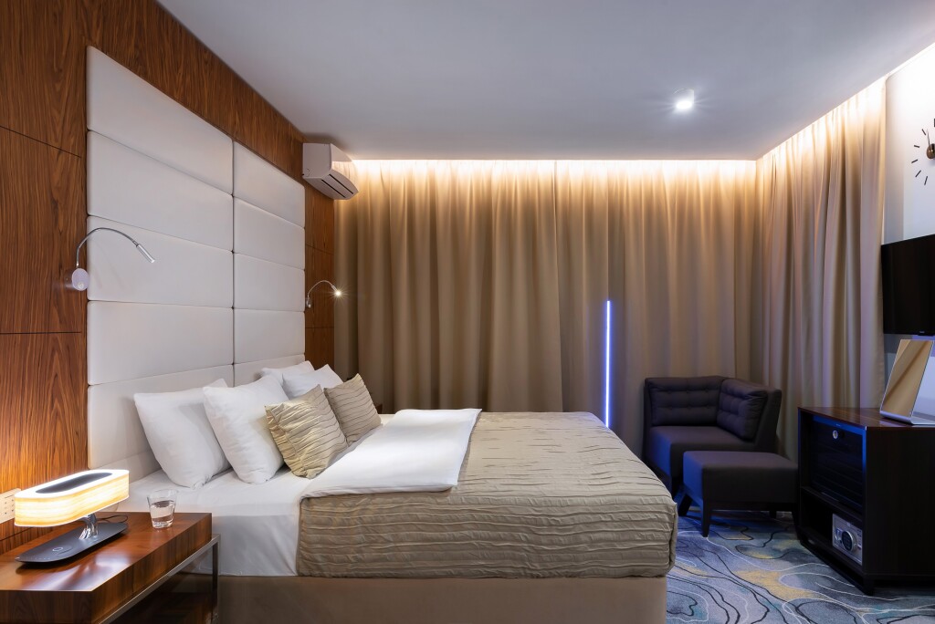 Каждый номер оборудован Smart TV, автоматическими шторами, кофемашинами, мини-барами, кондиционерами. Имеются номера с балконами и видом на центр города. Апартаменты оснащены кухнями. В ванных комнатах установлена система «тёплый пол» и душ биде.
