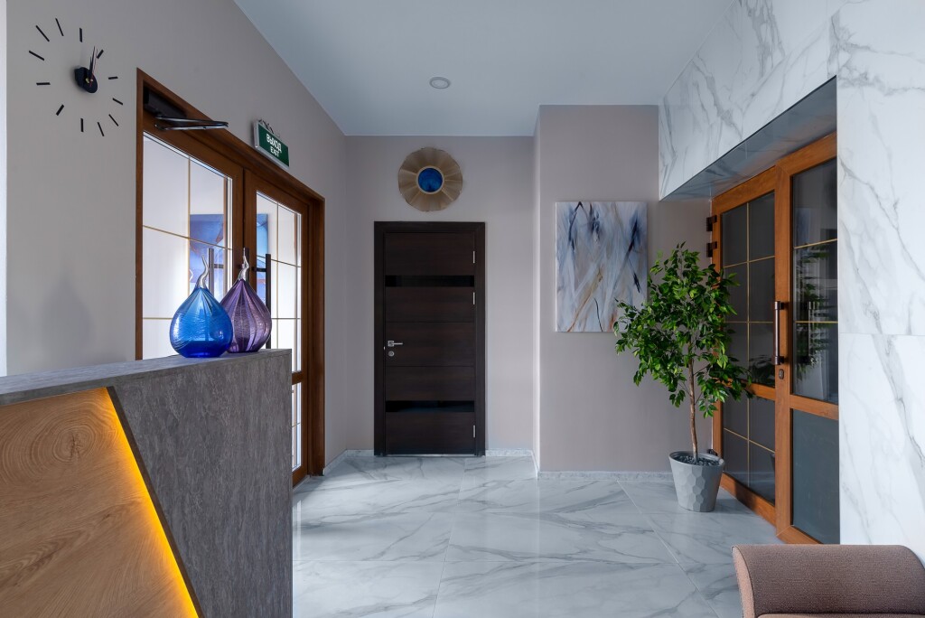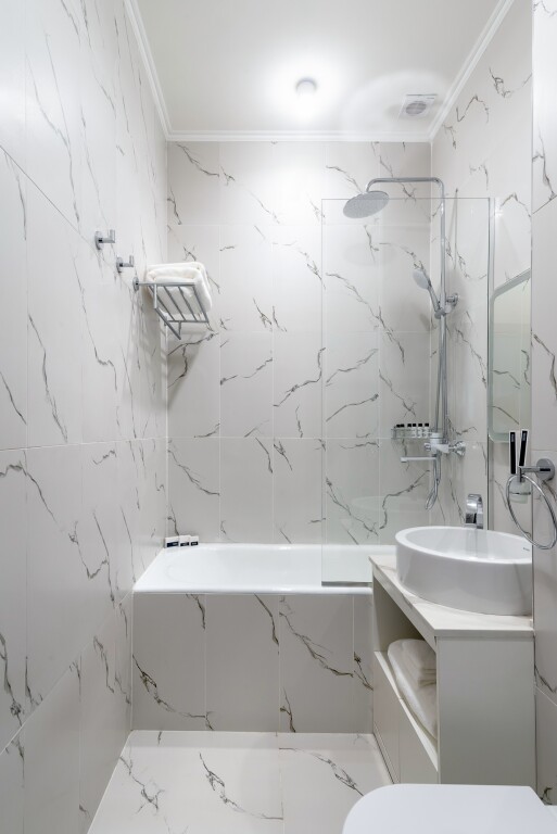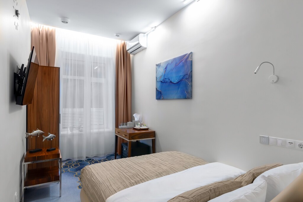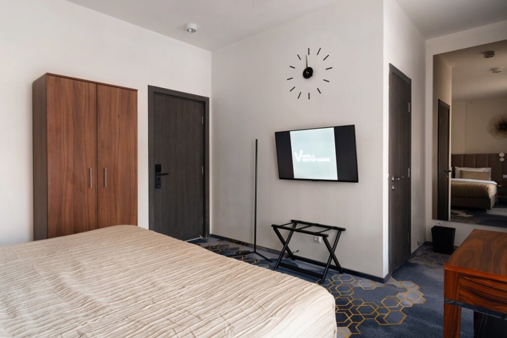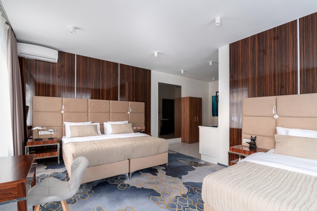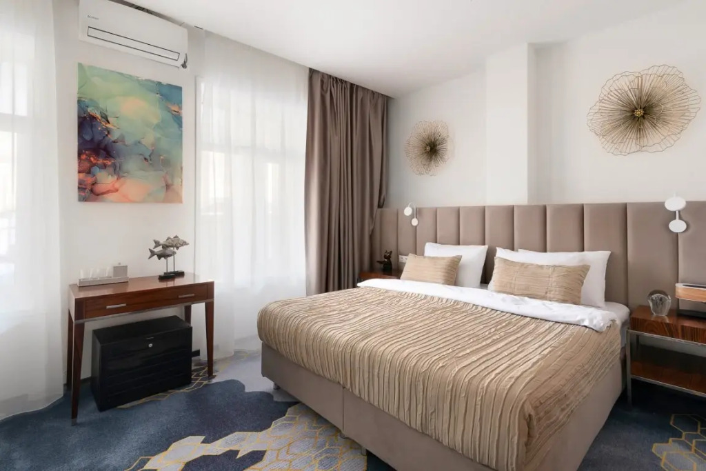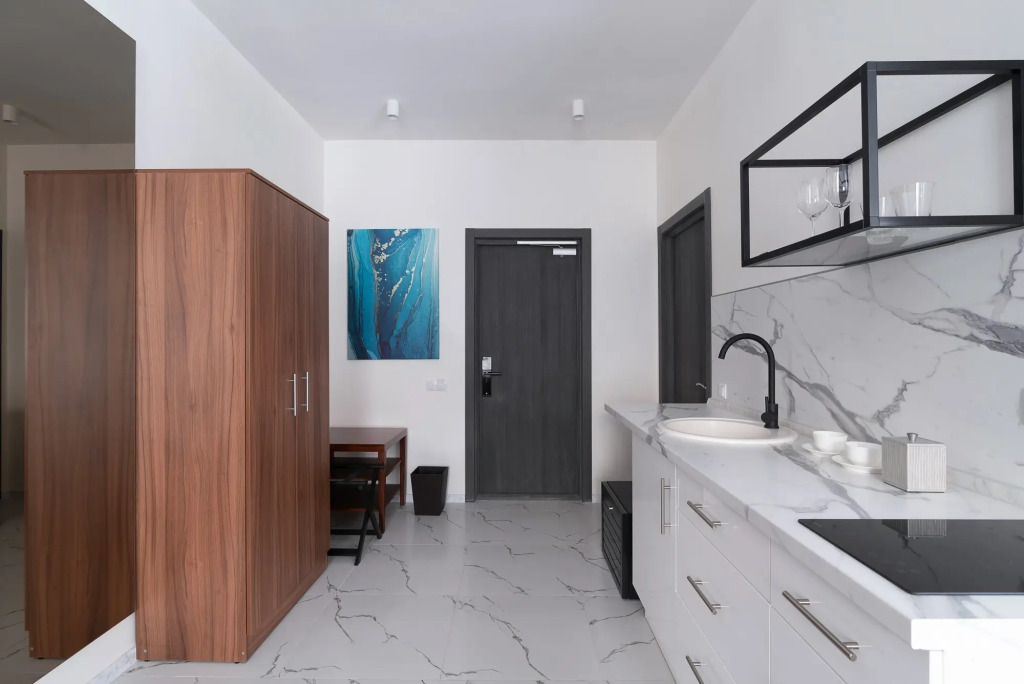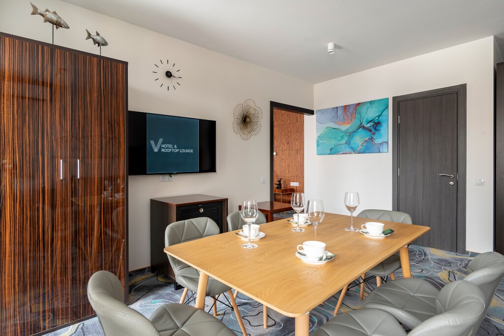 Каждый номер оборудован Smart TV, автоматическими шторами, кофемашинами, мини-барами, кондиционерами. Имеются номера с балконами и видом на центр города. Апартаменты оснащены кухнями. В ванных комнатах установлена система «тёплый пол» и душ биде.