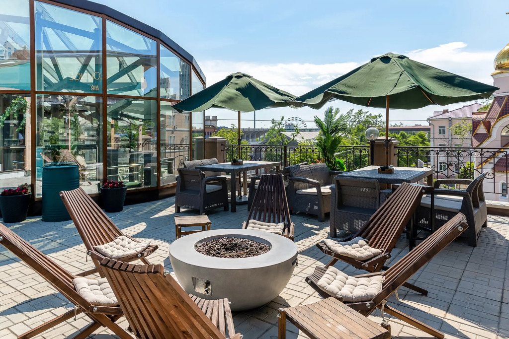Отель представляет собой 26 номеров, апартаментов, летний бар Rooftop lounge на крыше.