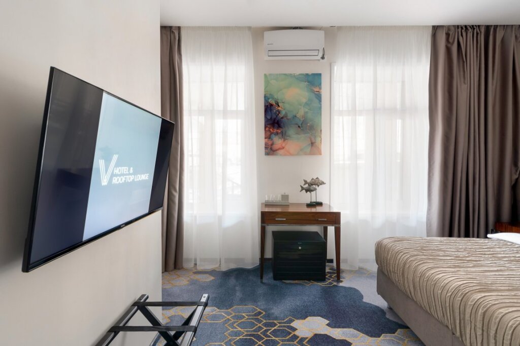 Отель V Hotel&Rooftop Lounge расположен во Владивостоке, неподалёку от центра города. В шаговой доступности культурные достопримечательности города, набережная, Арбат, краевая администрация, бизнес-центры, банки, популярные рестораны, бары и кафе.