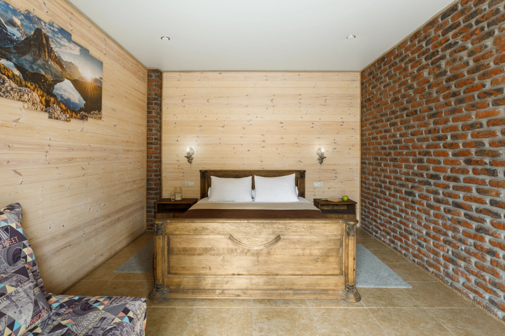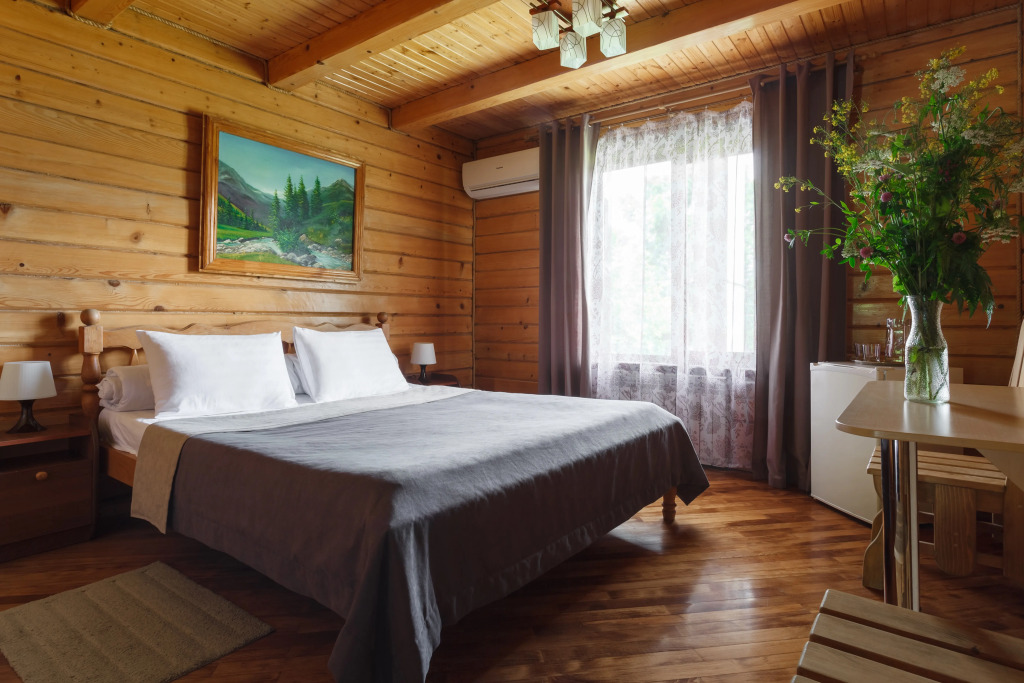 На территории отеля есть круглогодично подогреваемый открытый бассейн с детской зоной, зона барбекю, крытые беседки и парковка. Также есть традиционная русская баня и кафе. Для детей оборудована детская площадка. В стоимость проживания включены завтраки и бассейн.