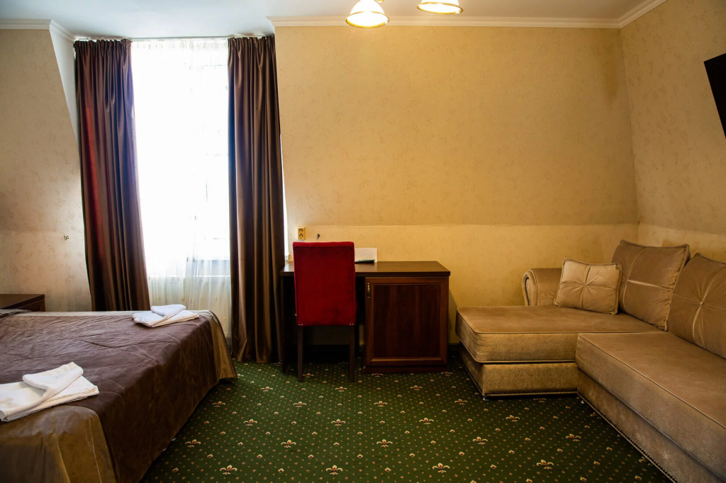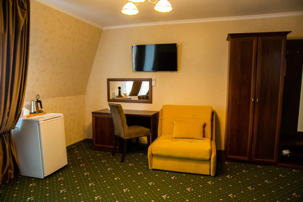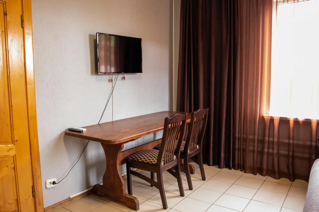 Чтобы вы могли отдохнуть после долгого дня, в номере есть телевизор. Оснащение зависит от выбранной категории номера.