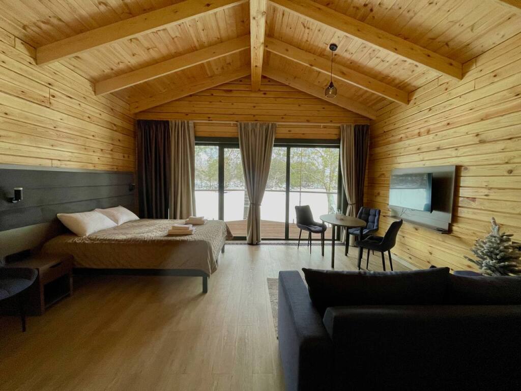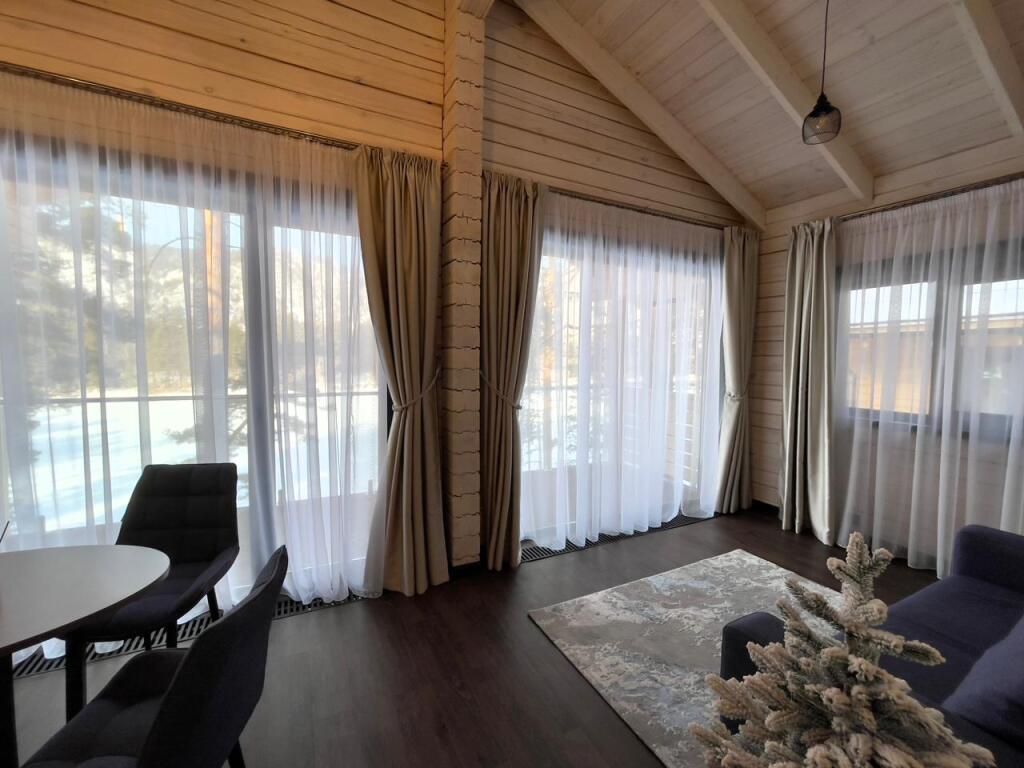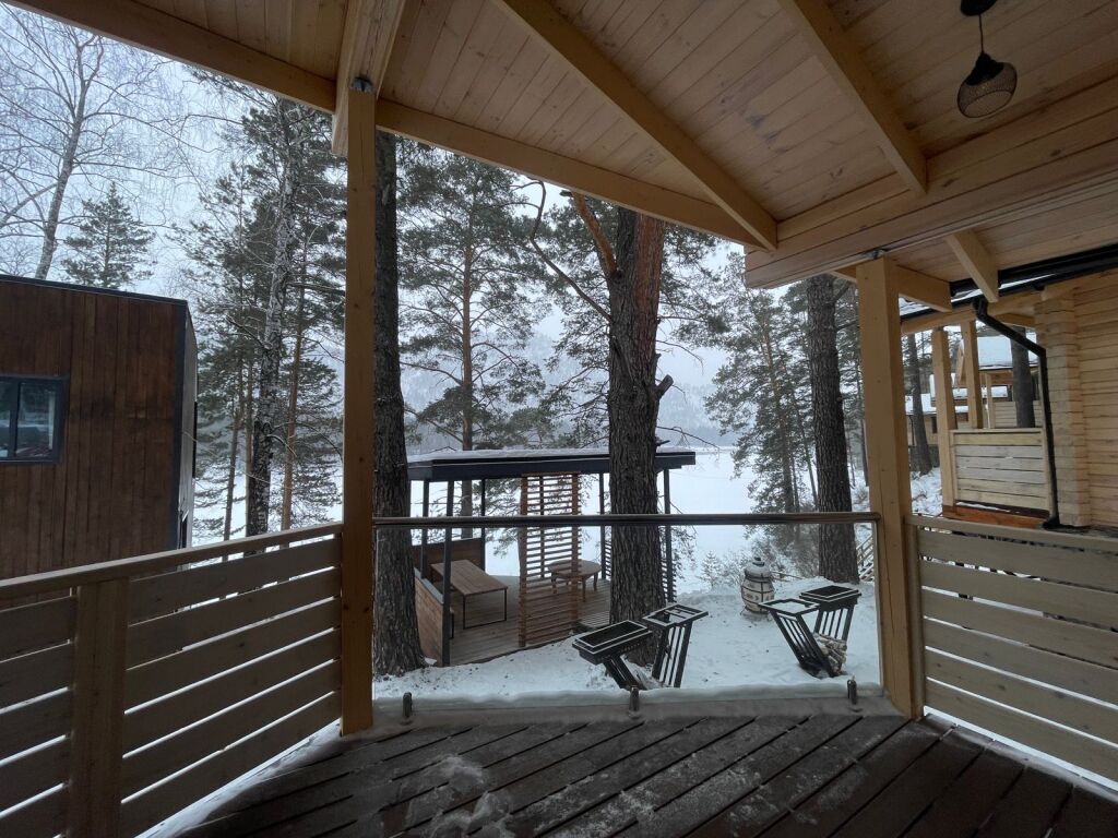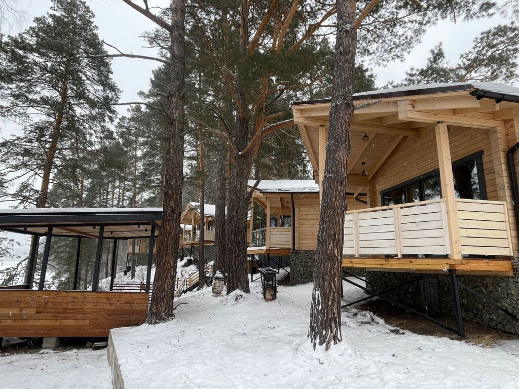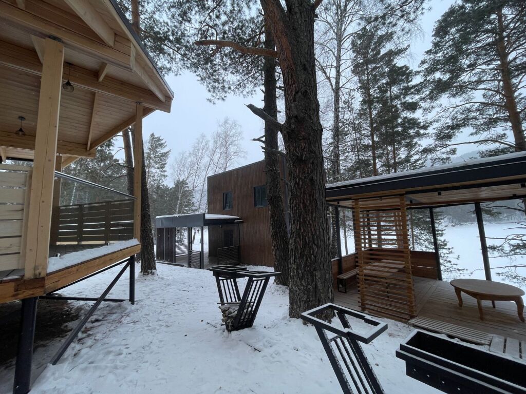 Шале оборудованы необходимым, чтобы отдохнуть после долгого и насыщенного дня: ортопедические матрасы, постельное бельё, обеденная зона с травяным алтайским чаем, гостиная с диваном и панорамными видами.
