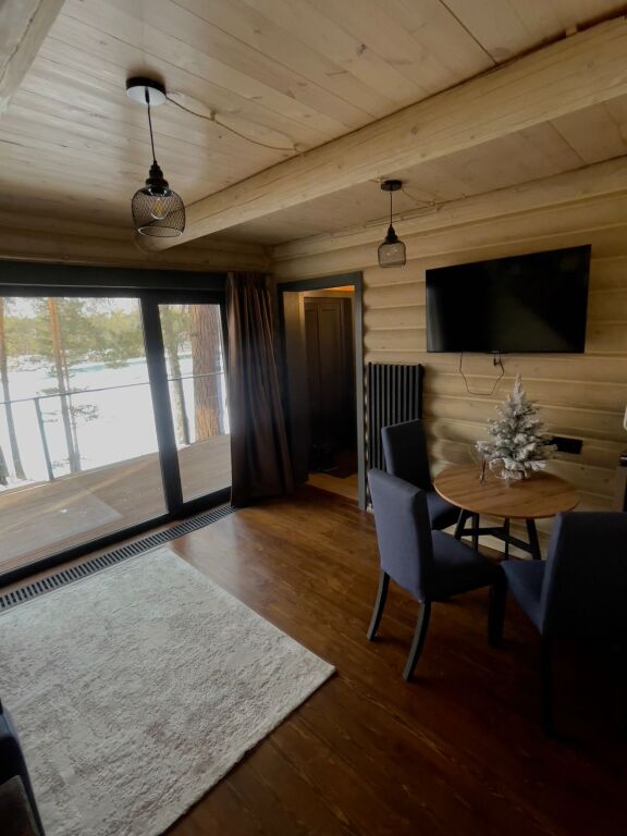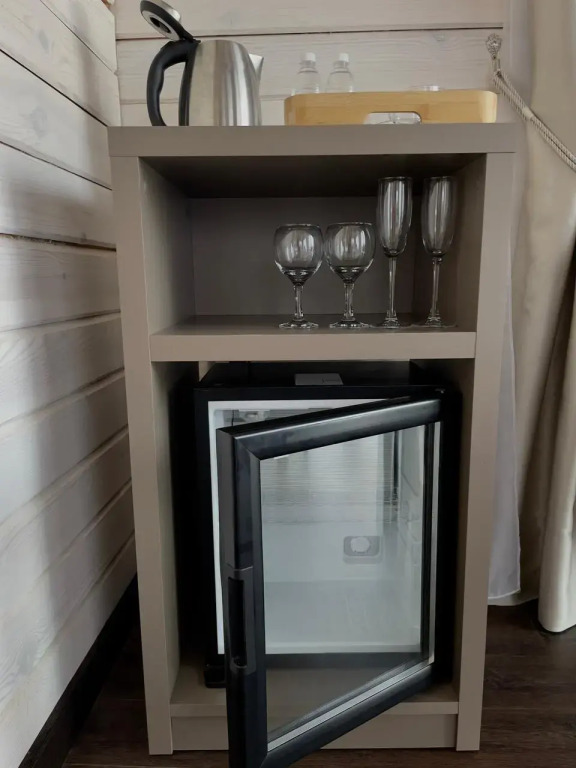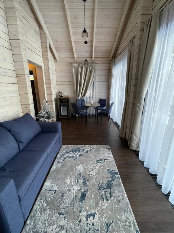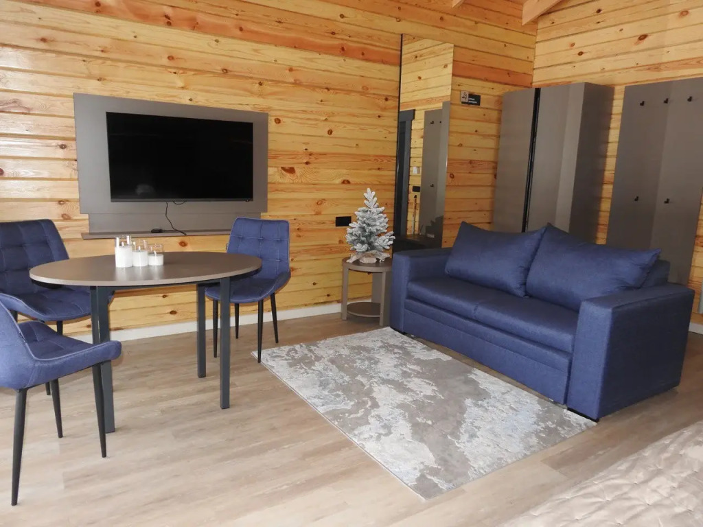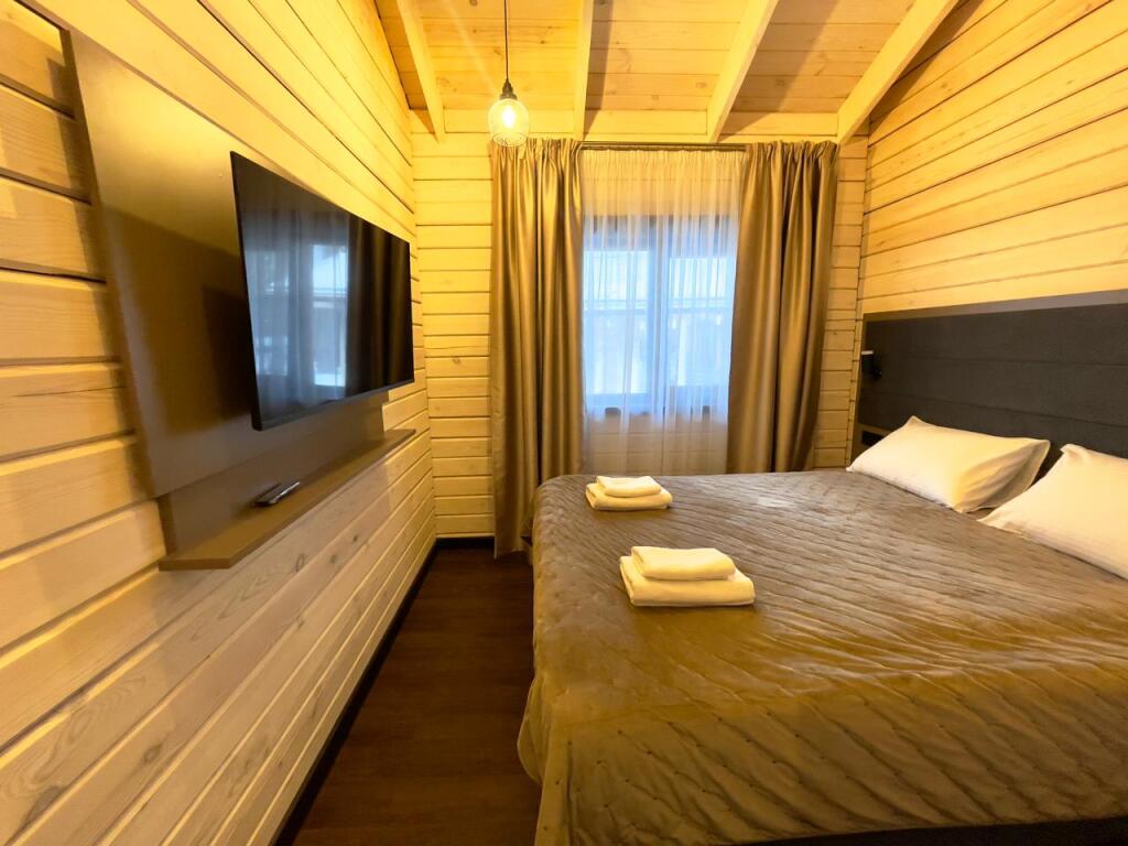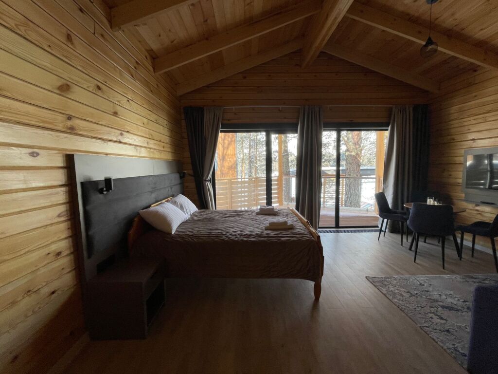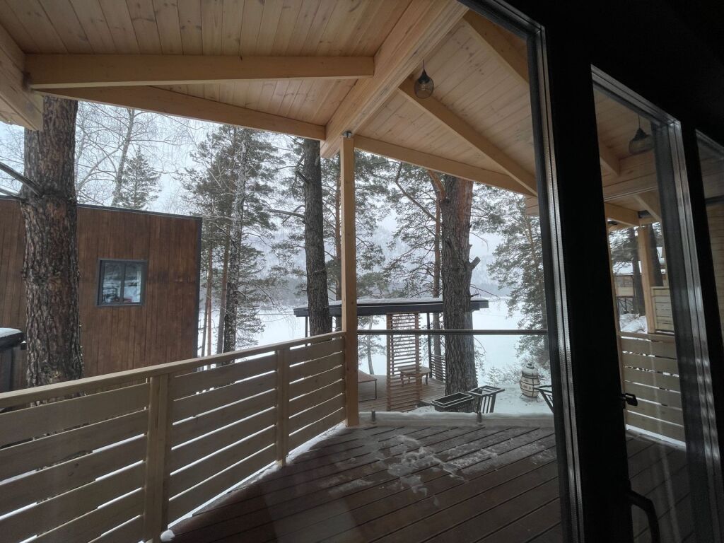 Шале оборудованы необходимым, чтобы отдохнуть после долгого и насыщенного дня: ортопедические матрасы, постельное бельё, обеденная зона с травяным алтайским чаем, гостиная с диваном и панорамными видами.