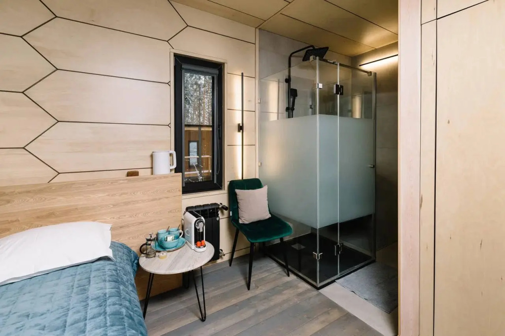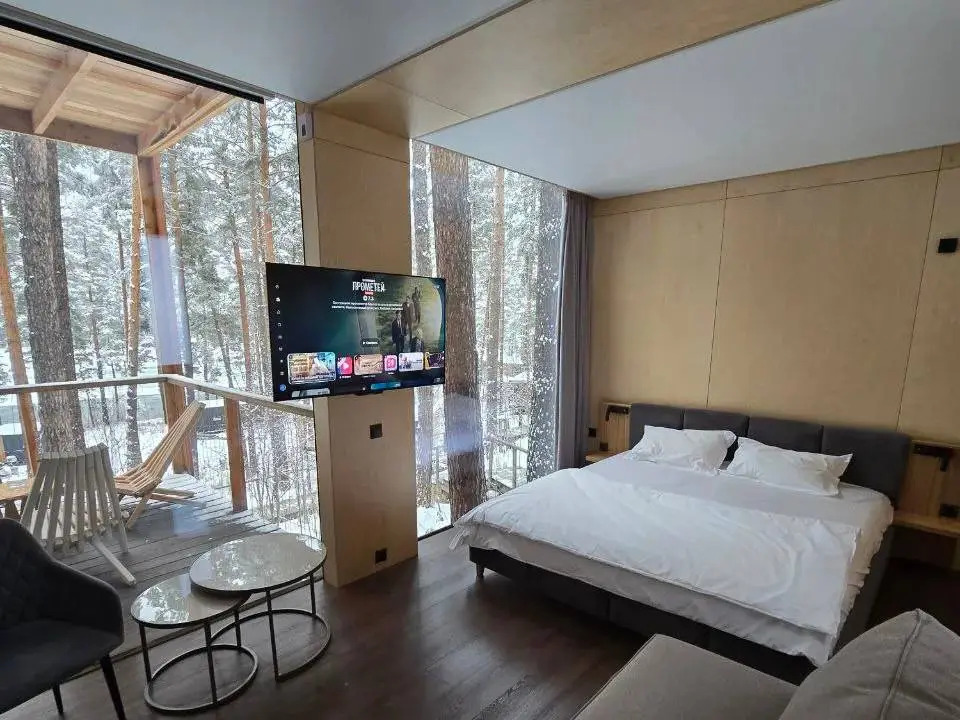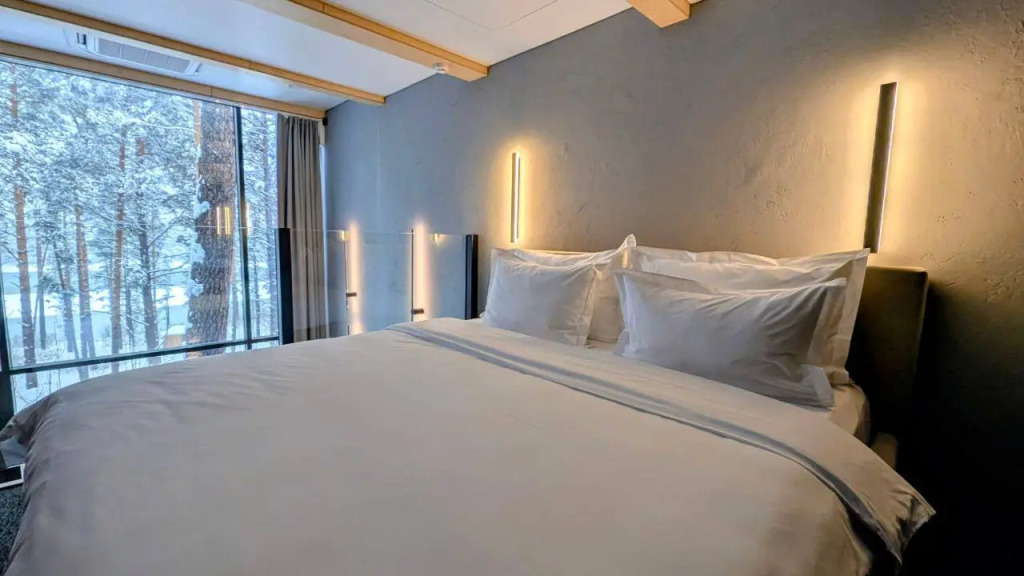 В распоряжении гостей номерной фонд отеля с различными видами комплектаций. Среди удобств номеров есть: двуспальная кровать с ортопедическим матрасом и постельным бельём из сатина, ванная комната с тропическим душем и горячей водой, туалетом, косметикой для душа, комплектом полотенец и халатов для каждого гостя, шкаф и плечики для хранения личных вещей, мини-кухня, посуда для напитков, холодильник, электрический чайник, кофемашина, мини-бар, уличная мебель на террасе и качели, бесплатный Wi-Fi, тёплый пол, кондиционер, фен, проектор, парогенератор. Оснащение номера зависит от выбранной категории.