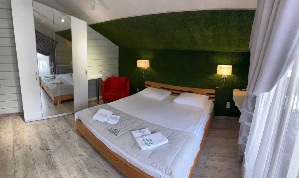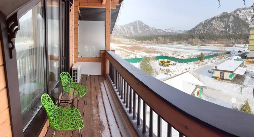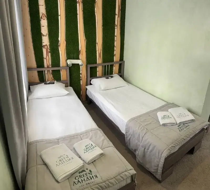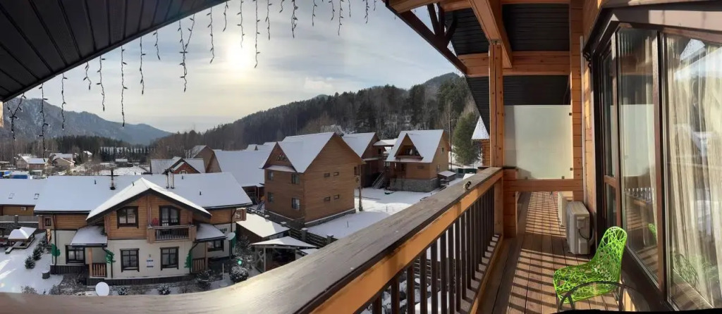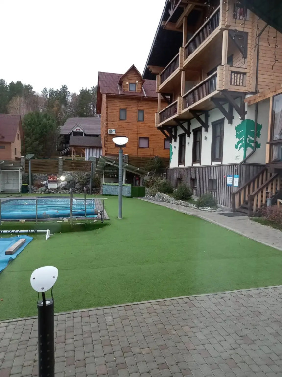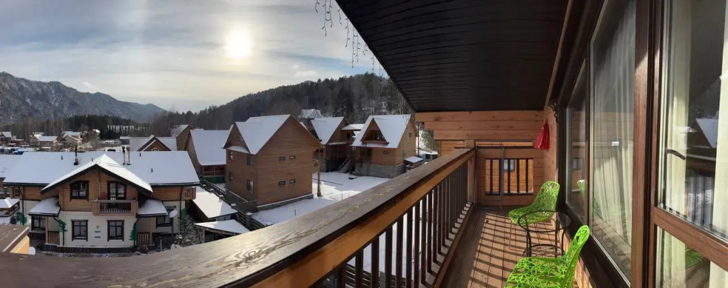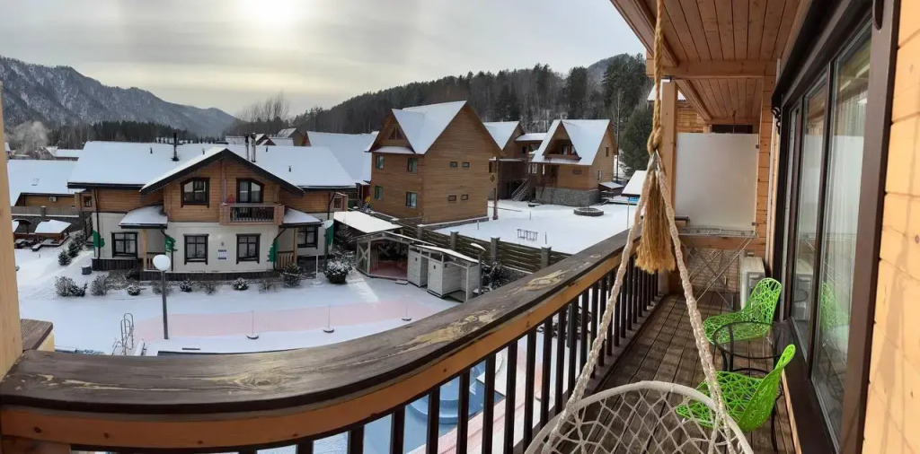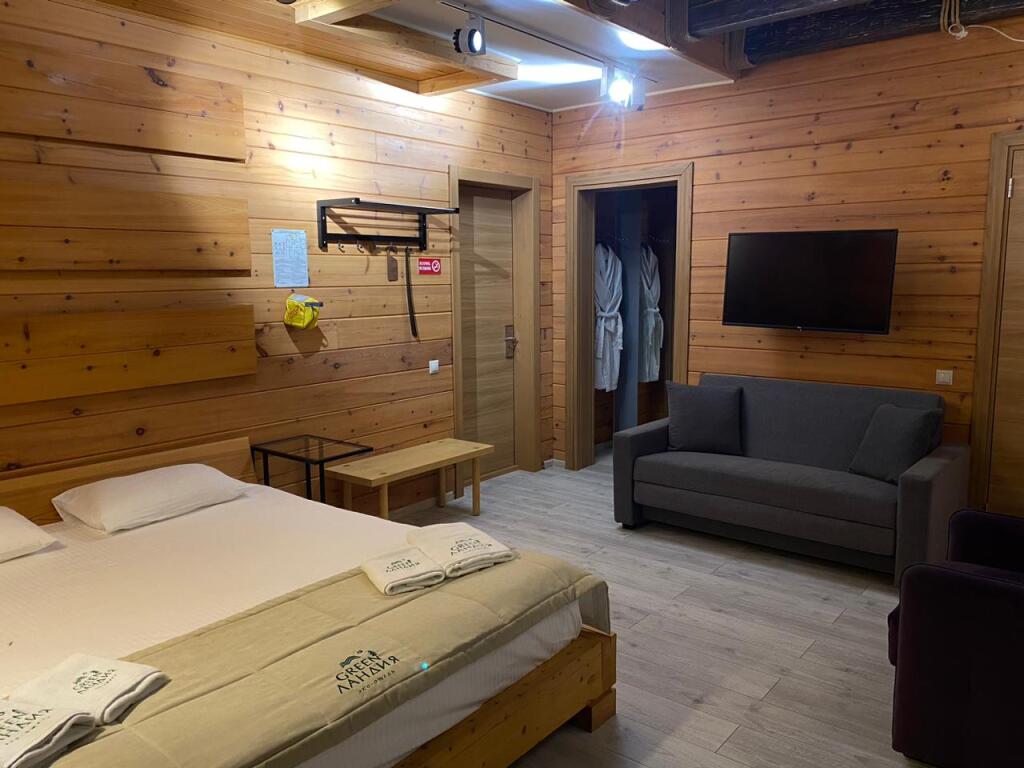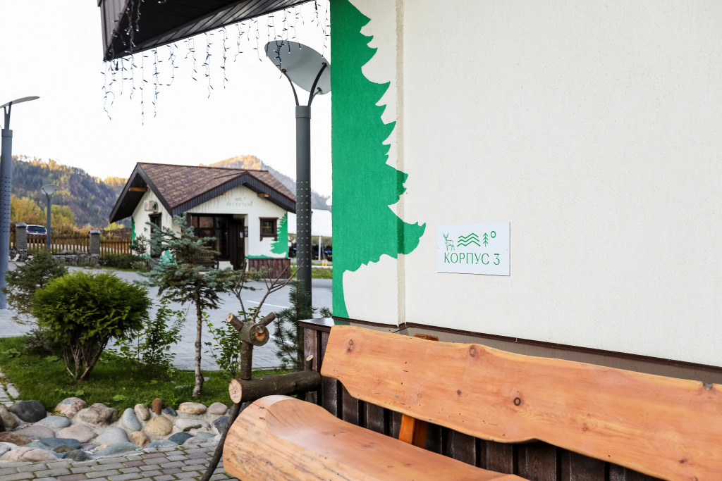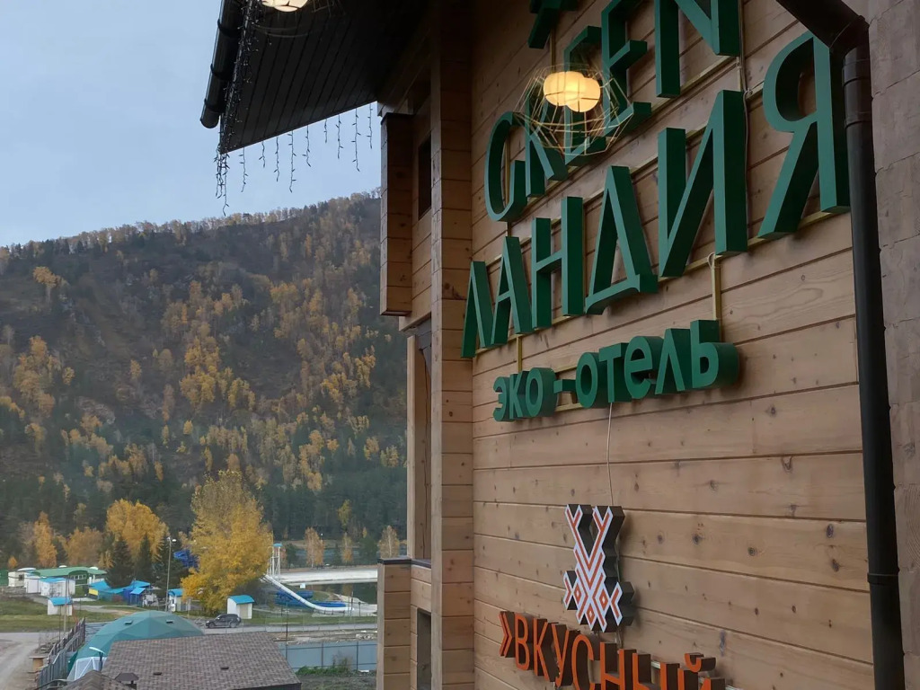 Отель «Green Ландия» расположен в городе Манжерок. Отель находится вблизи реки Катунь, в 7 км есть горнолыжные склоны.