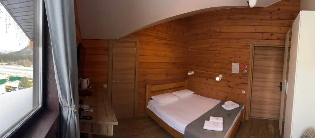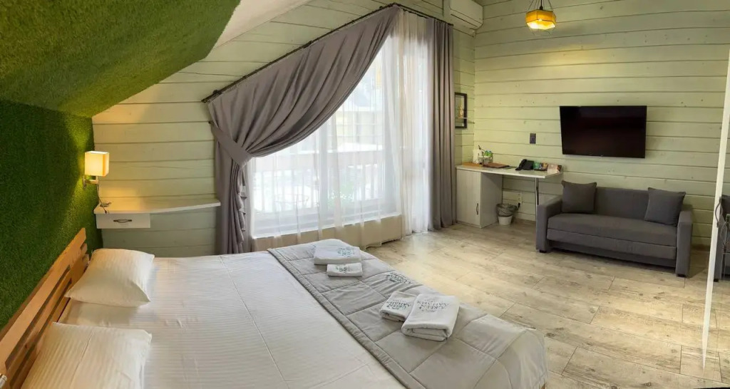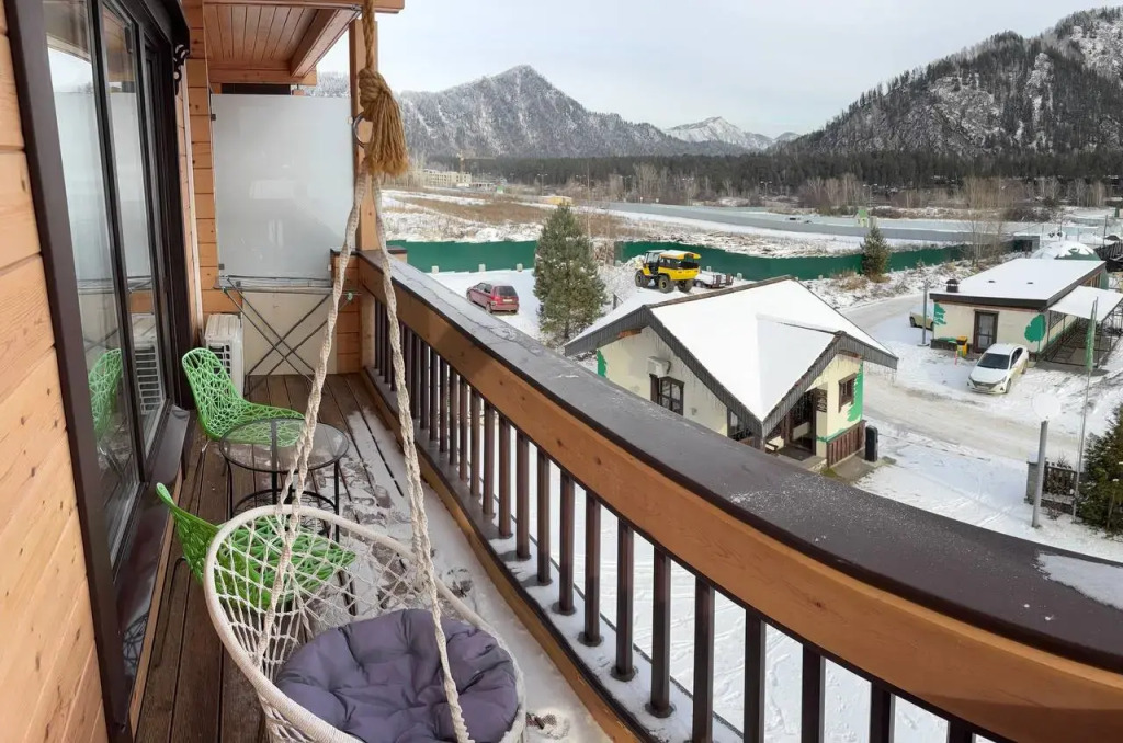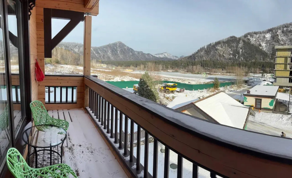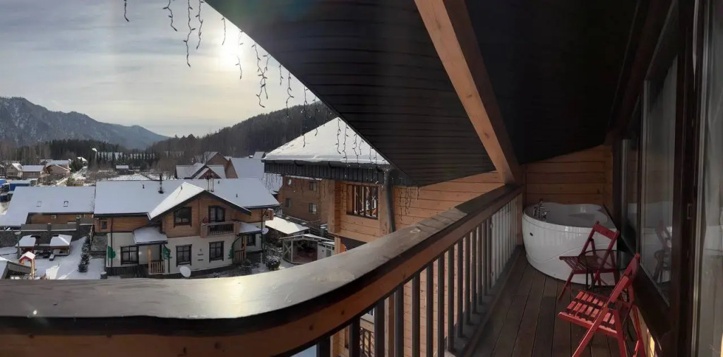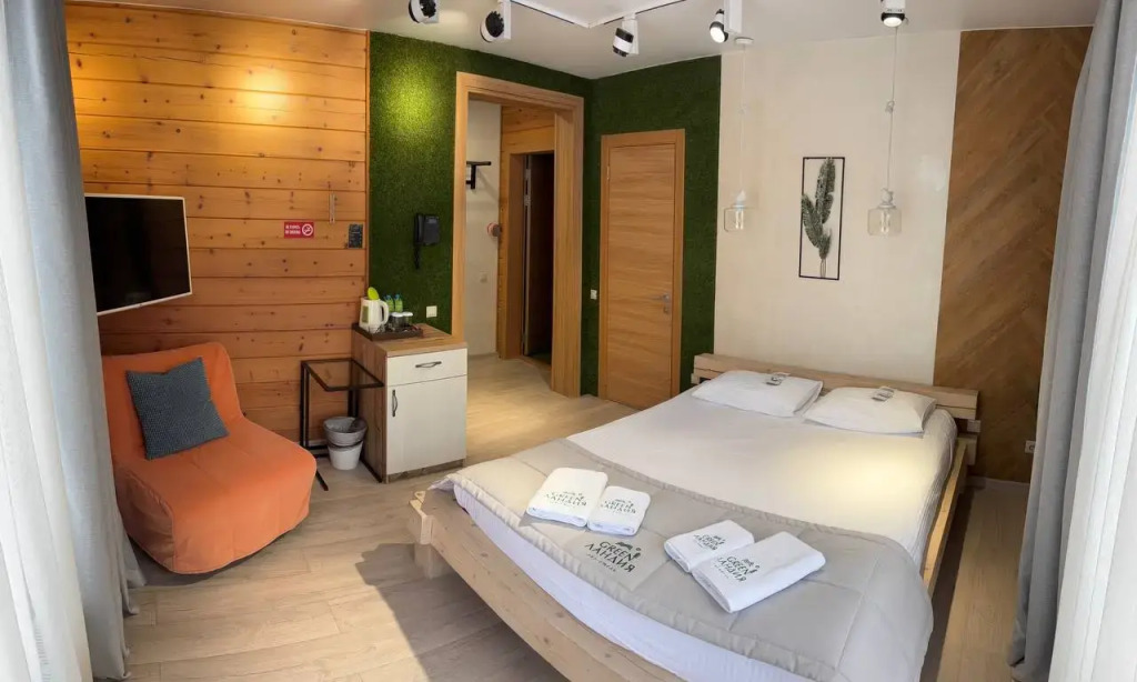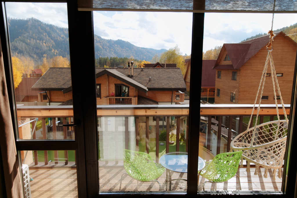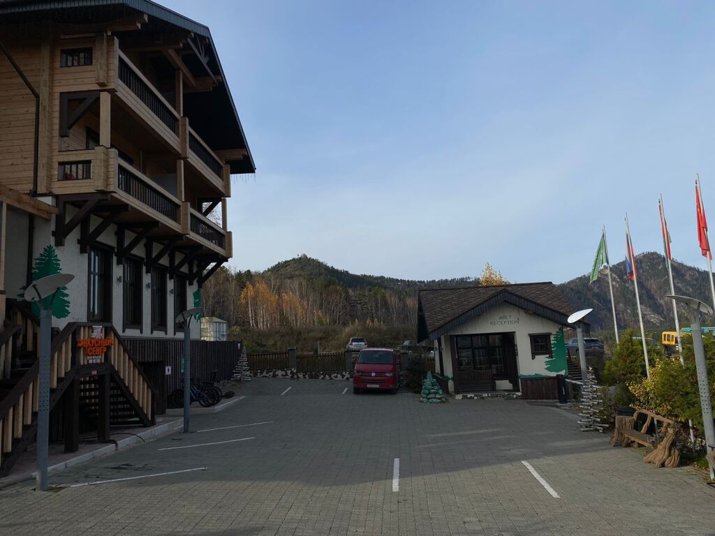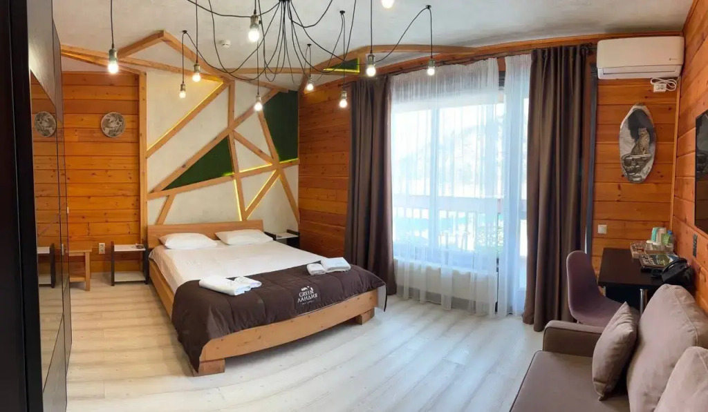 Отель «Green Ландия» расположен в городе Манжерок. Отель находится вблизи реки Катунь, в 7 км есть горнолыжные склоны.