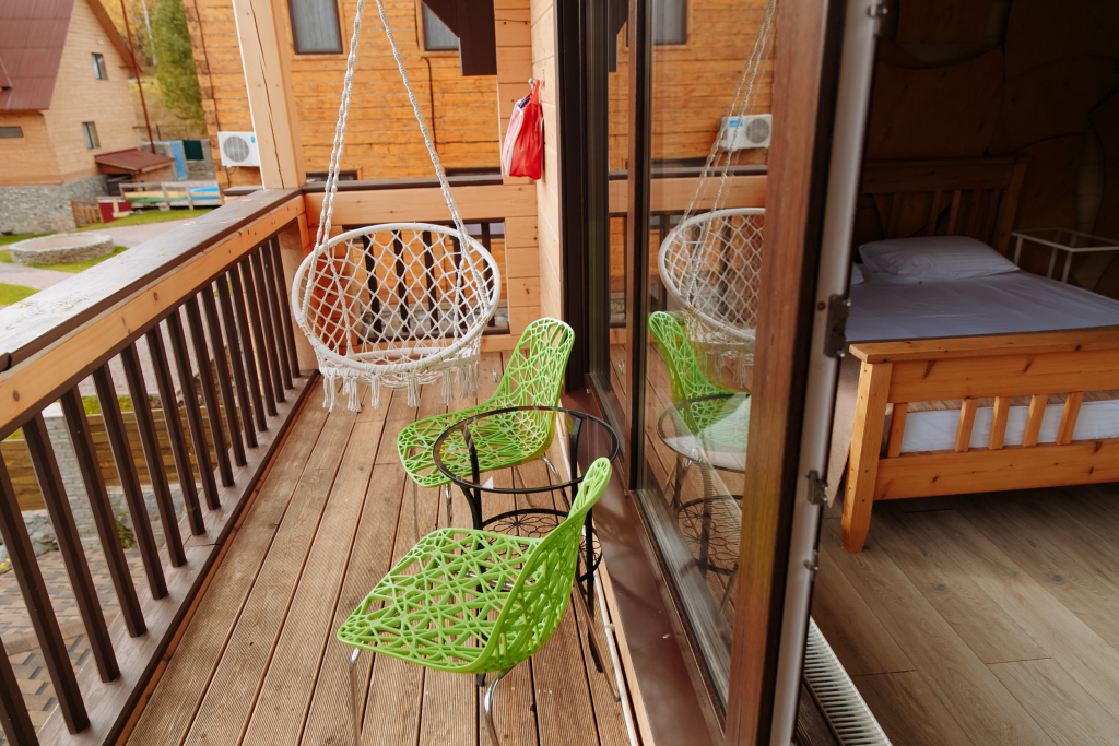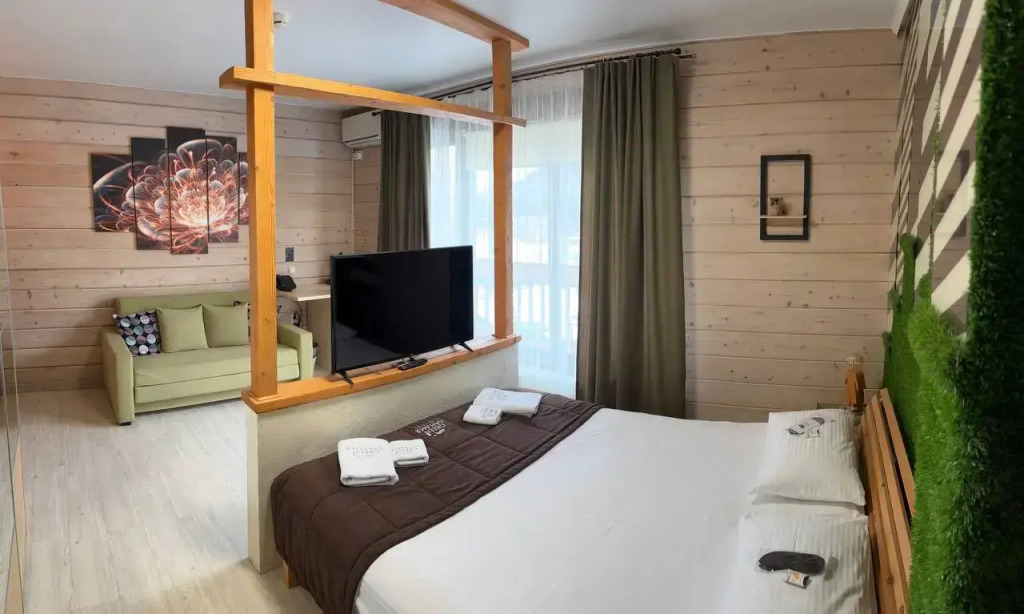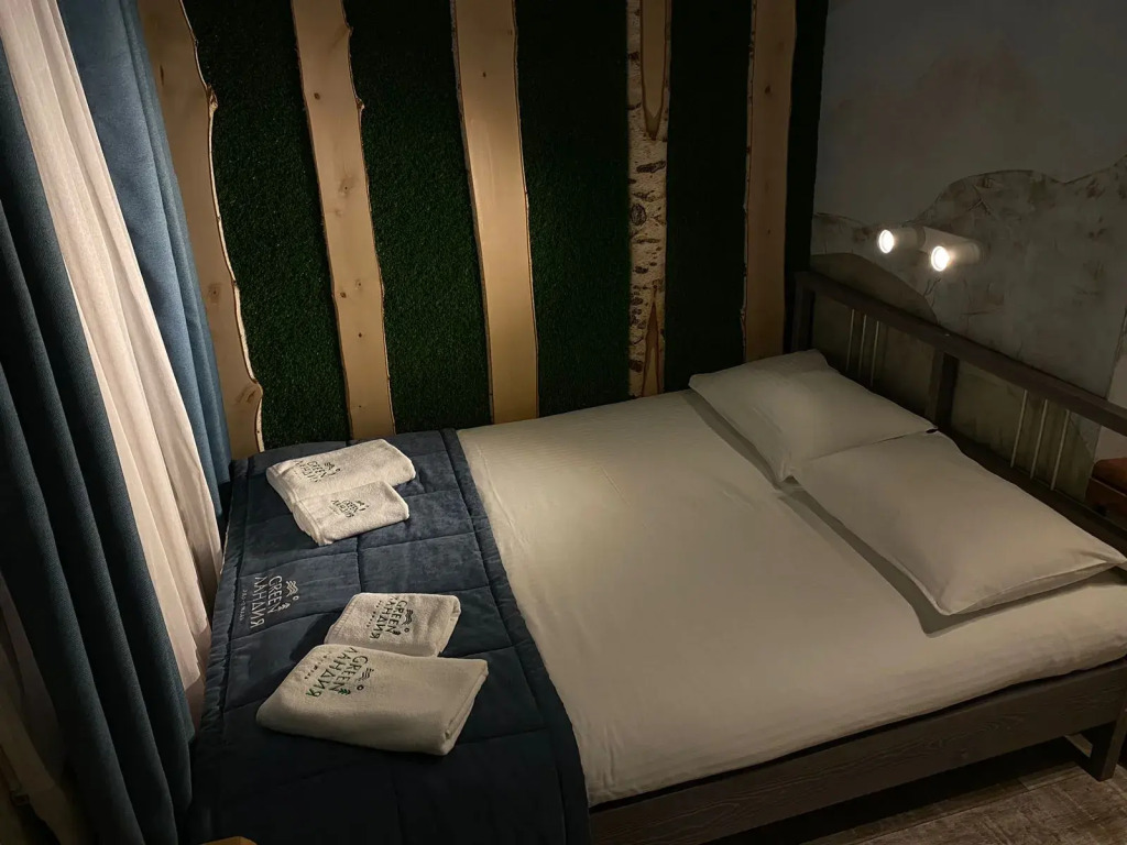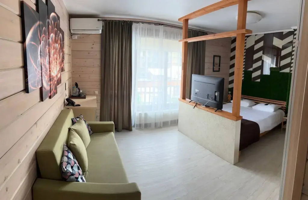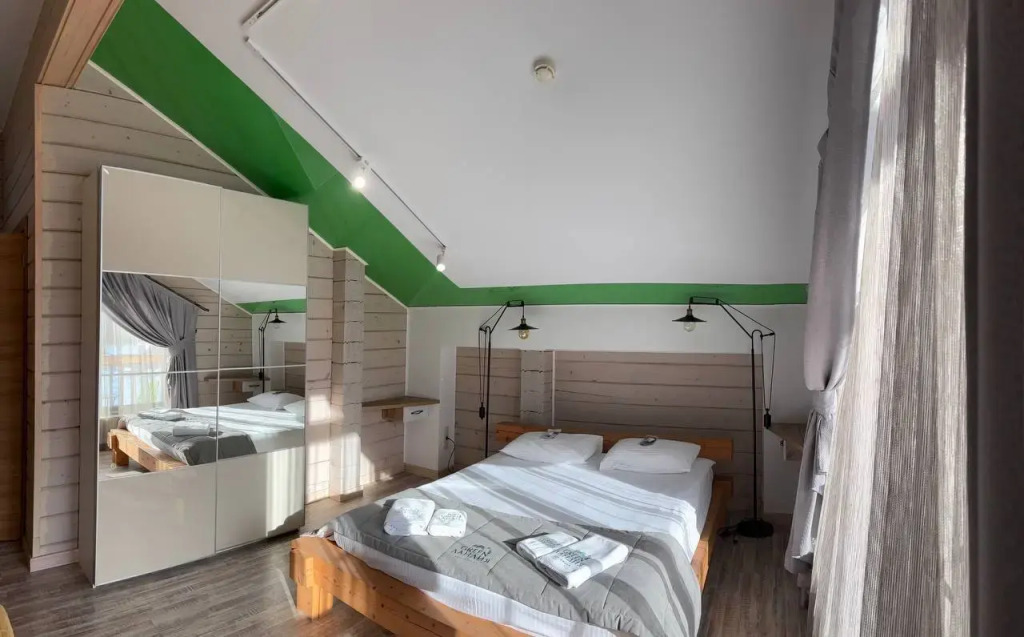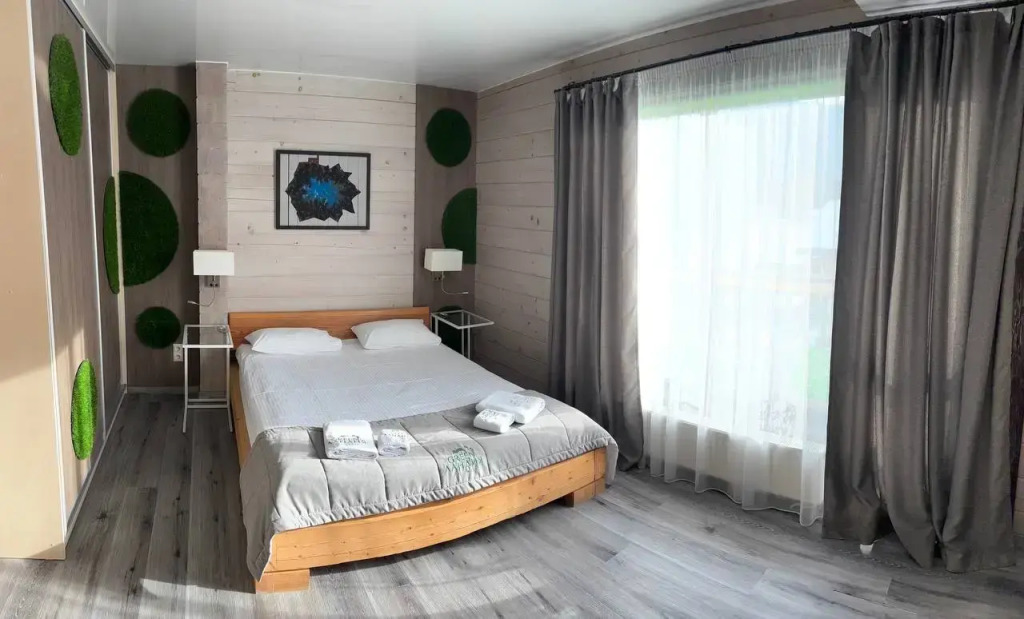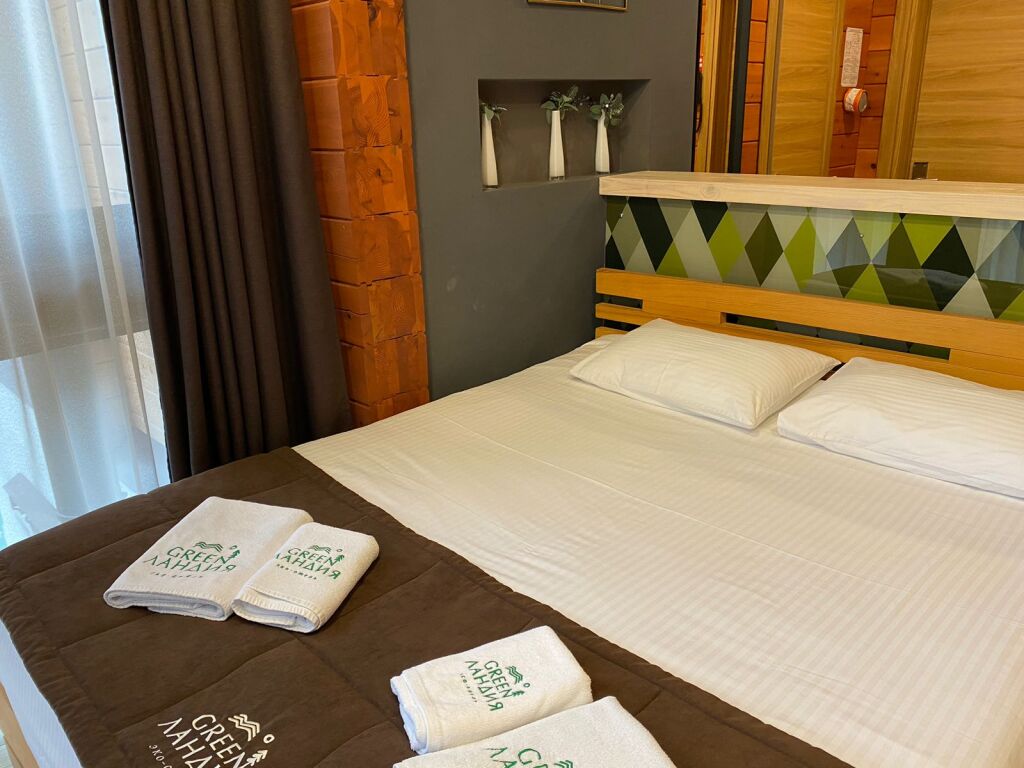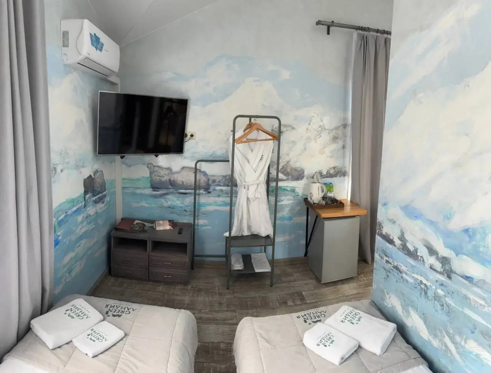 Отель «Green Ландия» расположен в городе Манжерок. Отель находится вблизи реки Катунь, в 7 км есть горнолыжные склоны.