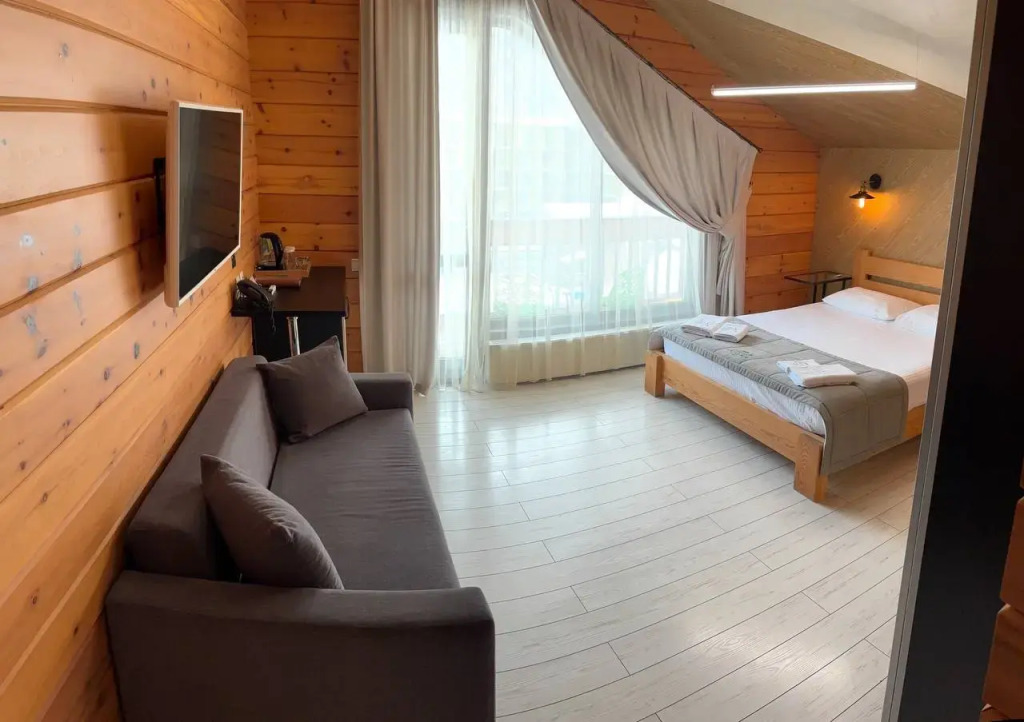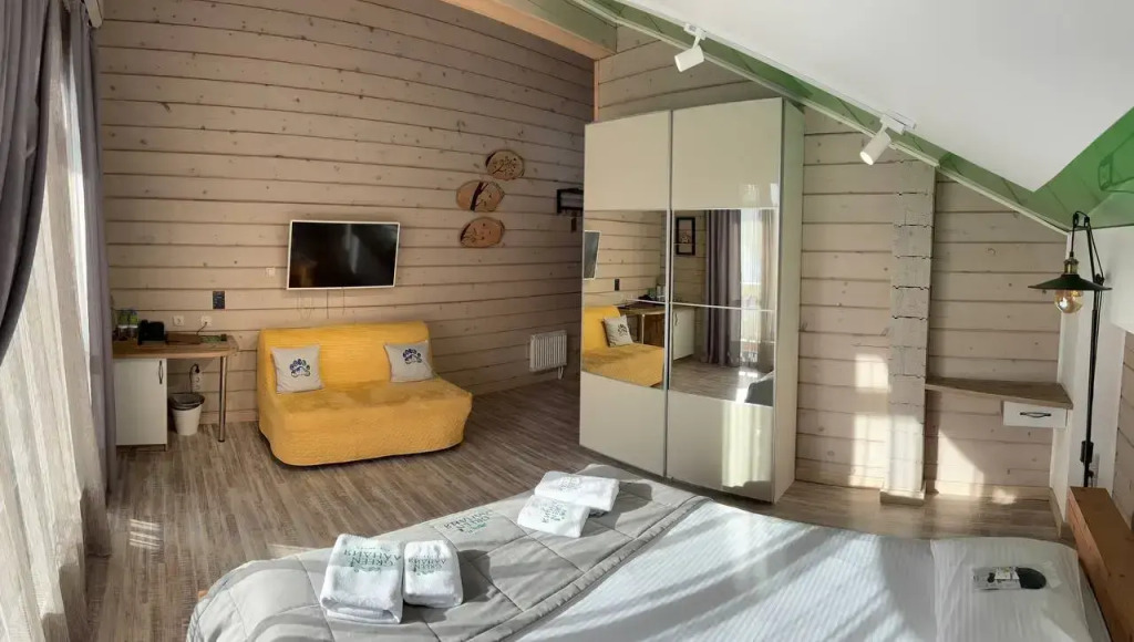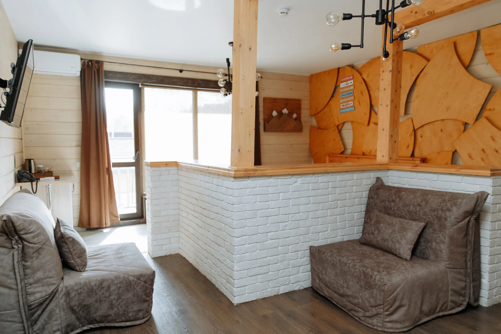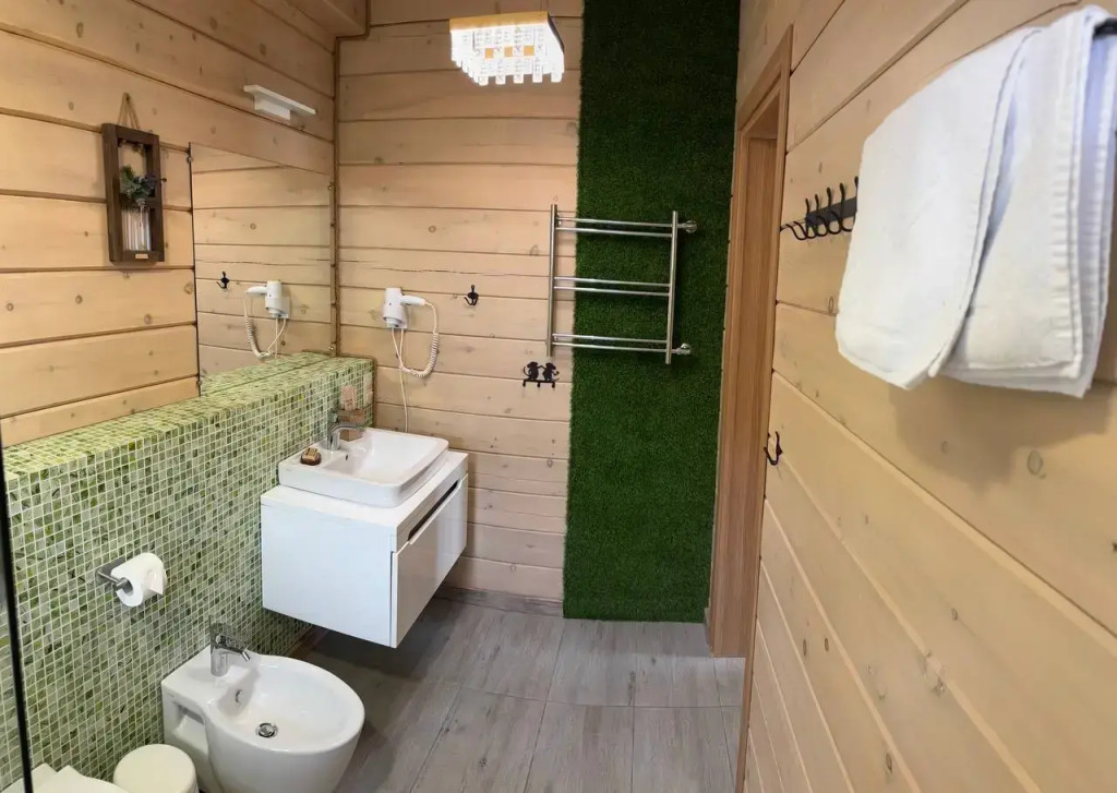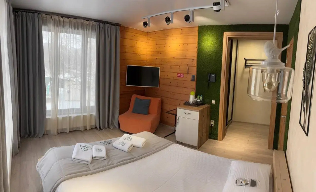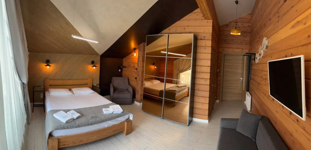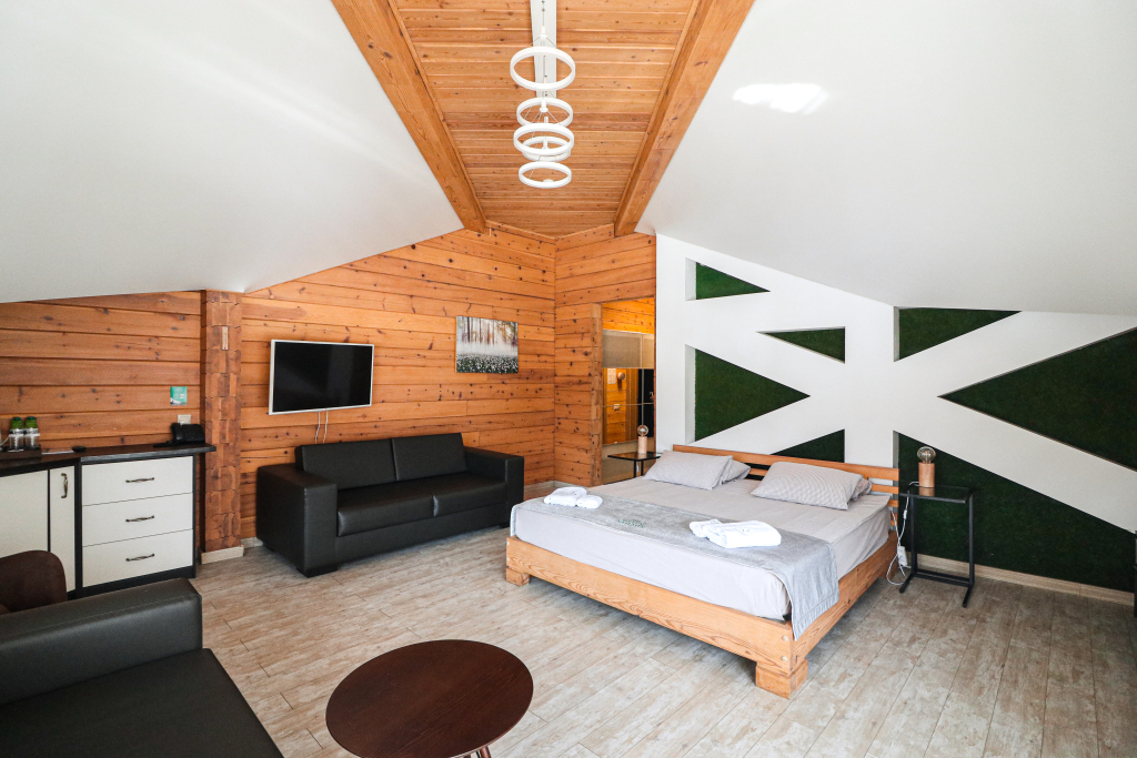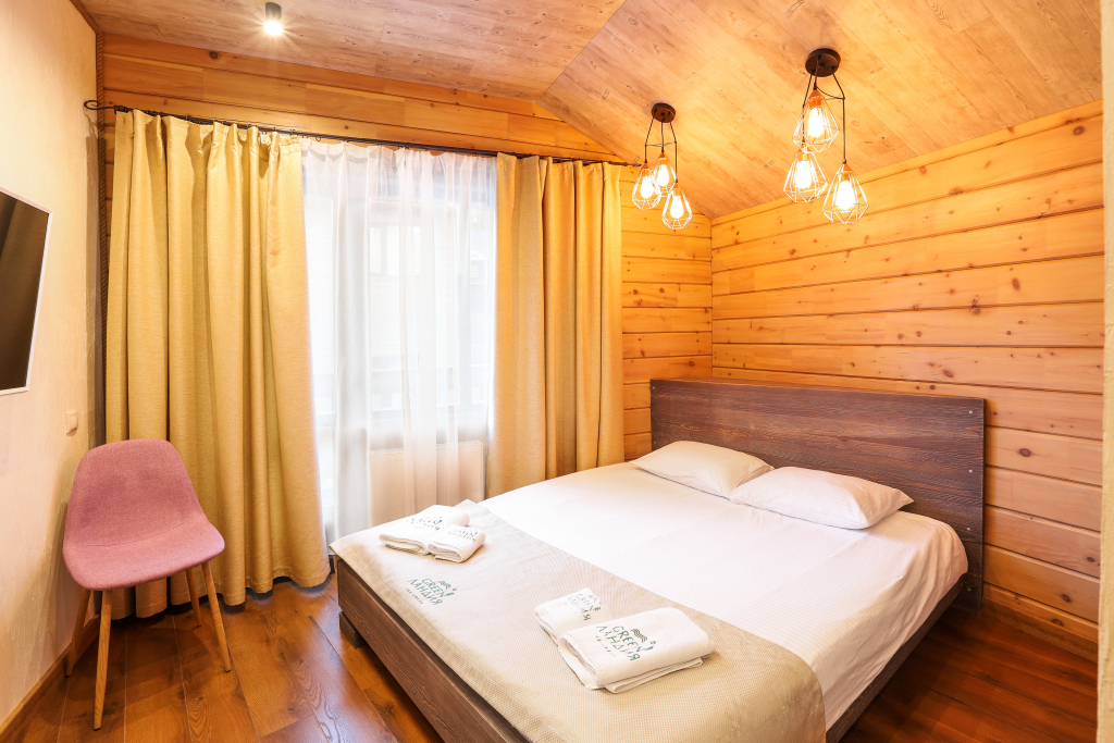 Отель «Green Ландия» расположен в городе Манжерок. Отель находится вблизи реки Катунь, в 7 км есть горнолыжные склоны.
