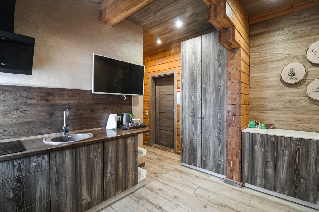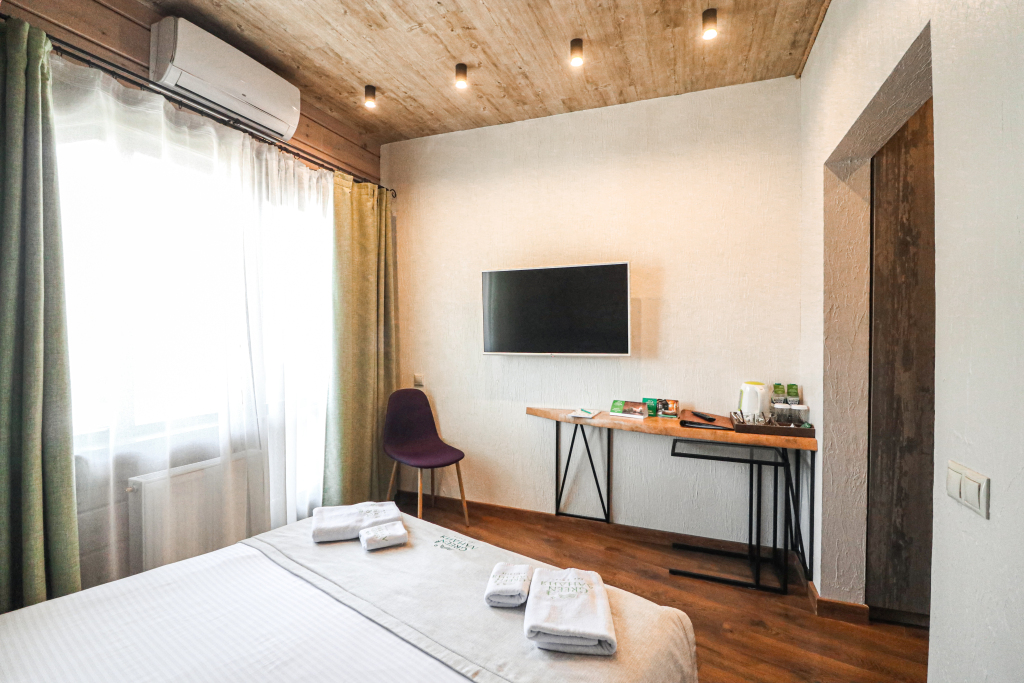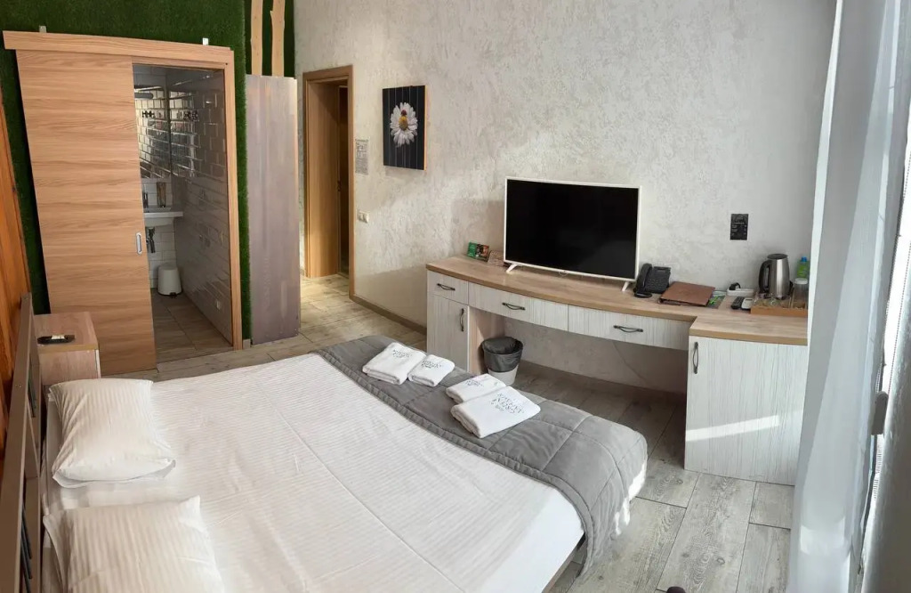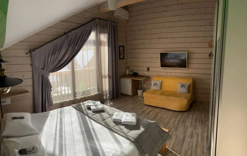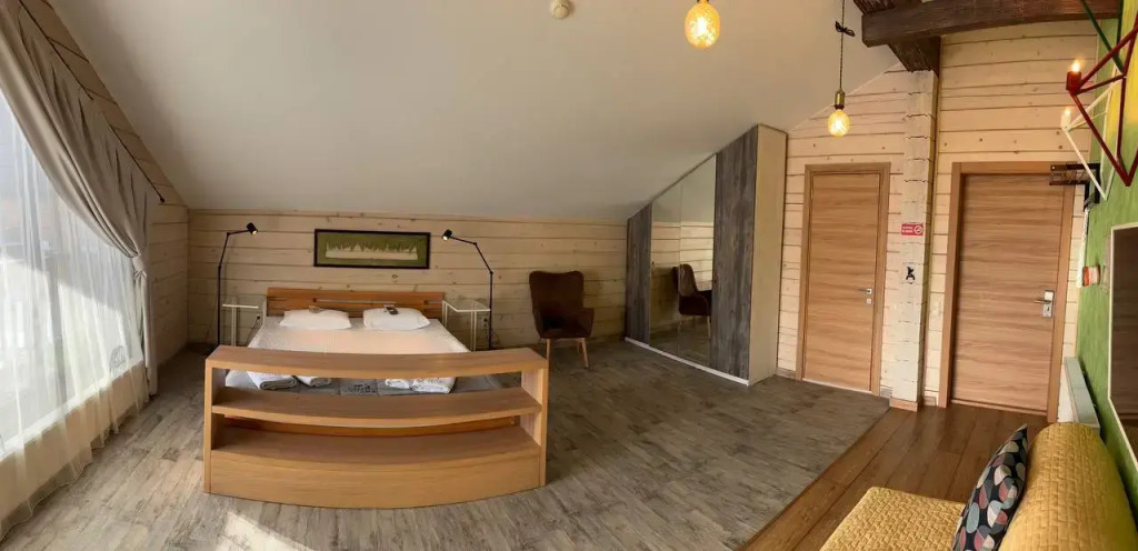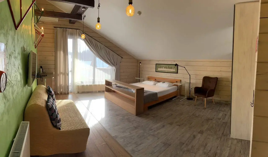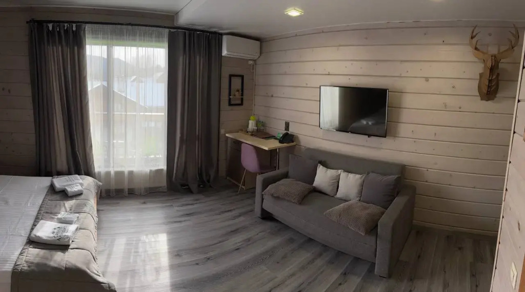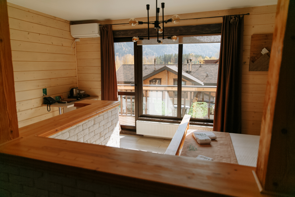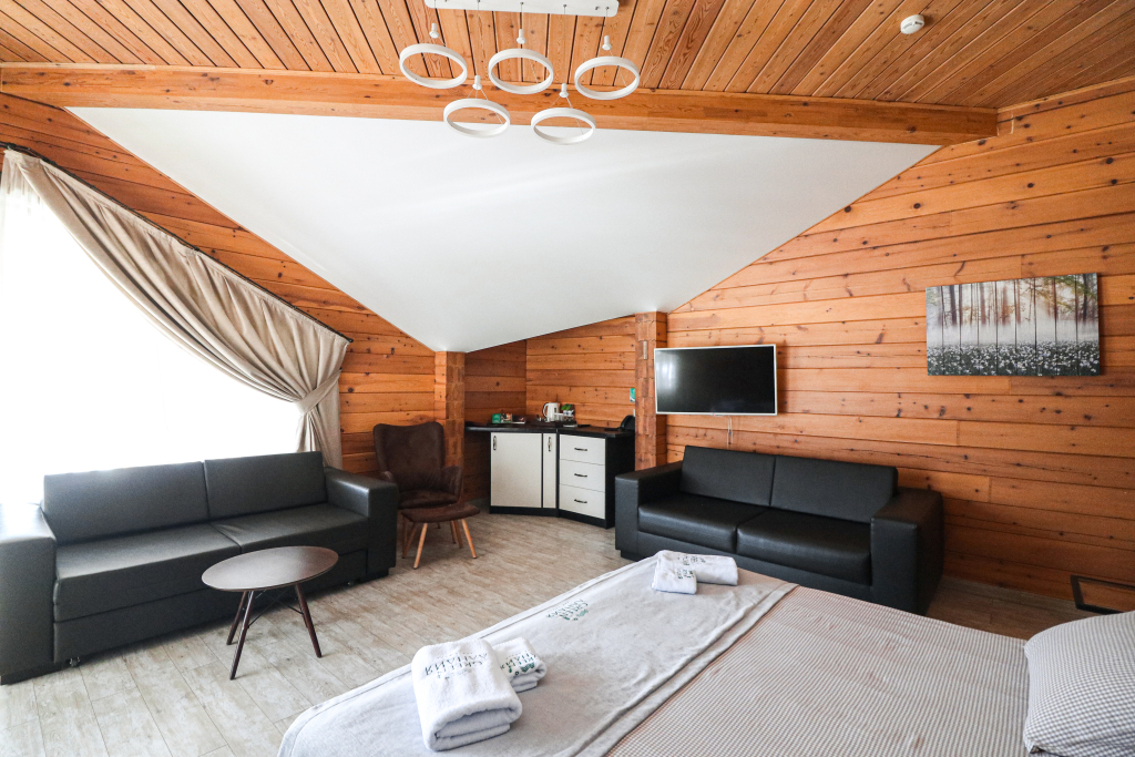 Отель «Green Ландия» расположен в городе Манжерок. Отель находится вблизи реки Катунь, в 7 км есть горнолыжные склоны.