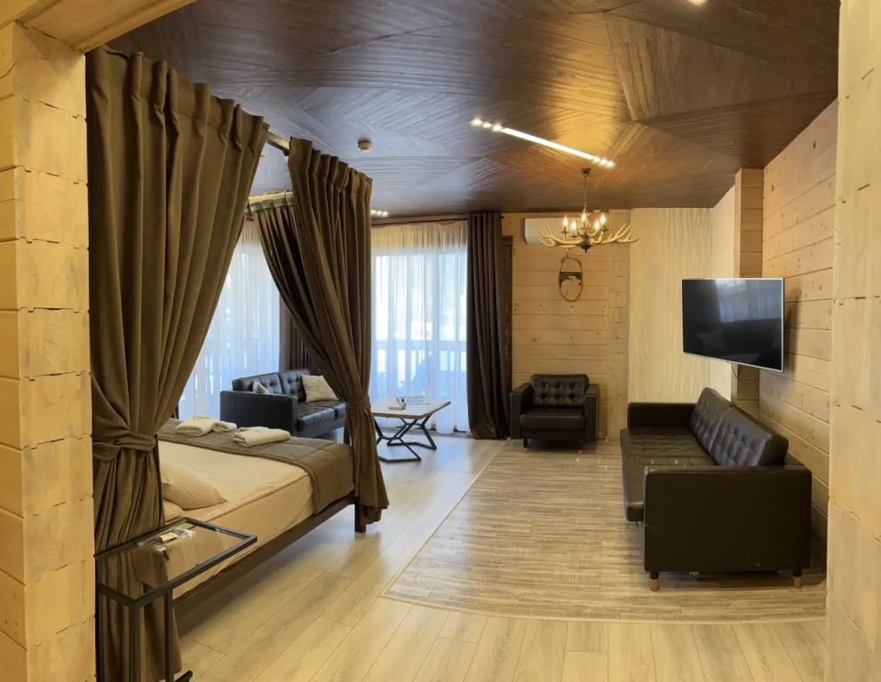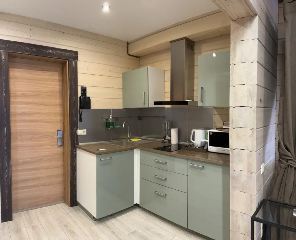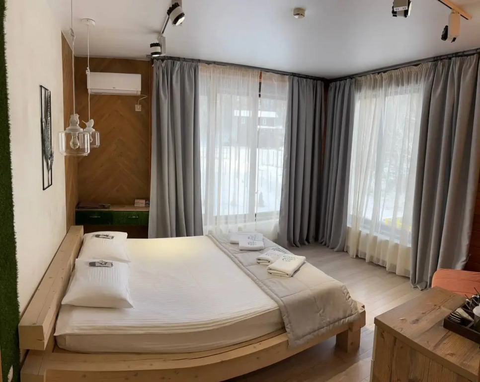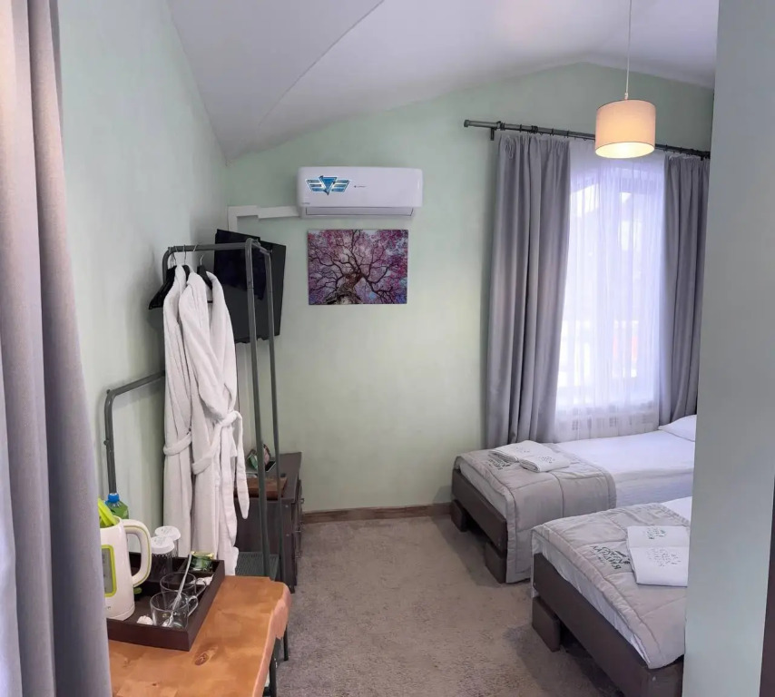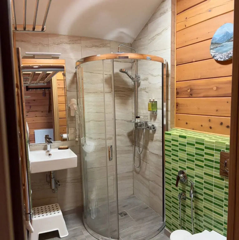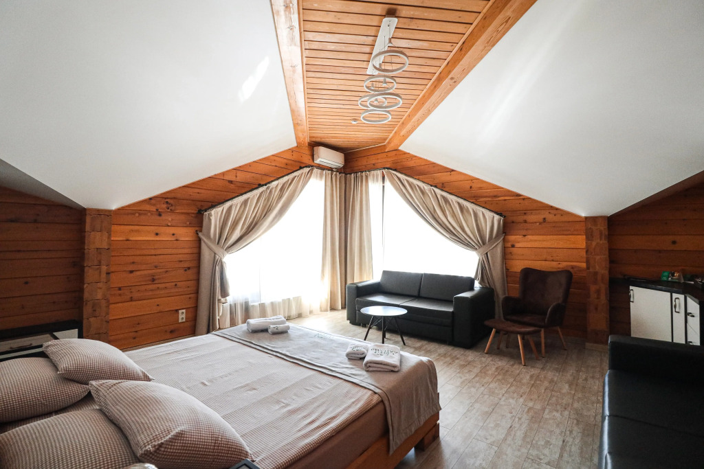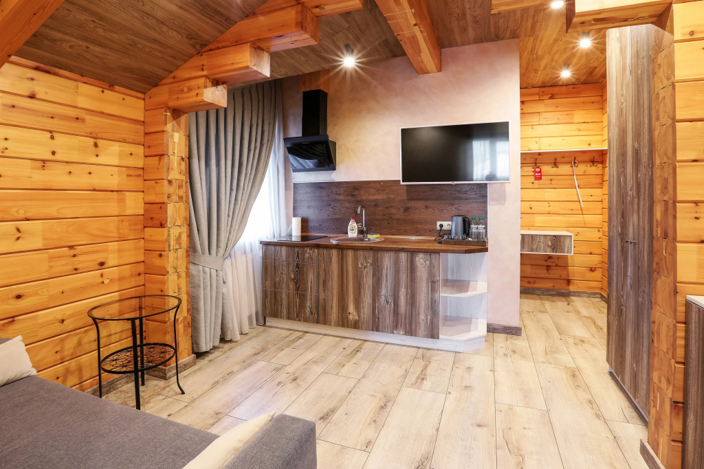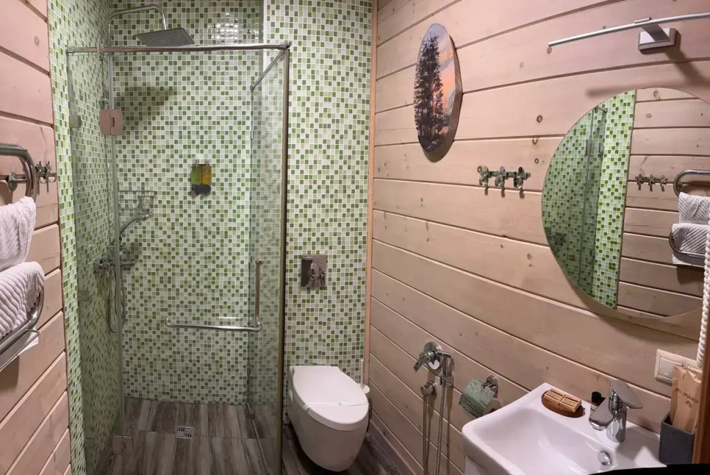 Отель «Green Ландия» расположен в городе Манжерок. Отель находится вблизи реки Катунь, в 7 км есть горнолыжные склоны.
