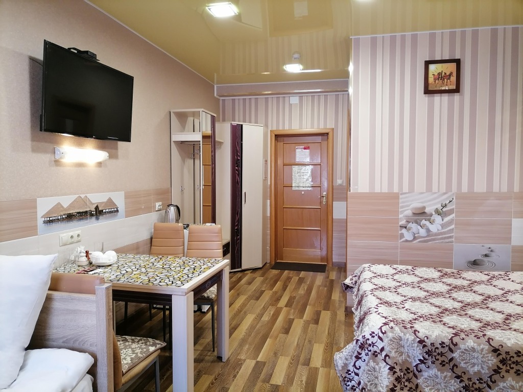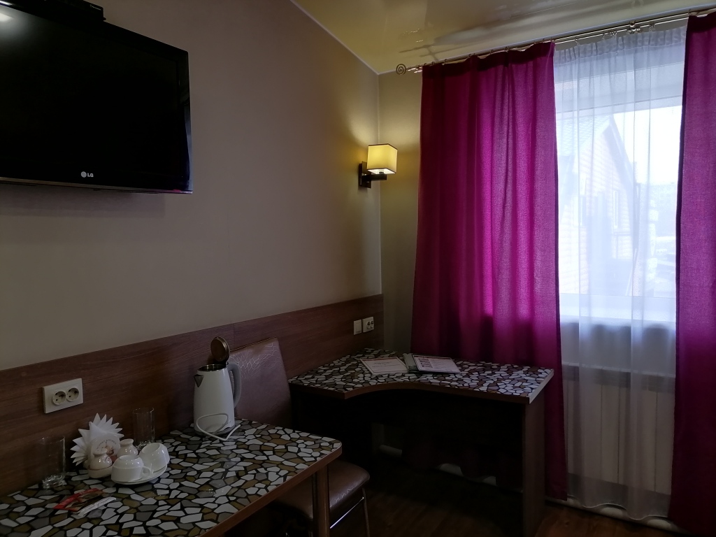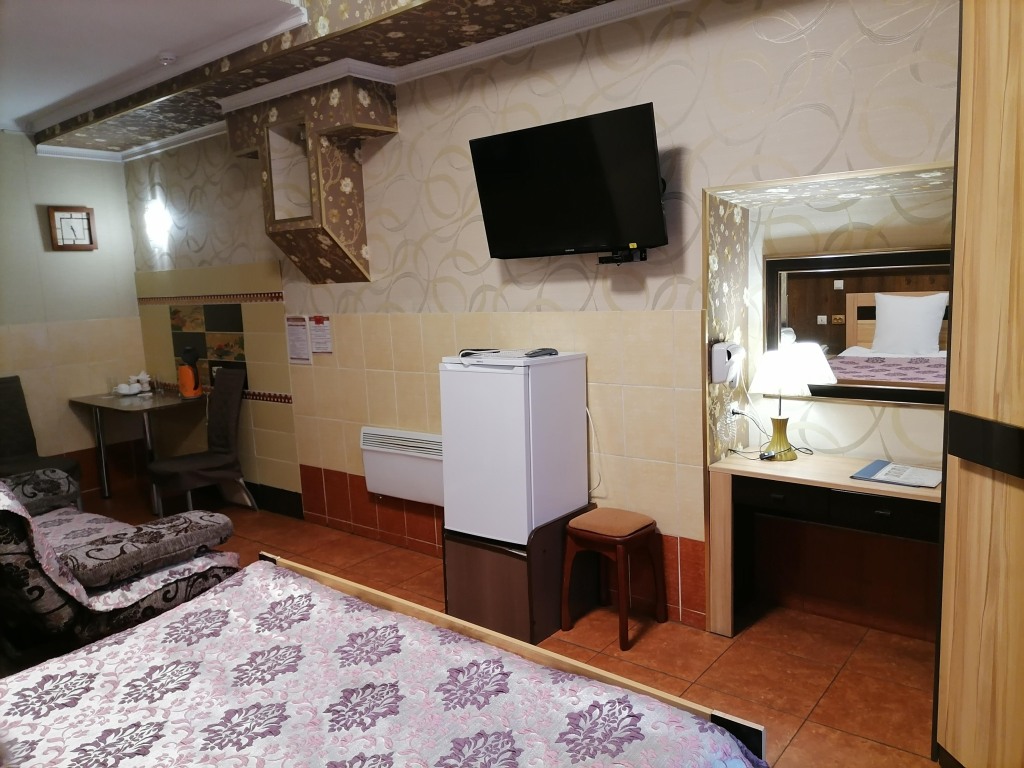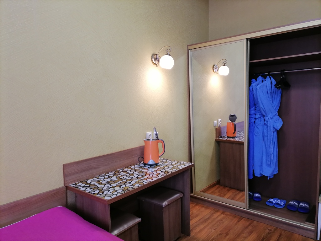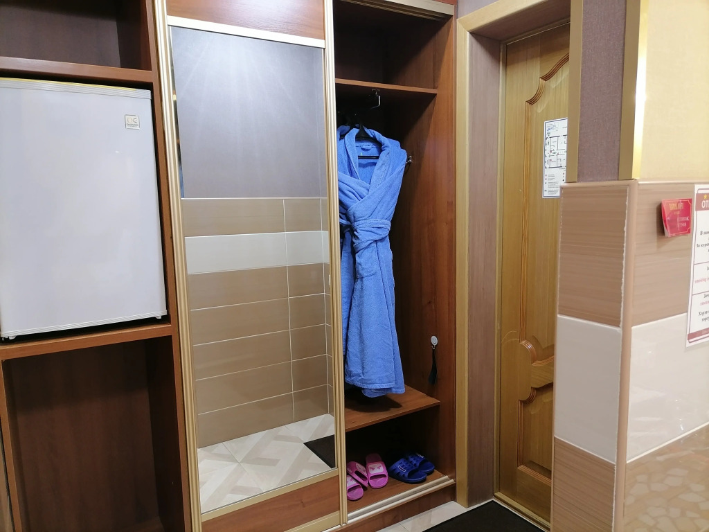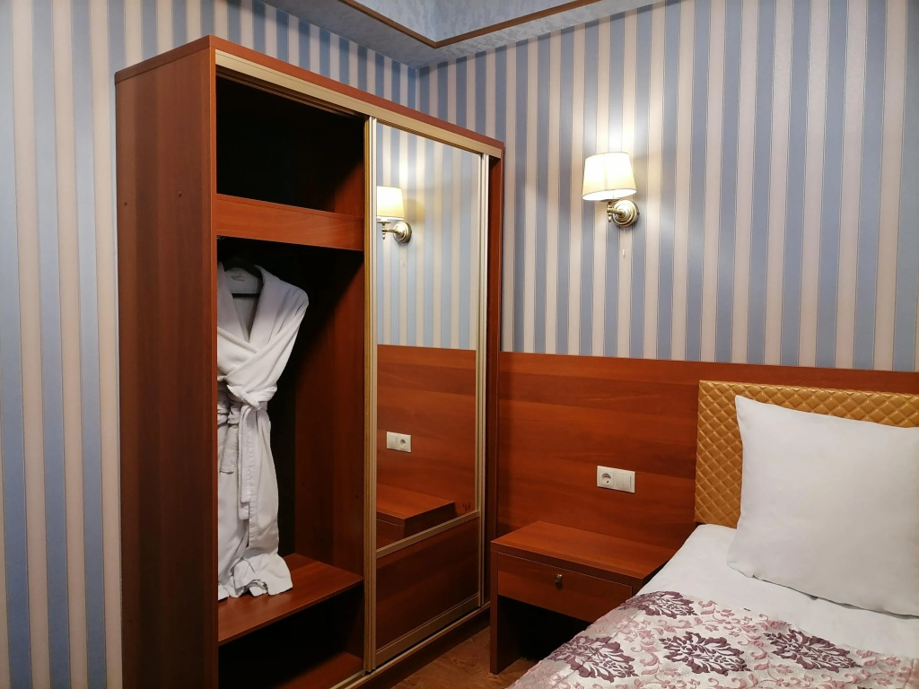 Чтобы вы могли отдохнуть после долгого дня, в номере есть телевизор и халат. Перечисленные услуги есть не во всех номерах.