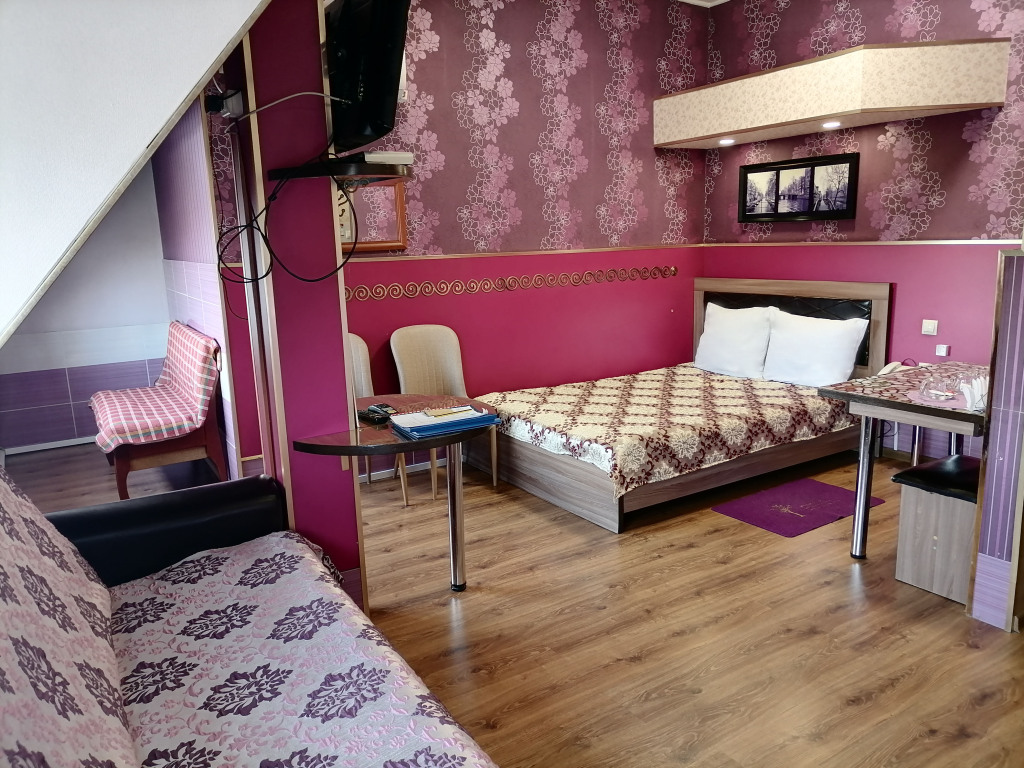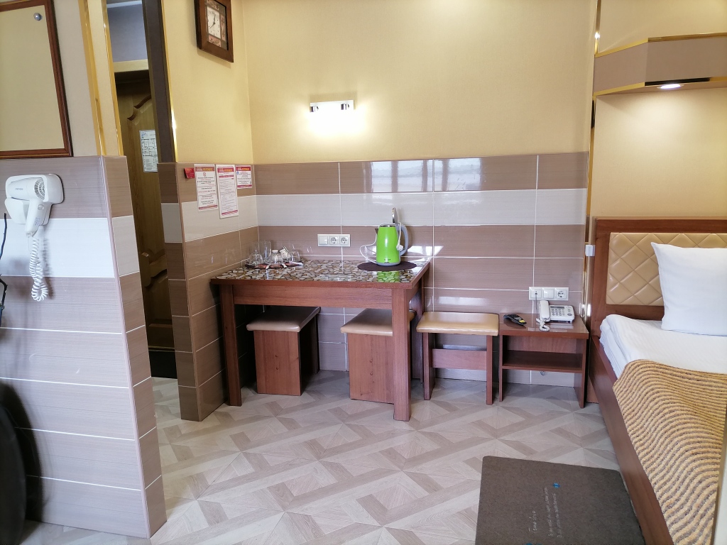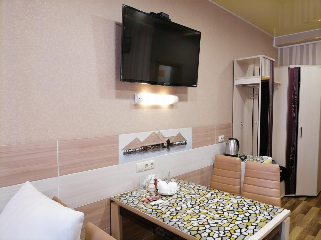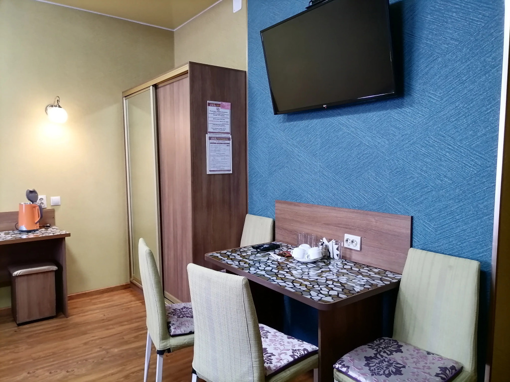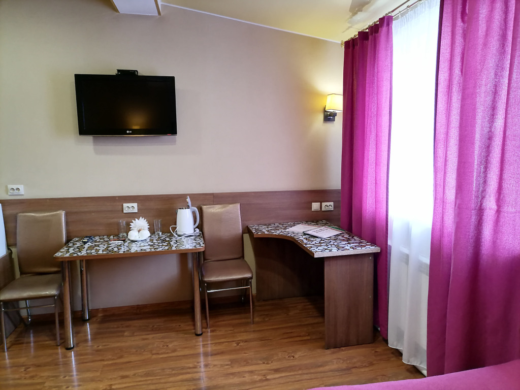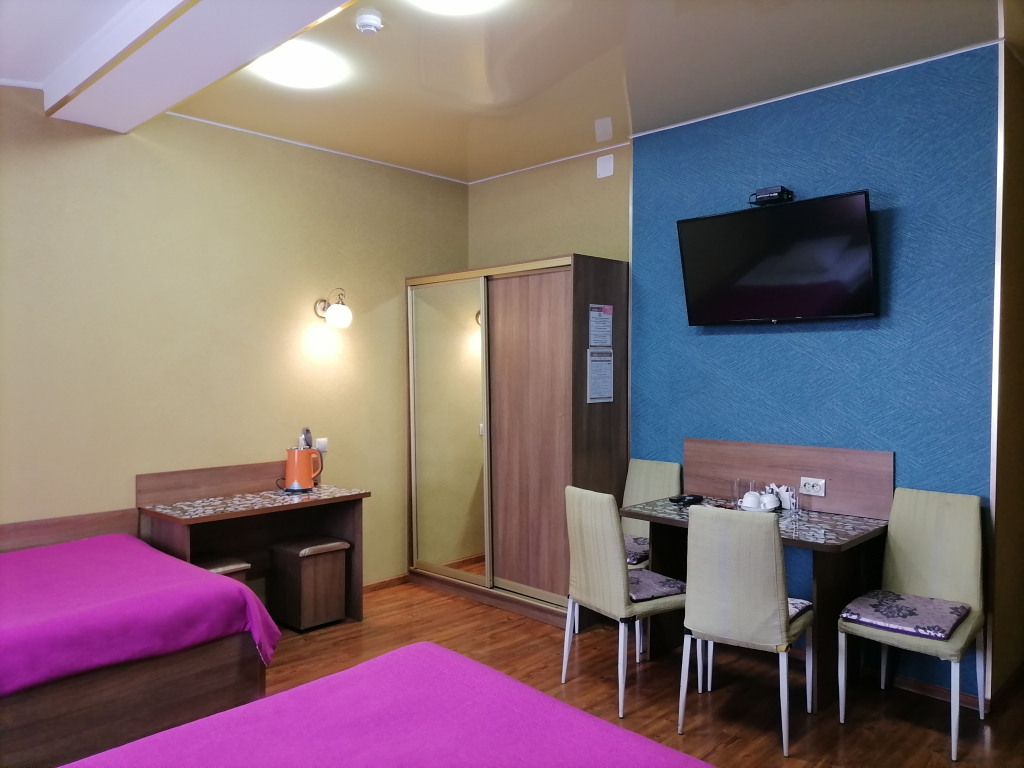 Чтобы вы могли отдохнуть после долгого дня, в номере есть телевизор и халат. Перечисленные услуги есть не во всех номерах.