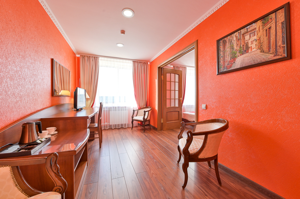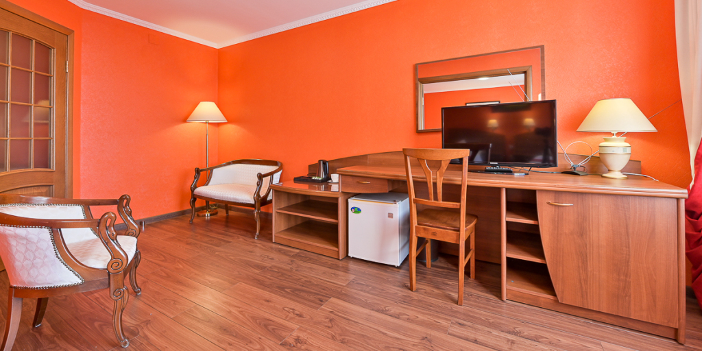 Номер уютно обставлен и оснащён необходимым, чтобы отдохнуть после долгого и насыщенного дня. Имеются телевизор. Оснащение зависит от выбранной категории номера.