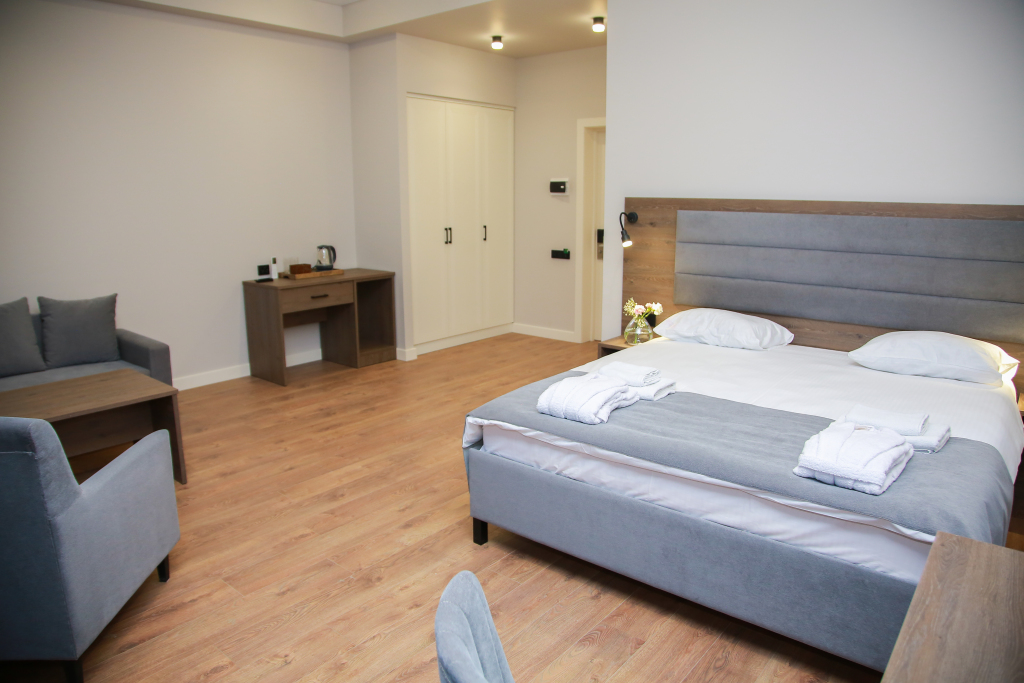 В каждом номере есть кондиционер, телевизор, сейф, холодильник и остальные необходимые удобства. Оснащение зависит от выбранной категории номера.
