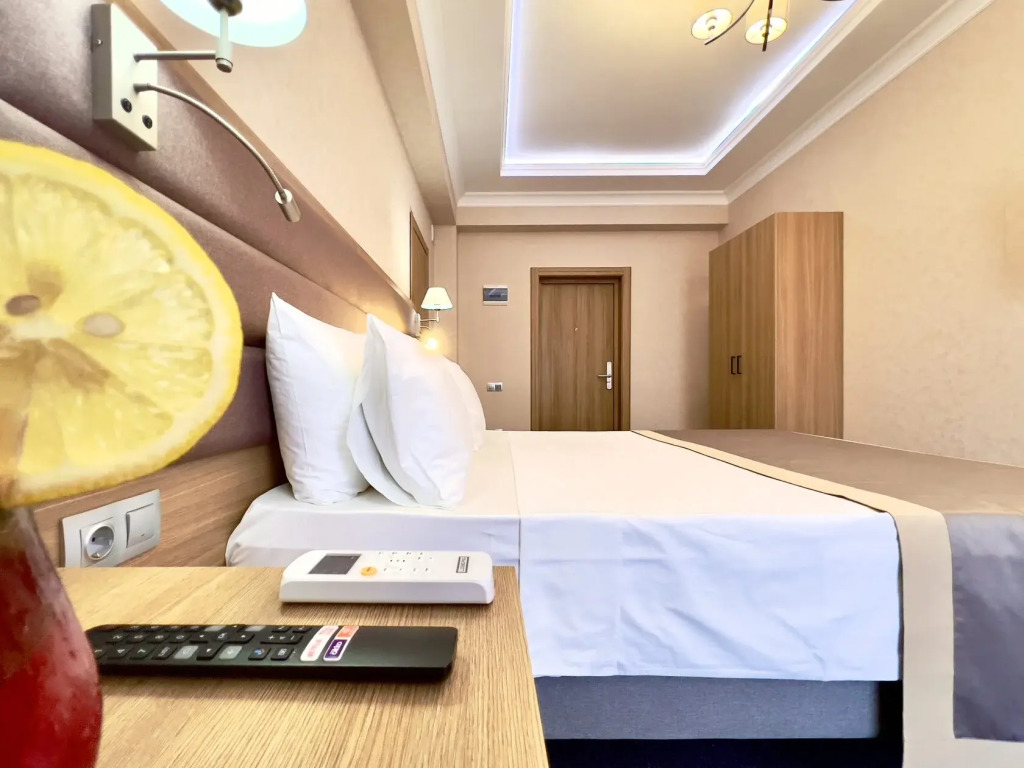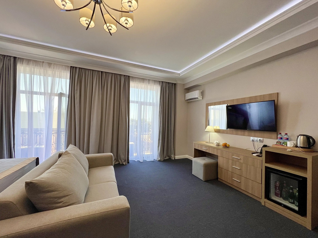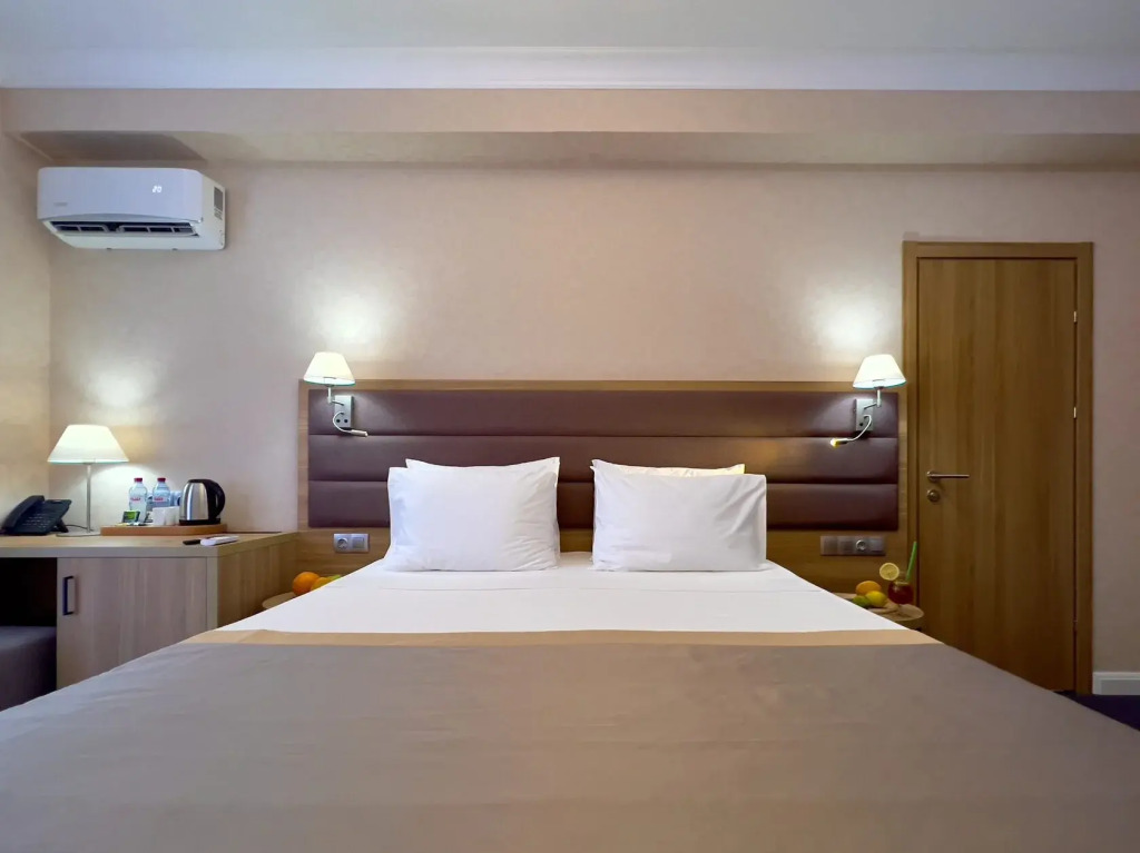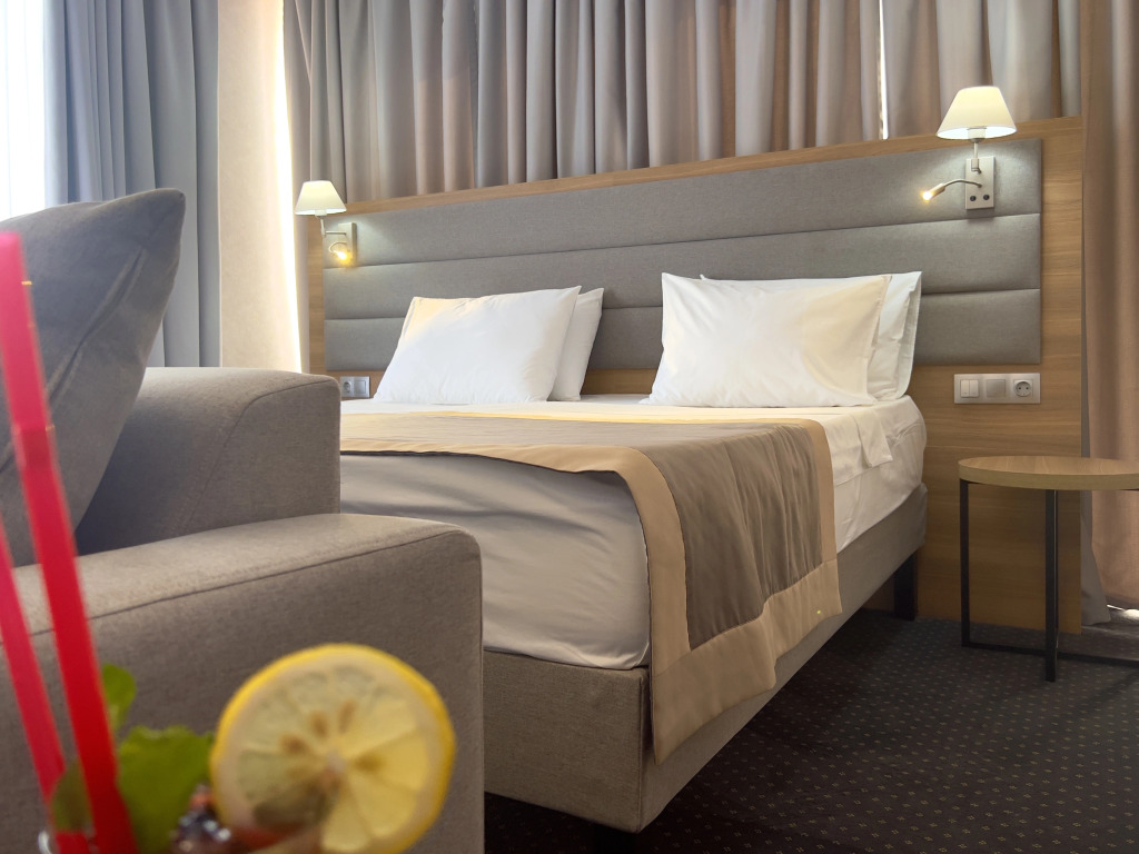 К услугам гостей — номера различных категорий: от «Стандарт-мини» до «Люкс Премиум». Все номера оснащены: Smart TV, мини-холодильником, сейфом, феном, чайной станцией, бутилированной водой, халатами, полотенцами, тапочками и косметическими принадлежностями, ежедневной уборкой и климат-контролем.