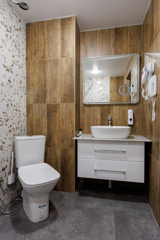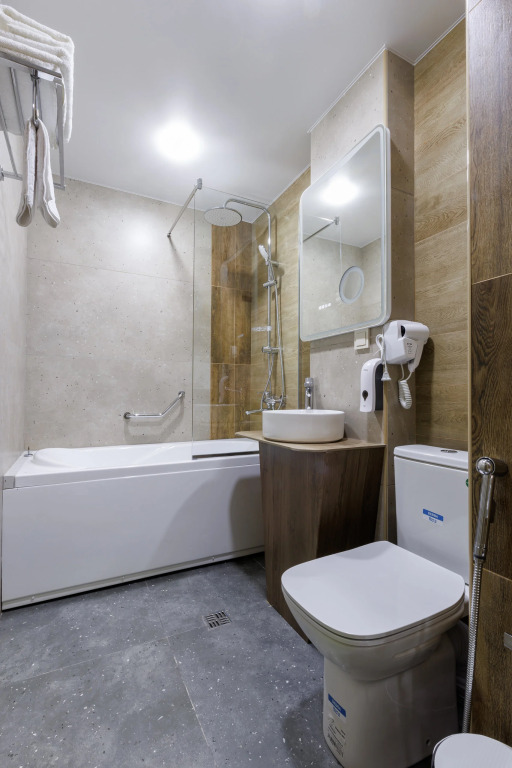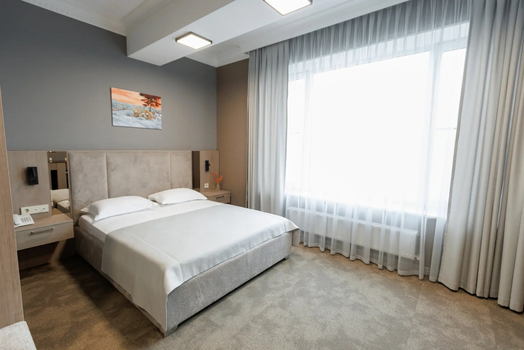 В номере есть телевизор и халат. Оснащение зависит от выбранной категории номера.
