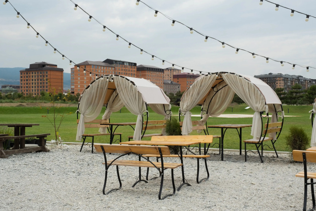 В распоряжении гостей находится ресторан. Оборудованы три конференц-зоны для деловых мероприятий. На территории есть открытые бассейны, детская комната с няней, а также раздельные для мужчин и женщин спортзалы.