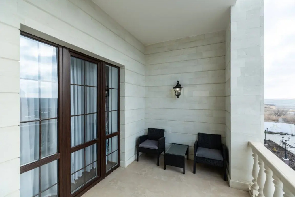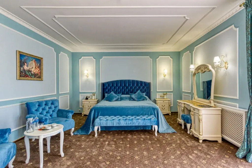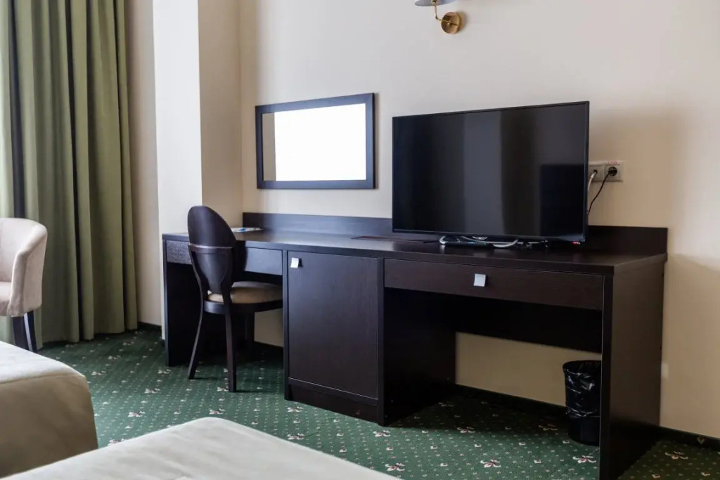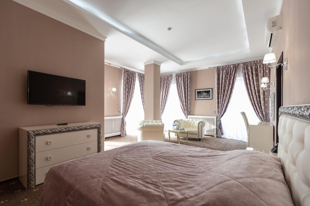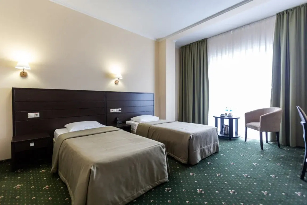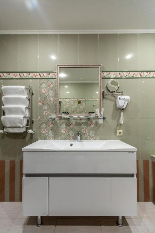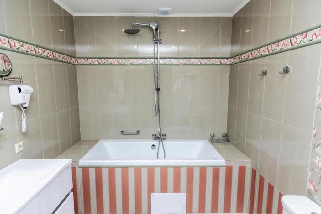 В номере вы найдёте душ, халат и тапочки. Оснащение зависит от выбранной категории номера.