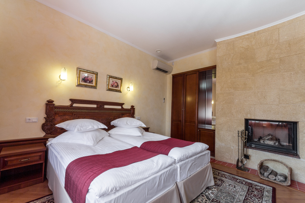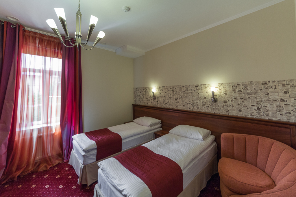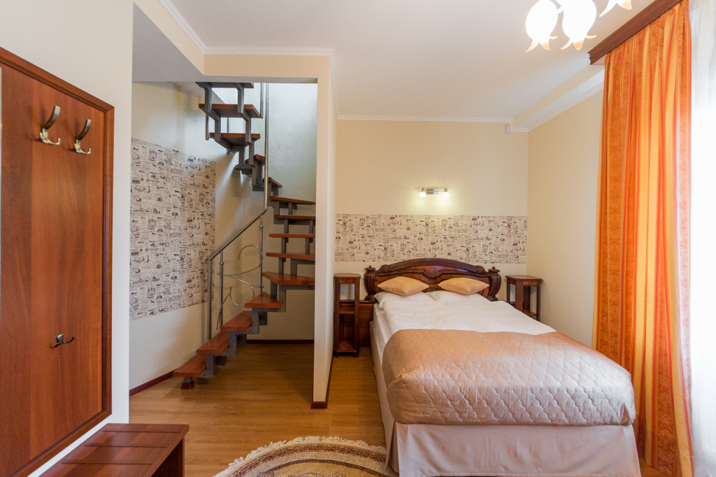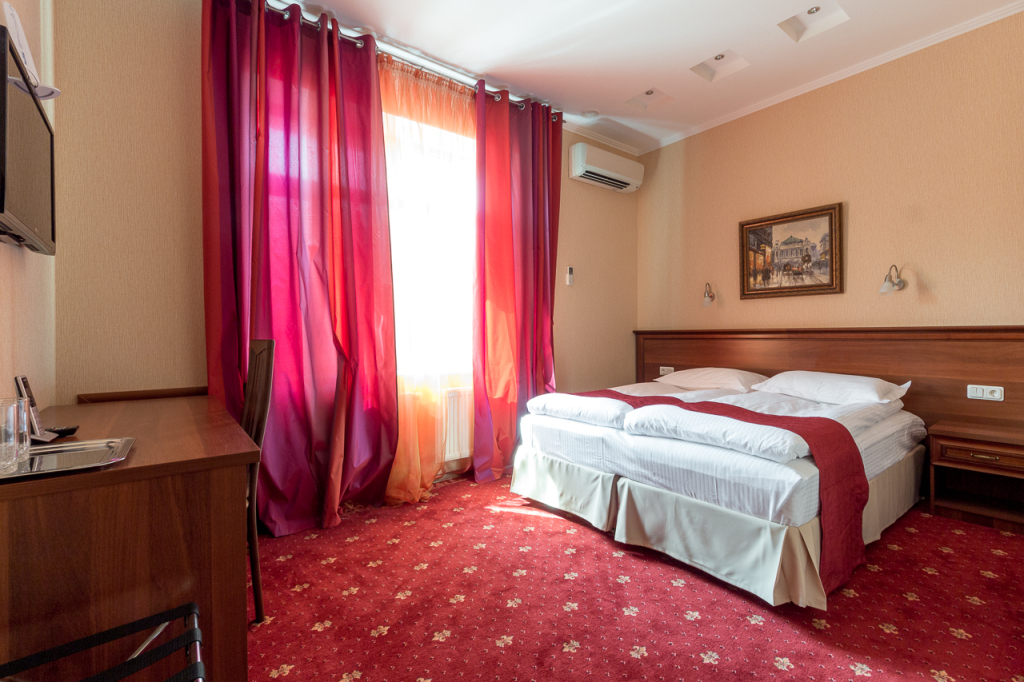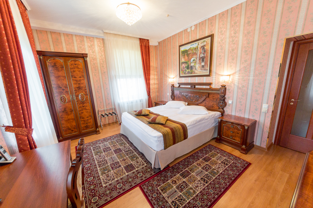 Номер у нас был улучшенный, на 2 этаже, очень большой, угловой, с окнами на 2 стороны. При заезде предупредили, что работает одна из двух батарей, может быть прохладно. Но на улице в это время была плюсовая температура, прохлады мы не заметили, зато номер очень красивый, с огромной кроватью, с огромным санузлом, в котором был подогреваемый пол. Место расположение очень тихое, в то же время 10-15 минут пешком до центральной улицы Ленина со множеством магазинчиков, ресторанов, и до набережной.
