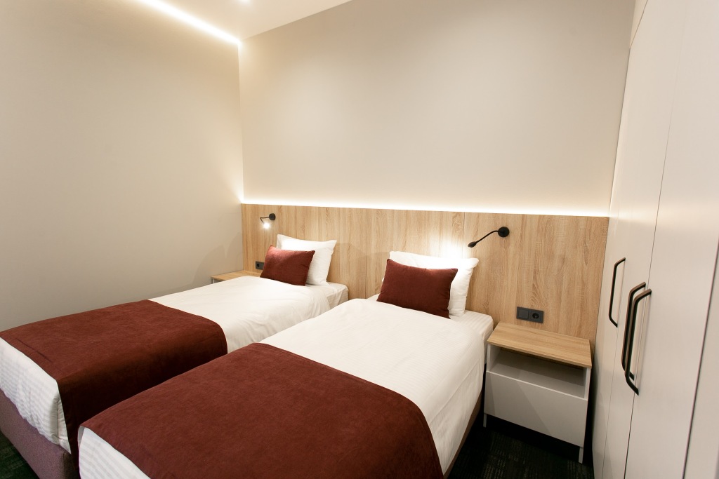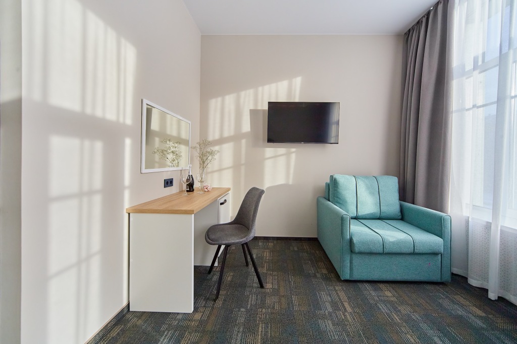 Единственный минус-- одно место для сидения у стола в двухместном номере. Было бы неплохо складной стул иметь.