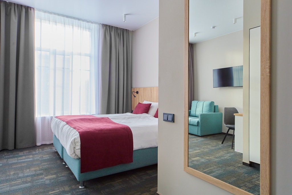 Удобное расположение отеля,своя парковка, номер чистый, персонал вежливый.Брали с завтраками, очень вкусные в ресторане на 1м этаже. В ванной комнате холодно, полы холодные.