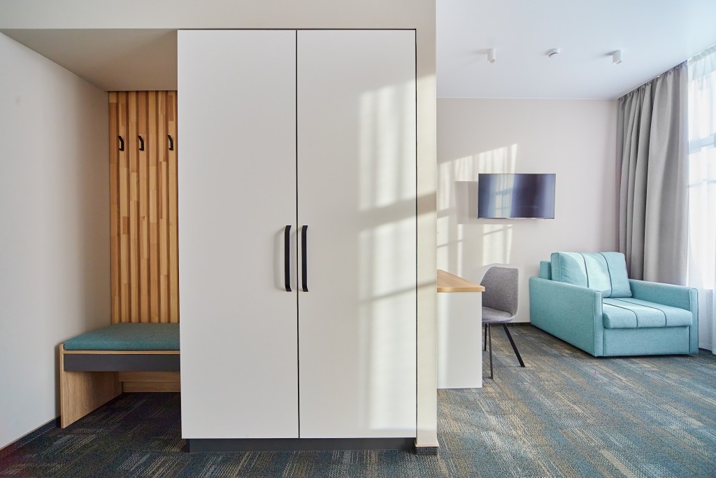 Прекрасно спланирован номер. Чистота идеальная. Места для хранения вещей достаточно. Предоставлены тапочки-- здорово!