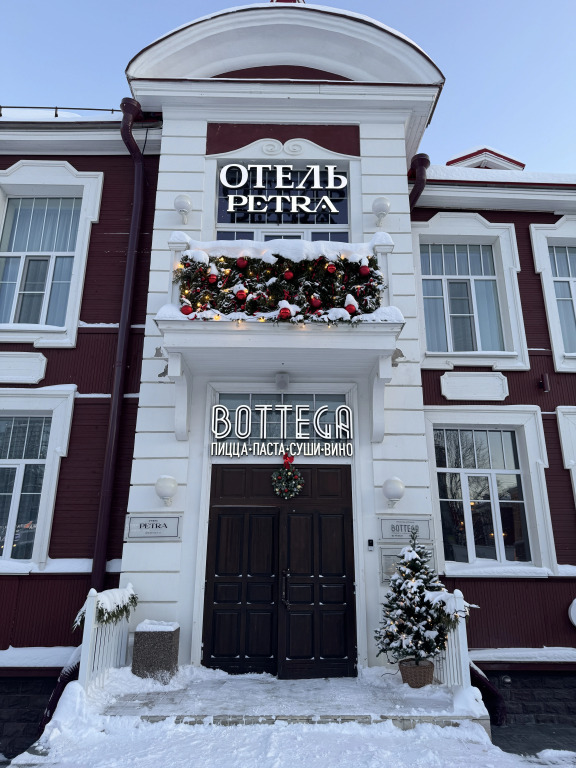 Небольшой уютный отель в центре Петрозаводска, очень нарядное деревянное здание. В номере свежий и качественный ремонт. Завтраки в ресторане Bottega - разнообразные и сытные. Парковка за шлагбаумом, это очень надёжно. С удовольствием в следующий приезд остановимся здесь! Для использования Wi-Fi нужно было каждый раз регистрироваться в сети. Что странно, это удается сделать только с того устройства, в котором симка. Т.е. планшет без симки не подключился. Но это мелочи, мы не в интернете сидеть приехали.