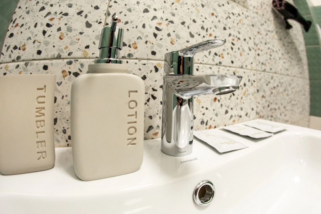 Свежий ремонт и чистота. На этом, увы все. Запах канализации в номере и полное отсутствие шумоизоляции перекрывают все достоинства этого отеля. Мы слышали как наш сосед из соседнего номера тихо говорил по телефону так как-будто он просто сидел рядом с нами. Мы слышали как он ходит по номеру, как моется и ходит в туалет. То есть вместо стен в номерах картонка, это просто ужас. А если соседи вам попадутся шумные, то вы точно не уснете.