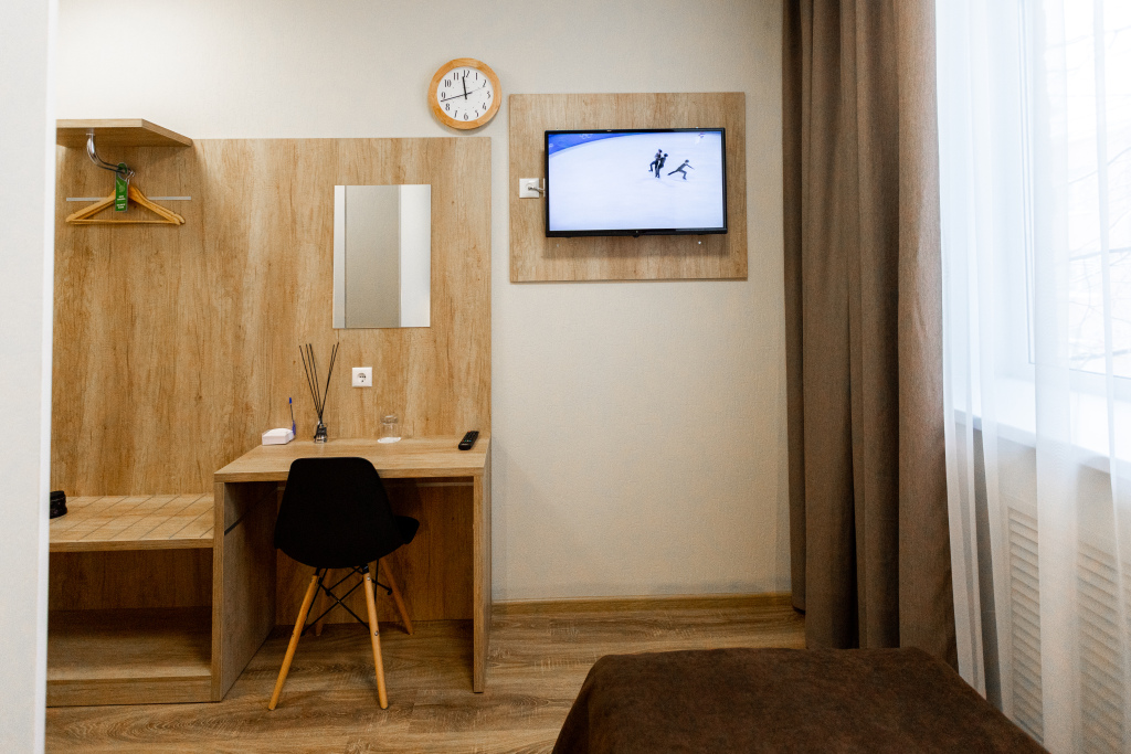 Чистое белье, полотенце и принадлежности есть,чисто,телевизор работал, хороший номер