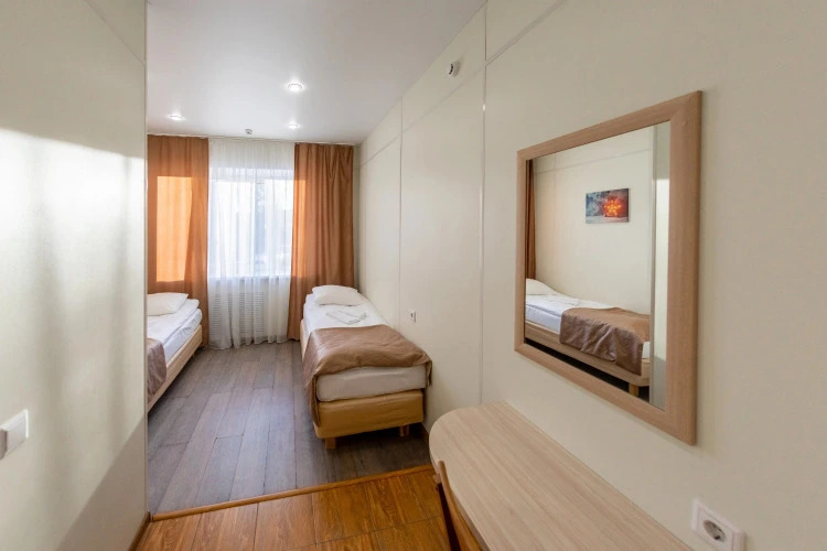 Номер просто великолепный. У нас был трёхкомнатный улучшенный. Троим было не тесно. Всё новое, кровати удобные, есть всё необходимое!
