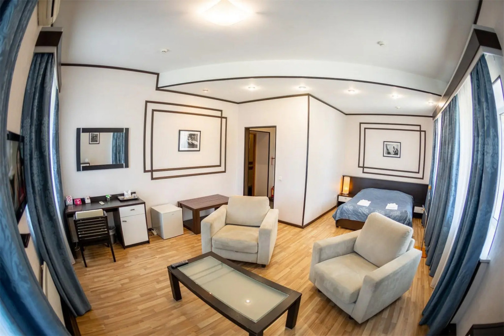 В номере вас будут ждать телевизор и халат. Оснащение зависит от выбранной категории номера.