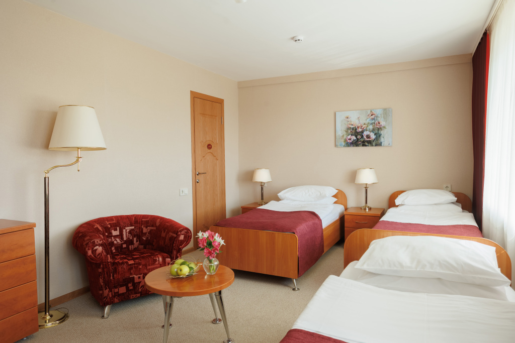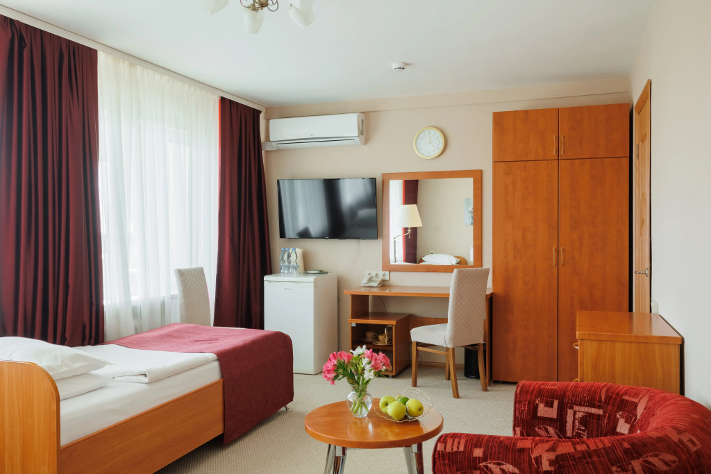 В отеле гостей ждут 158 номеров различных категорий. В каждом номере имеются ванная комната, телевизор, телефон и холодильник.