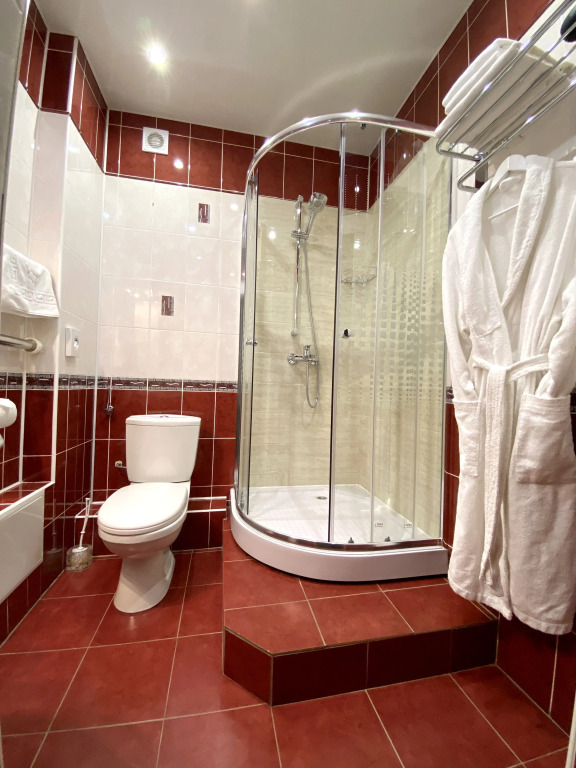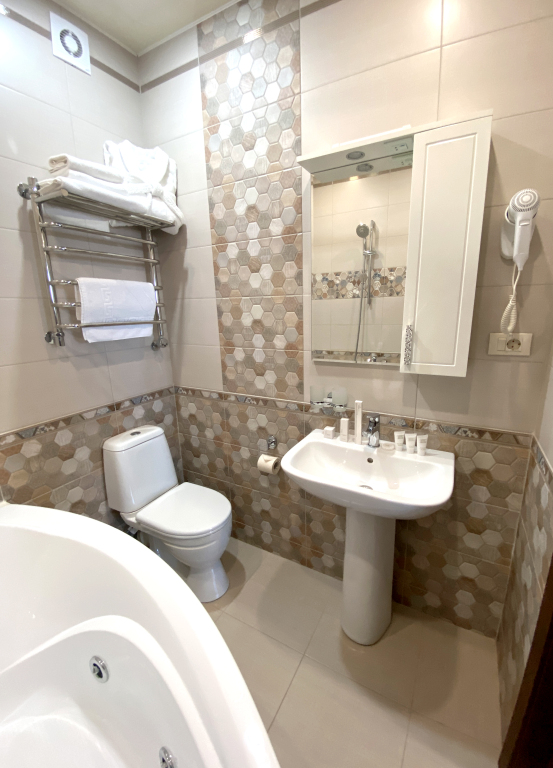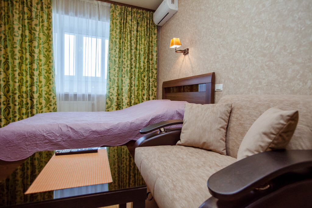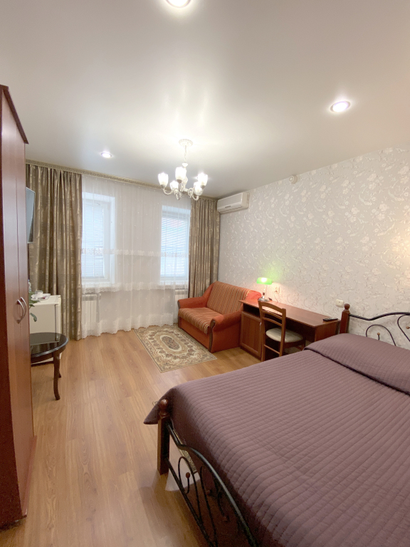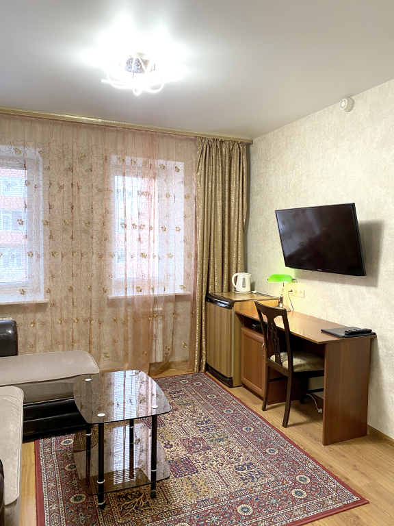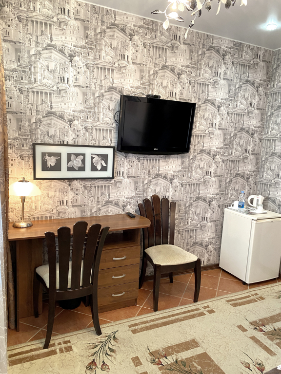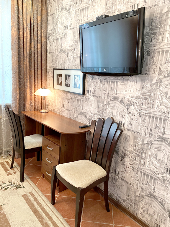 В номере гостей ждут телевизор и халат. Перечисленные услуги есть не во всех номерах.