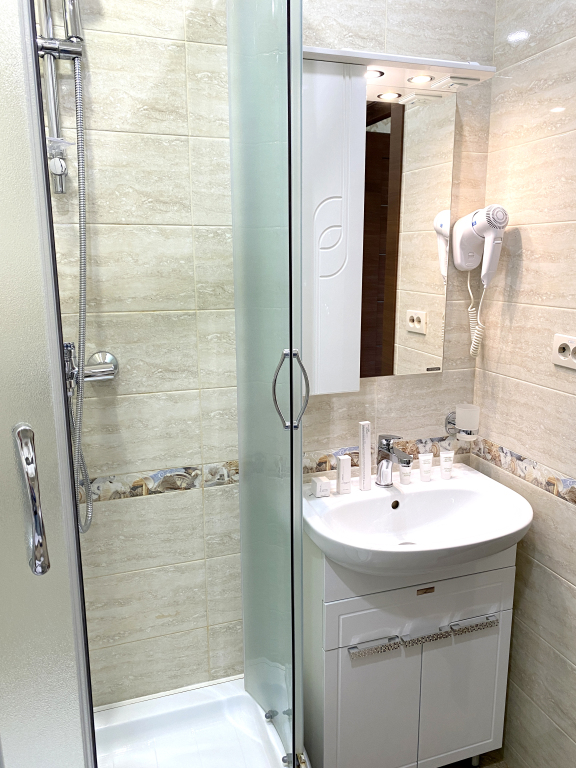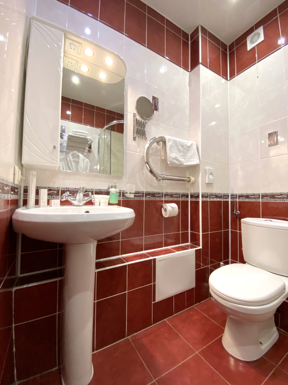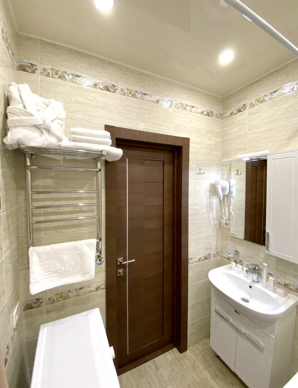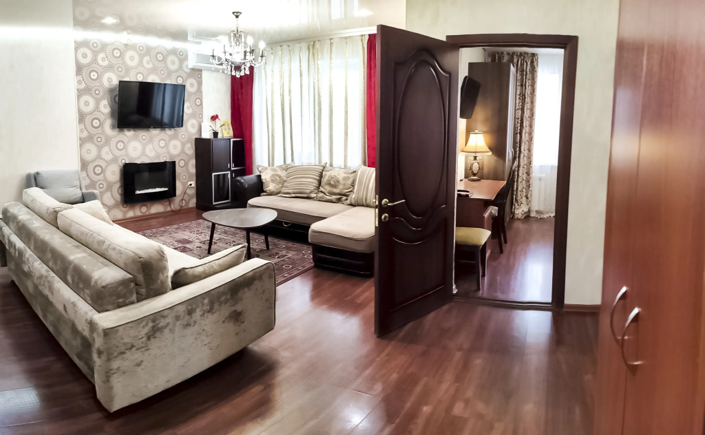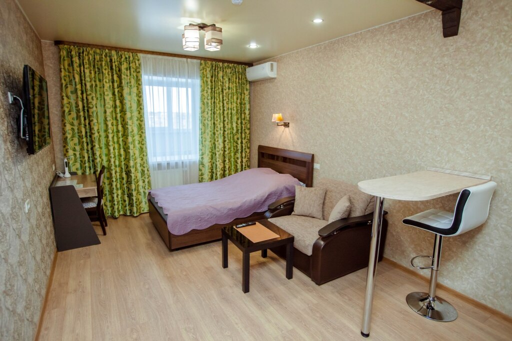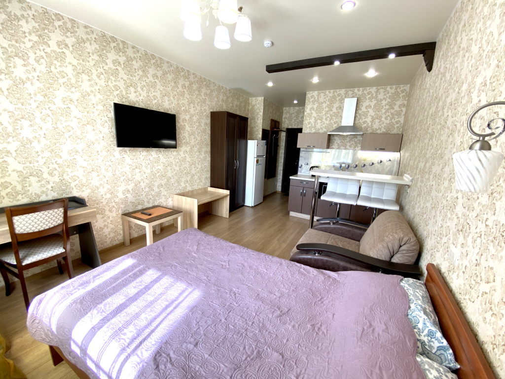 В номере гостей ждут телевизор и халат. Перечисленные услуги есть не во всех номерах.