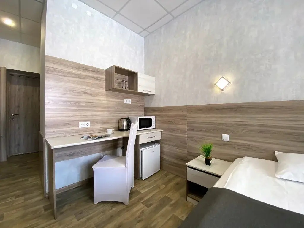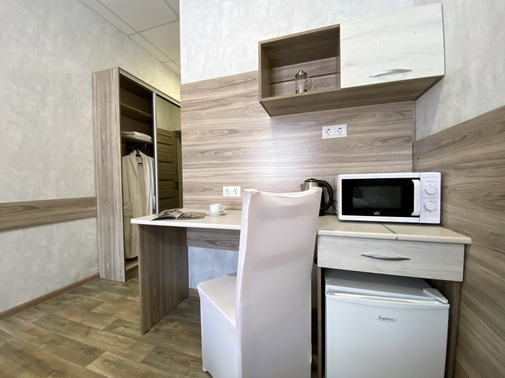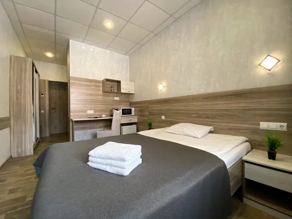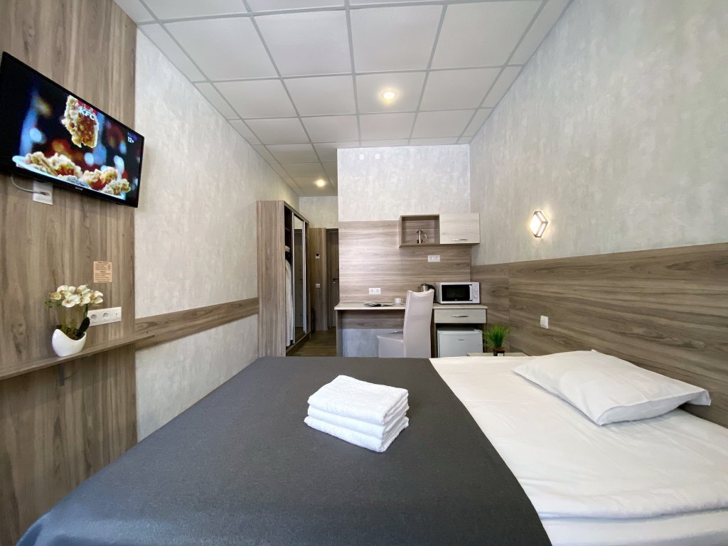 В номере вас будут ждать телевизор и халат. Оснащение зависит от выбранной категории номера.