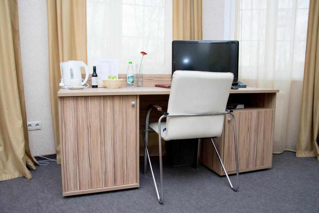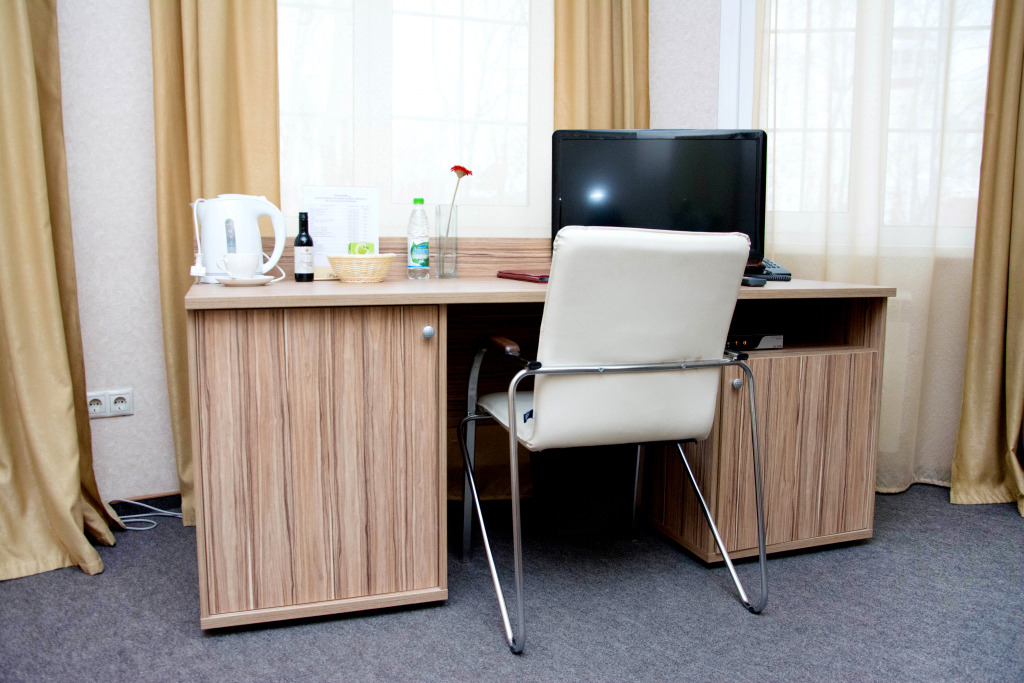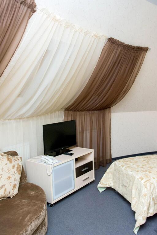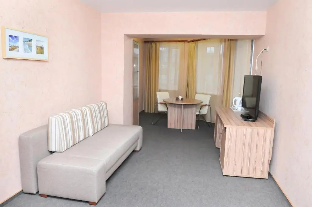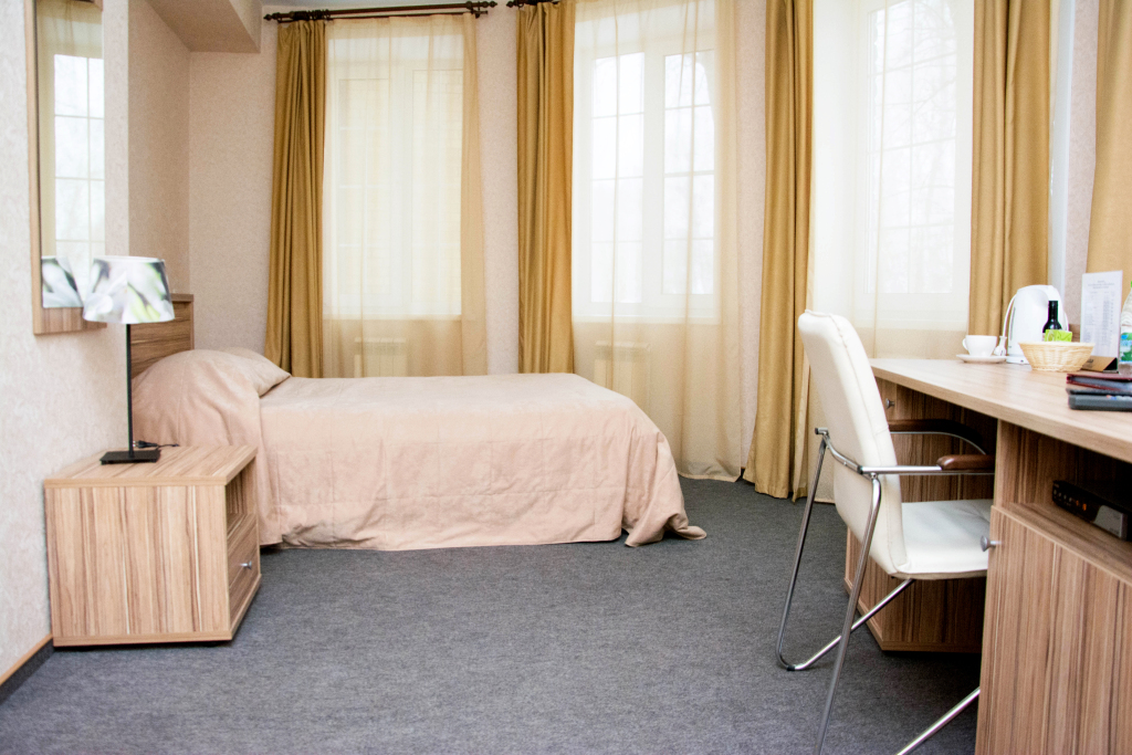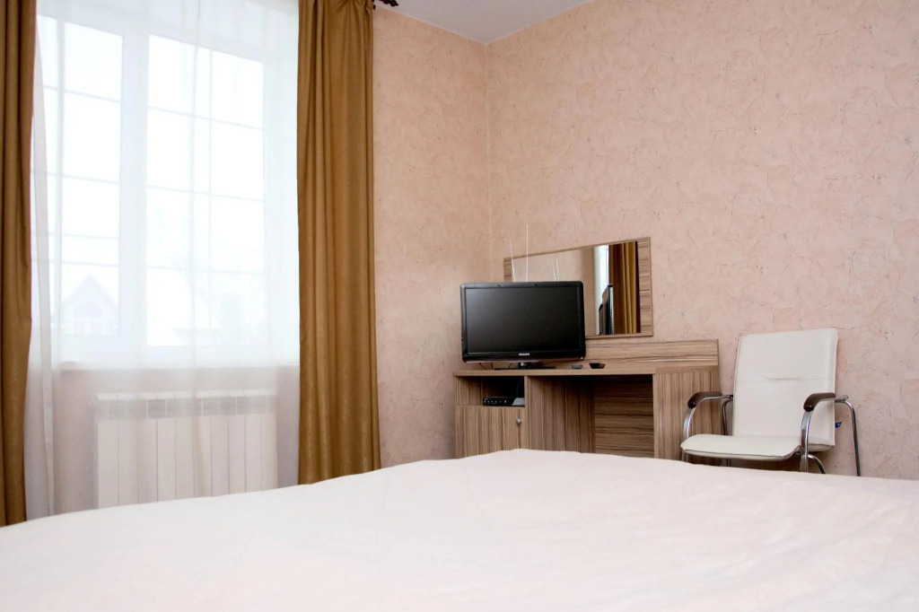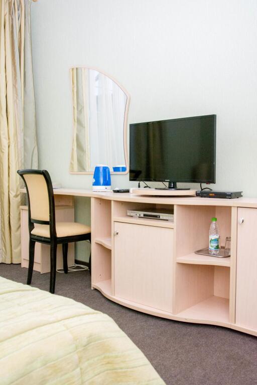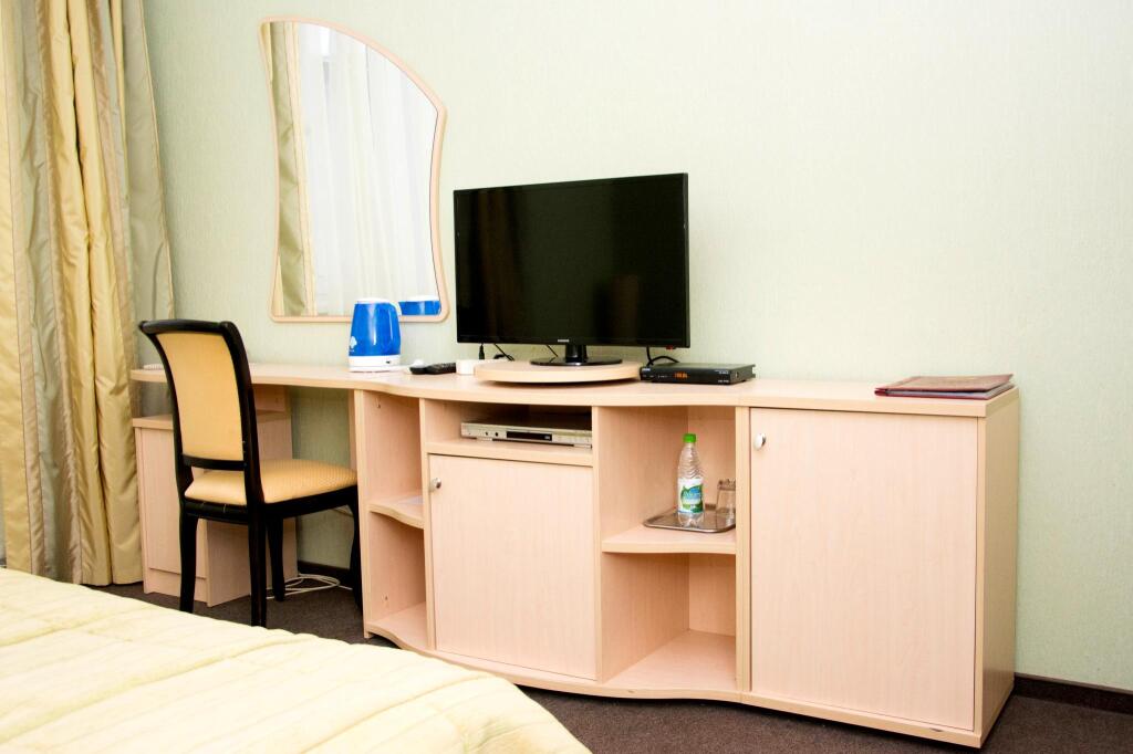 В номере вас будут ждать телевизор, мини-бар и халат. Оснащение зависит от выбранной категории номера.