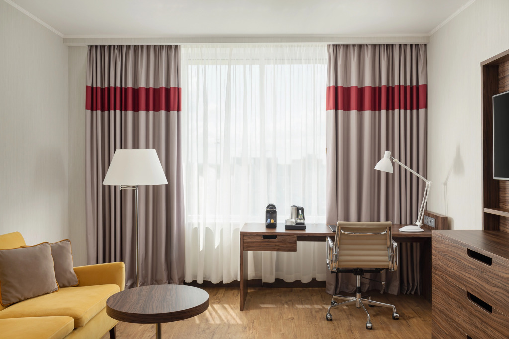 Чтобы вы могли отдохнуть после долгого дня, в номере есть телевизор, мини-бар и халат. Оснащение зависит от выбранной категории номера.