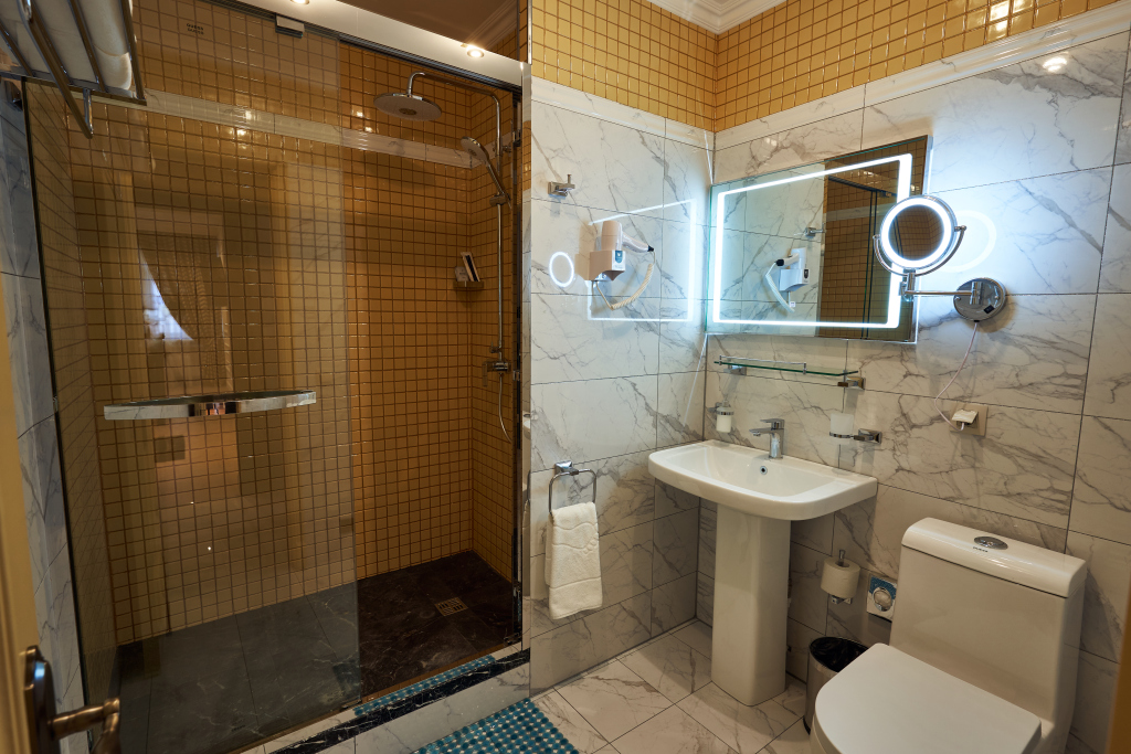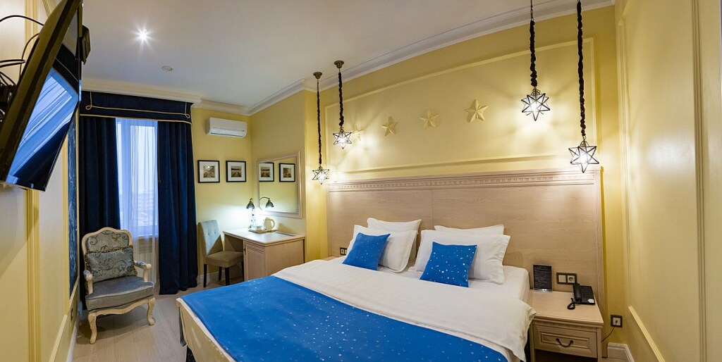 В номере гостей ждут телевизор и халат. Перечисленные услуги есть не во всех номерах.