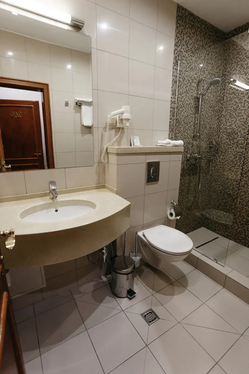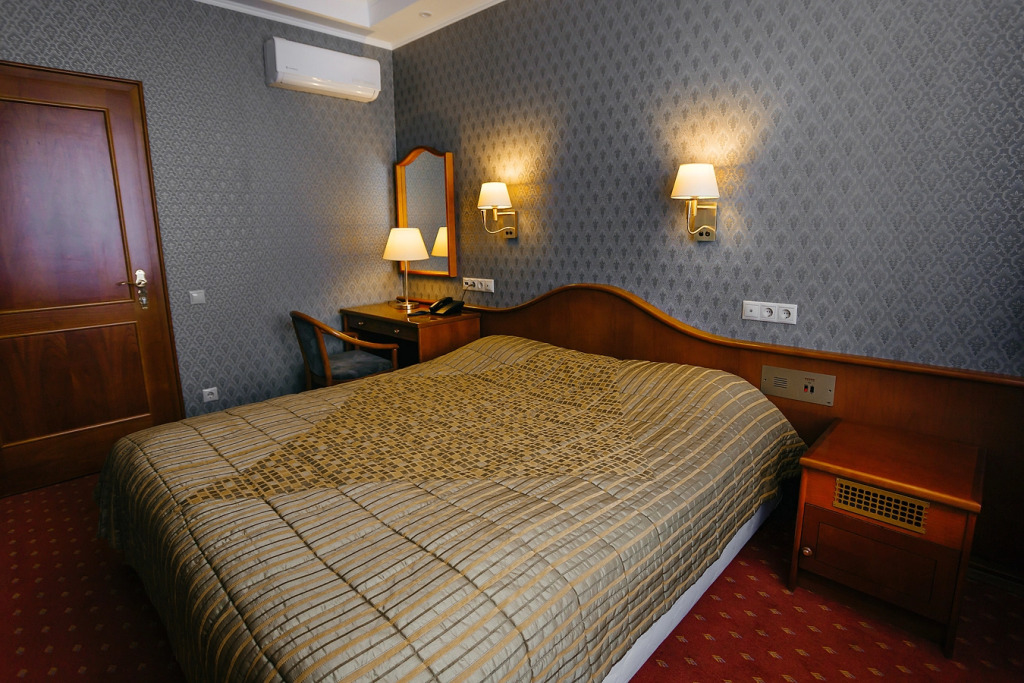 В номере гостей ждут телевизор и халат. Оснащение зависит от выбранной категории номера.