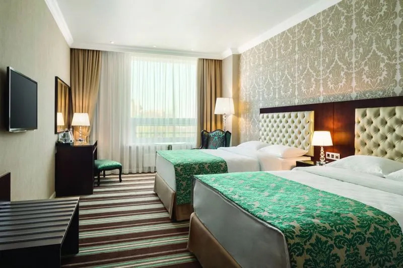 К услугам гостей блюда татарской и европейской кухни в ресторане отеля, ежедневно для гостей отеля подаётся завтрак «шведский стол».