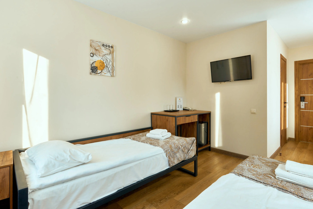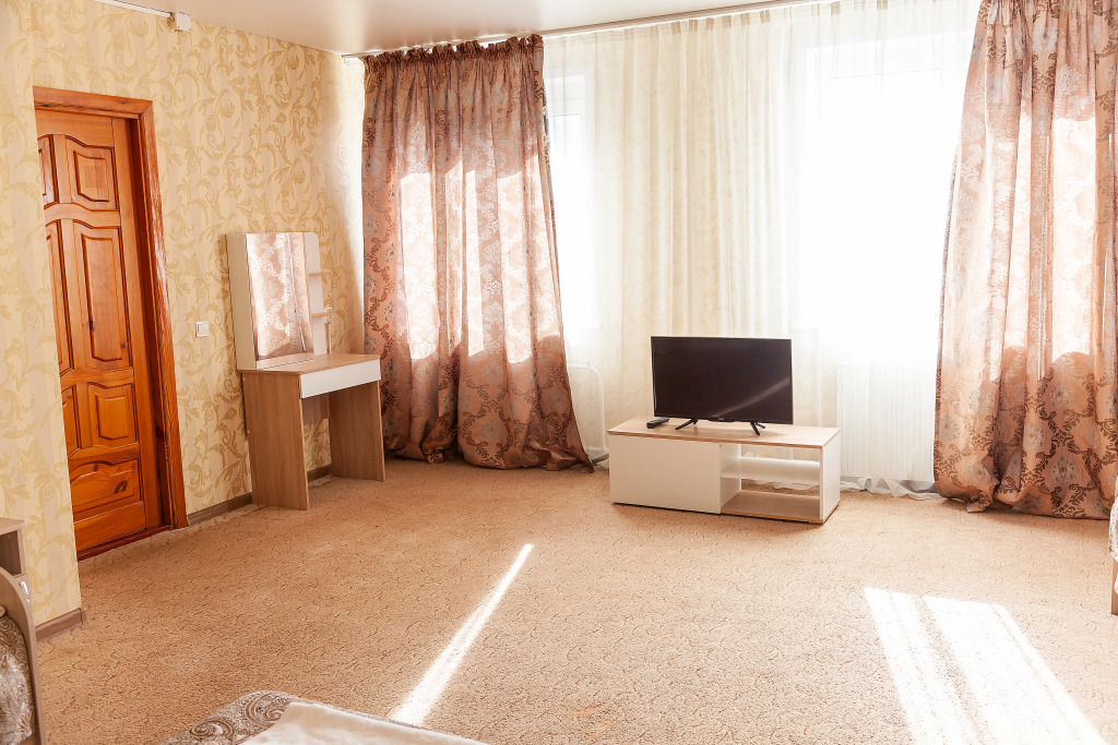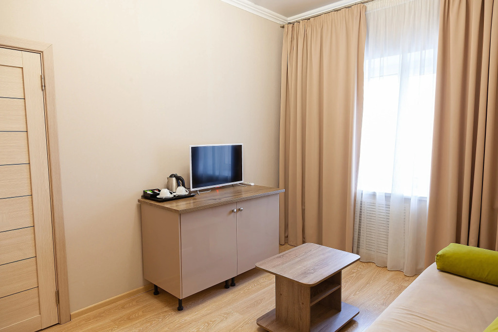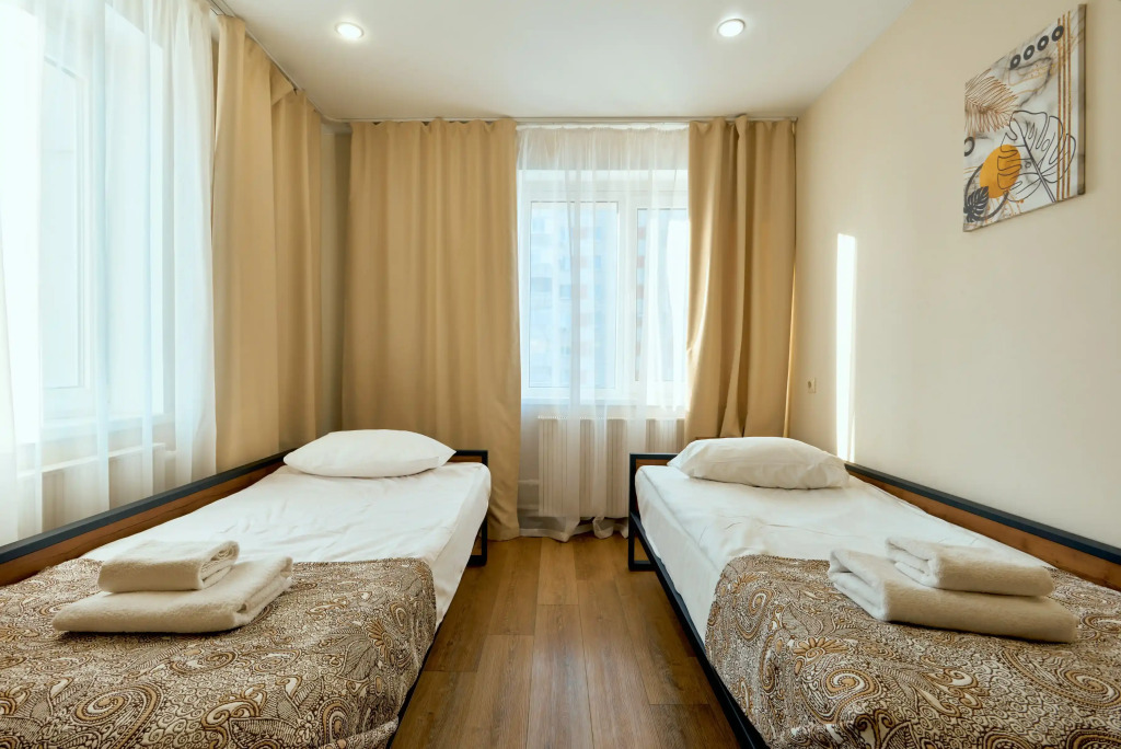 Номера категории «Апартаменты с двуспальной кроватью» располагаются на цокольном этаже.