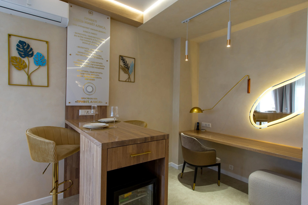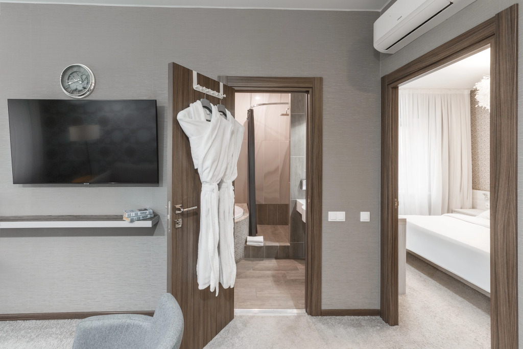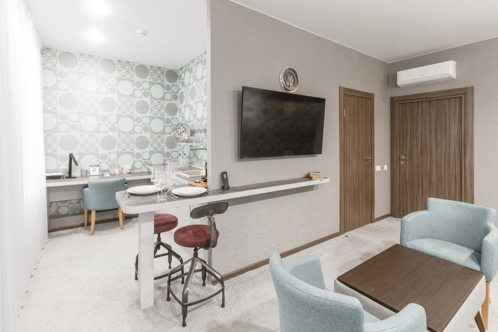 В номере есть телевизор и мини-бар. Оснащение зависит от выбранной категории номера.